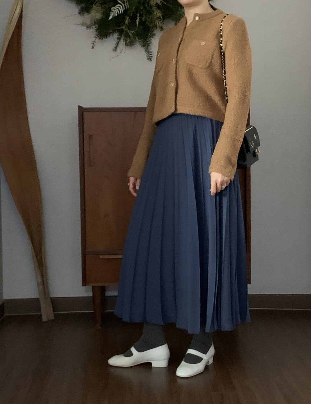 기본 니트나 가디건 그리고 봄 가을 시즌에는 티셔츠와도 매치하여 다양하게 연출 가능합니다.