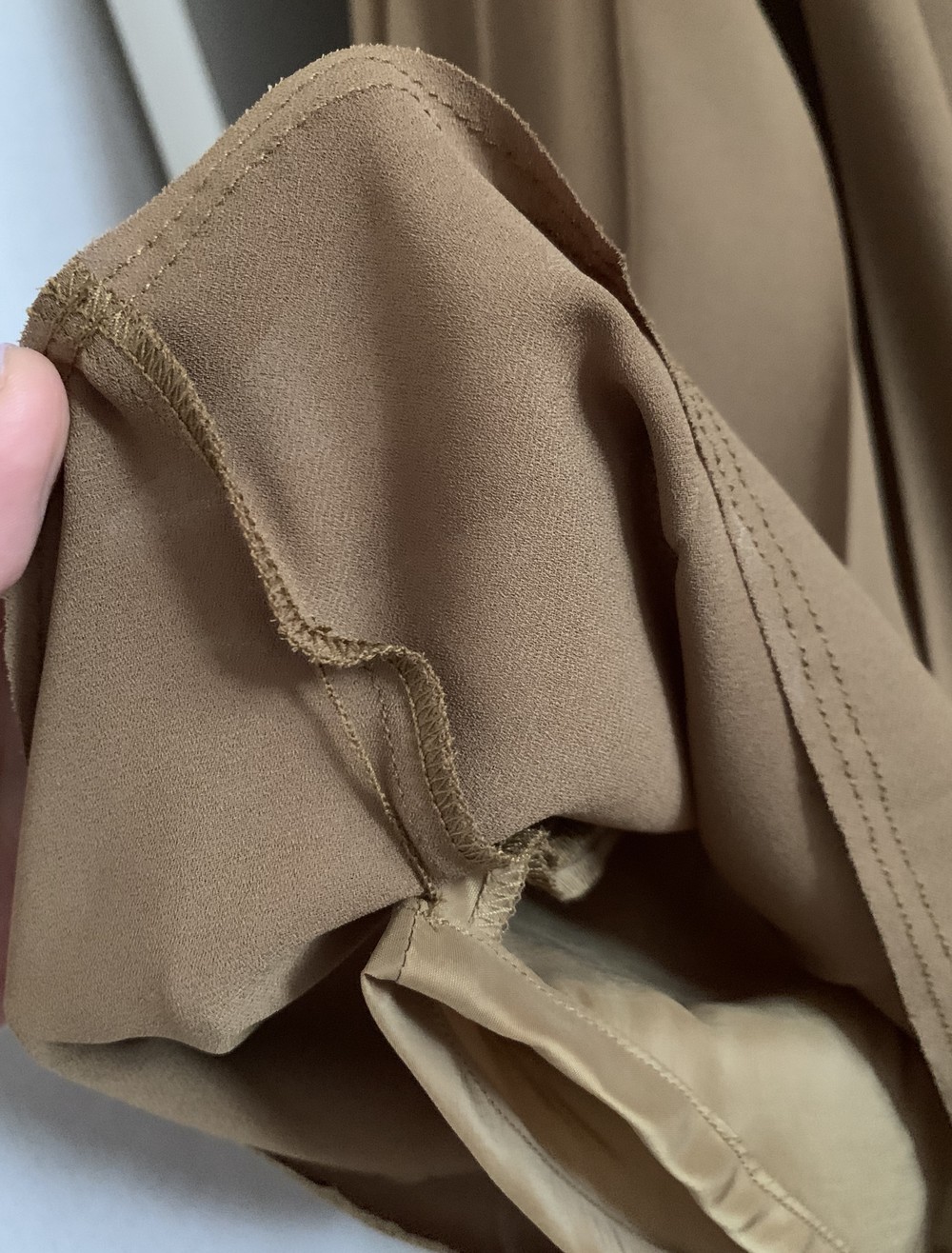 이 소재감이 보통 스커트 처리 방법처럼 밑단을 접어 봉제를 하게 됐을때 지저분한 꿀렁임과 봉제시