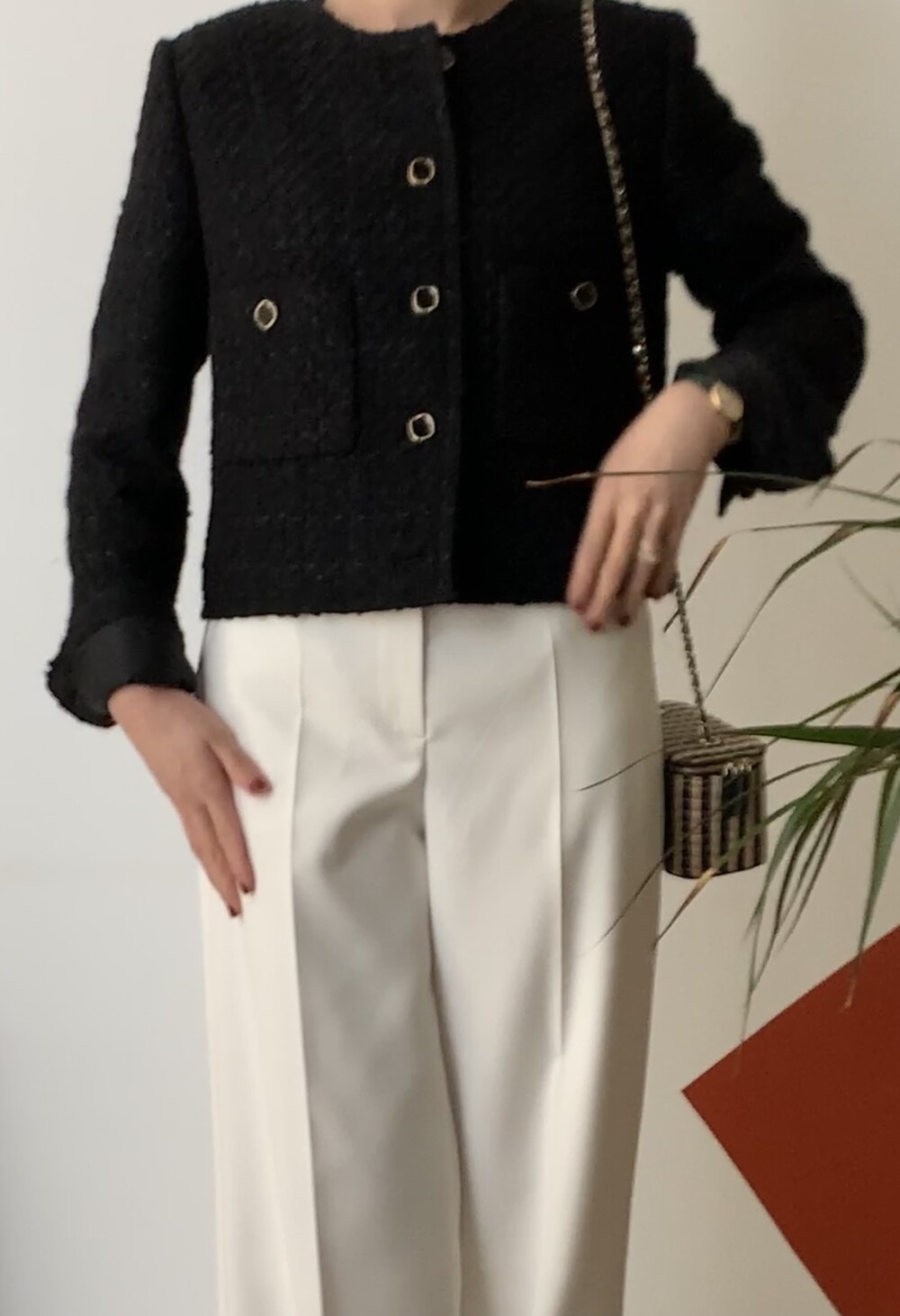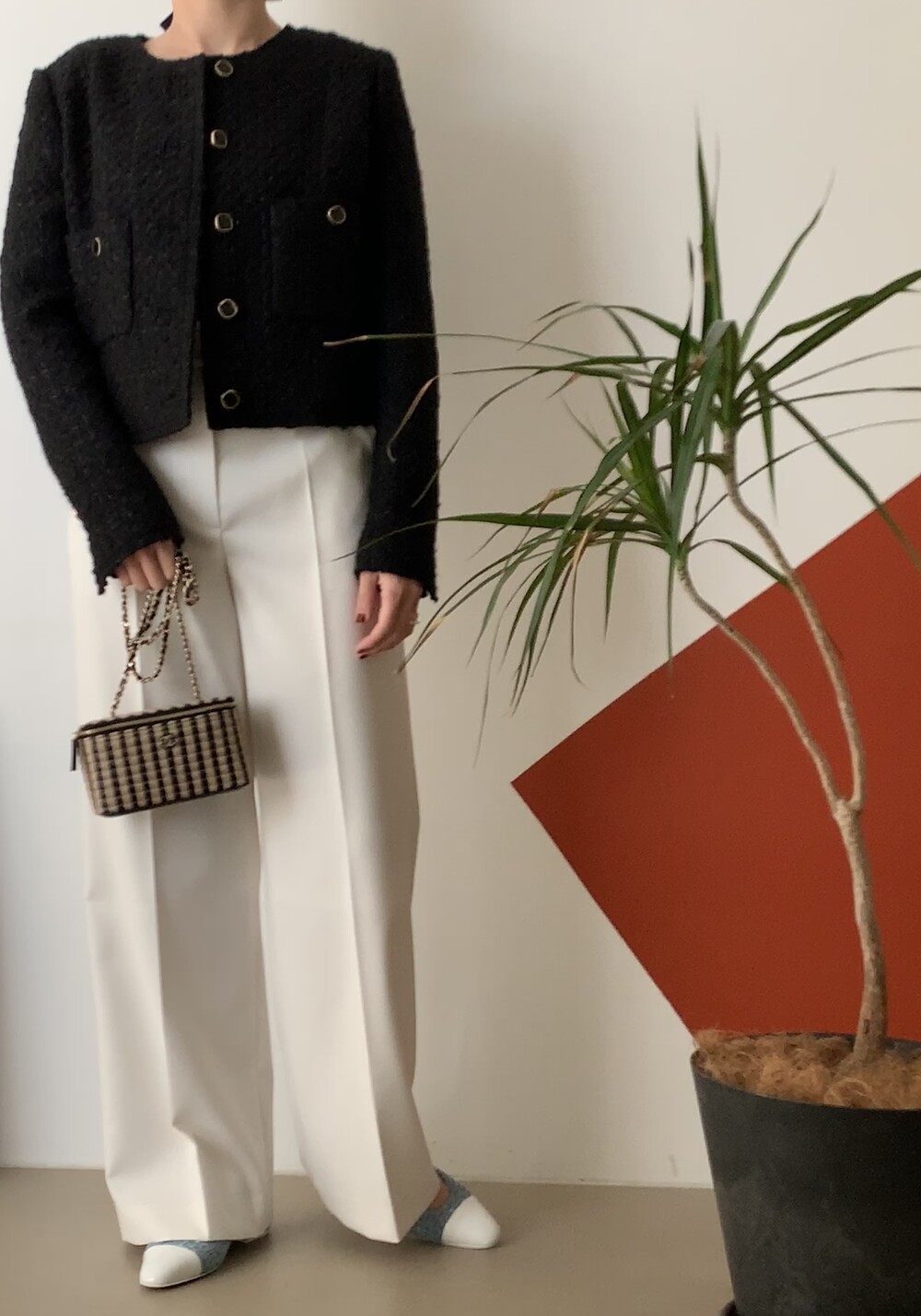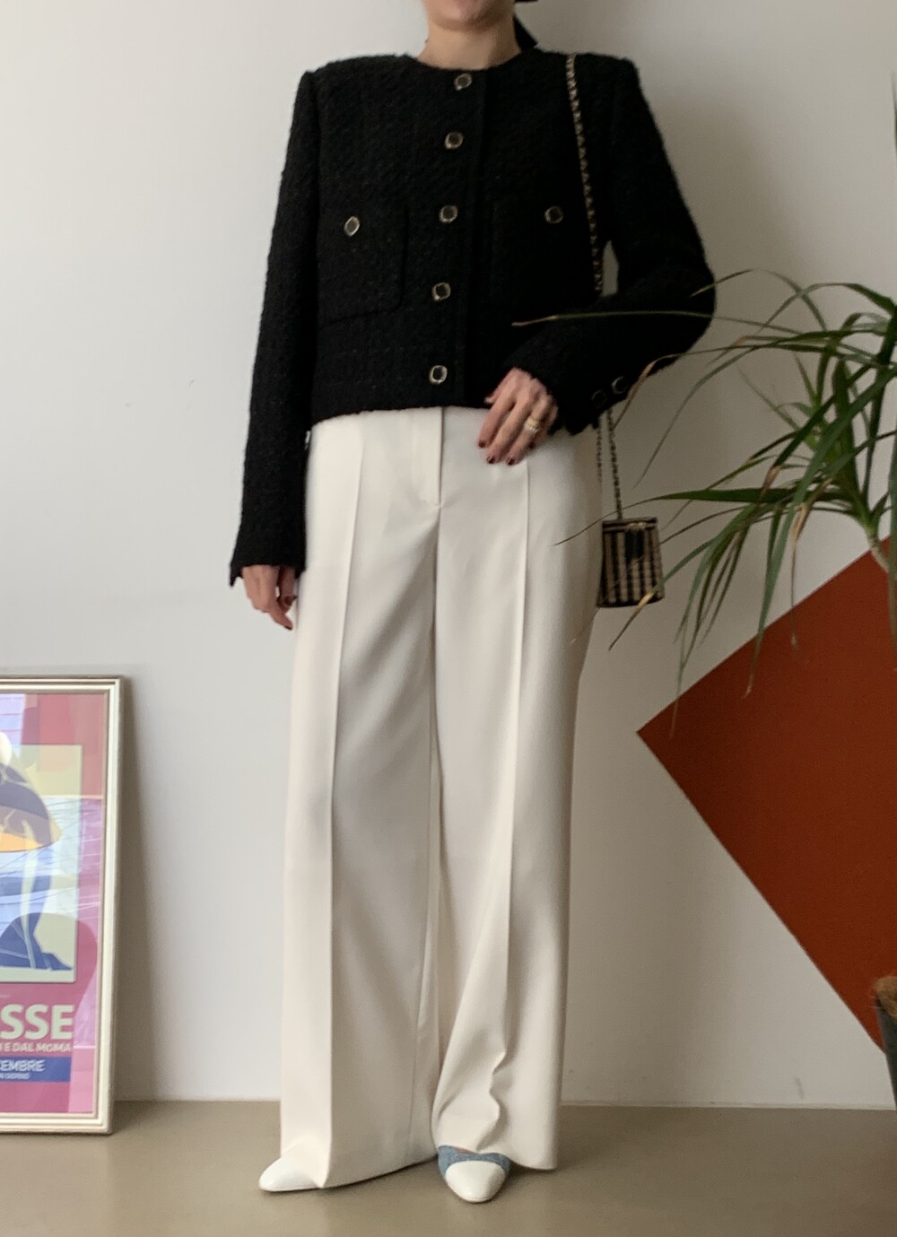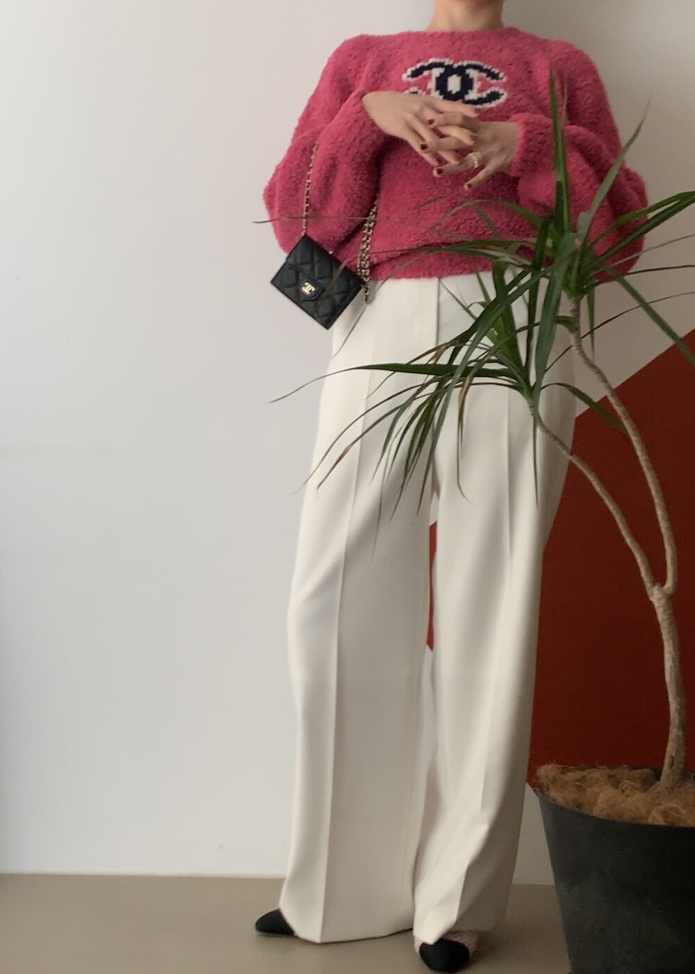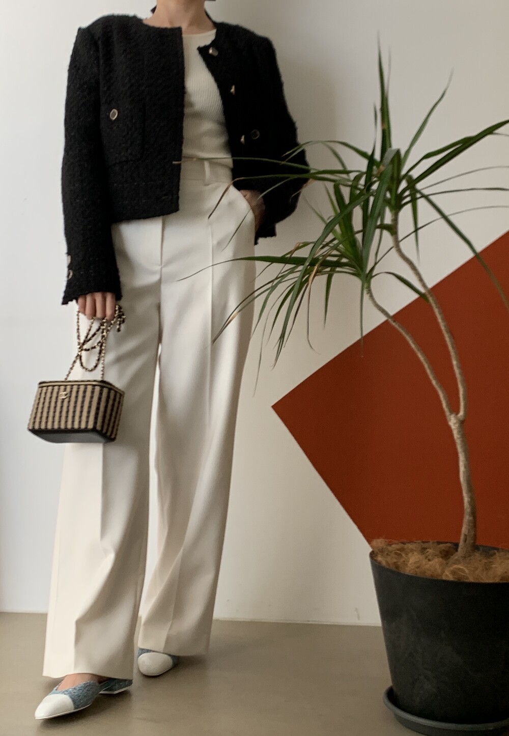 여성의 팬츠는 특히 허리 포인트의 위치에 따라 전체 룩의 균형감이 매우 달라지기에