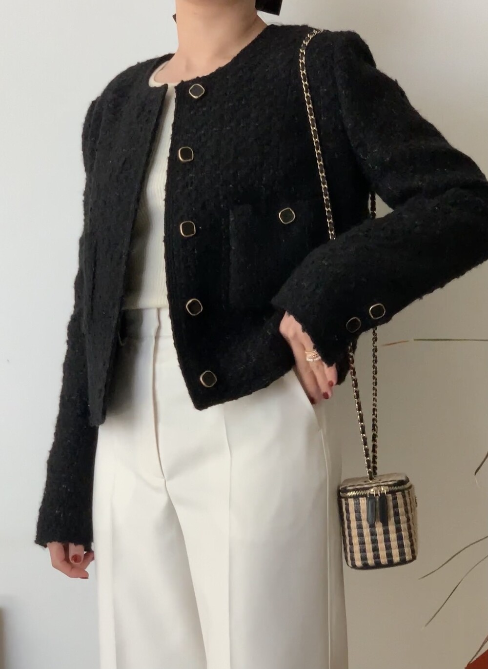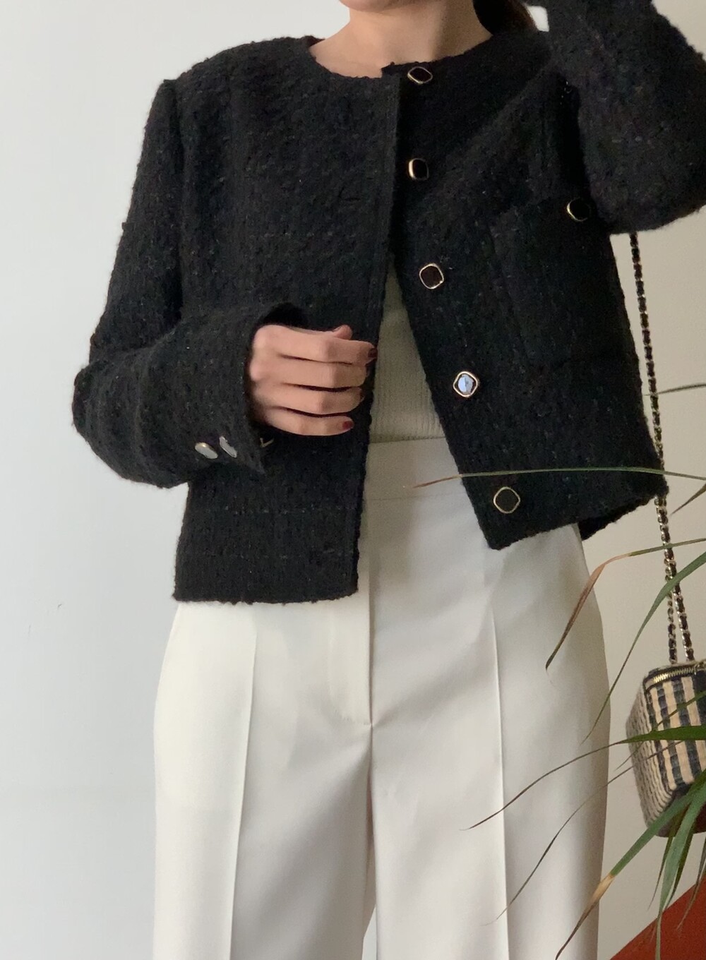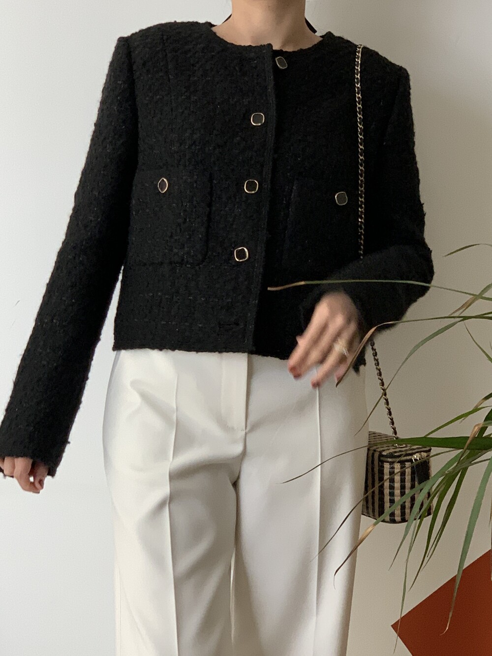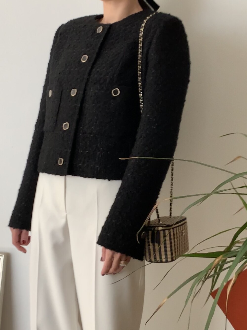 여름을 제외하고 모든 계절 착용 가능한 두께감의 원단으로 소재의 깊이감에서