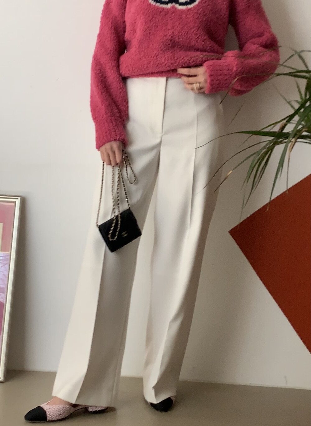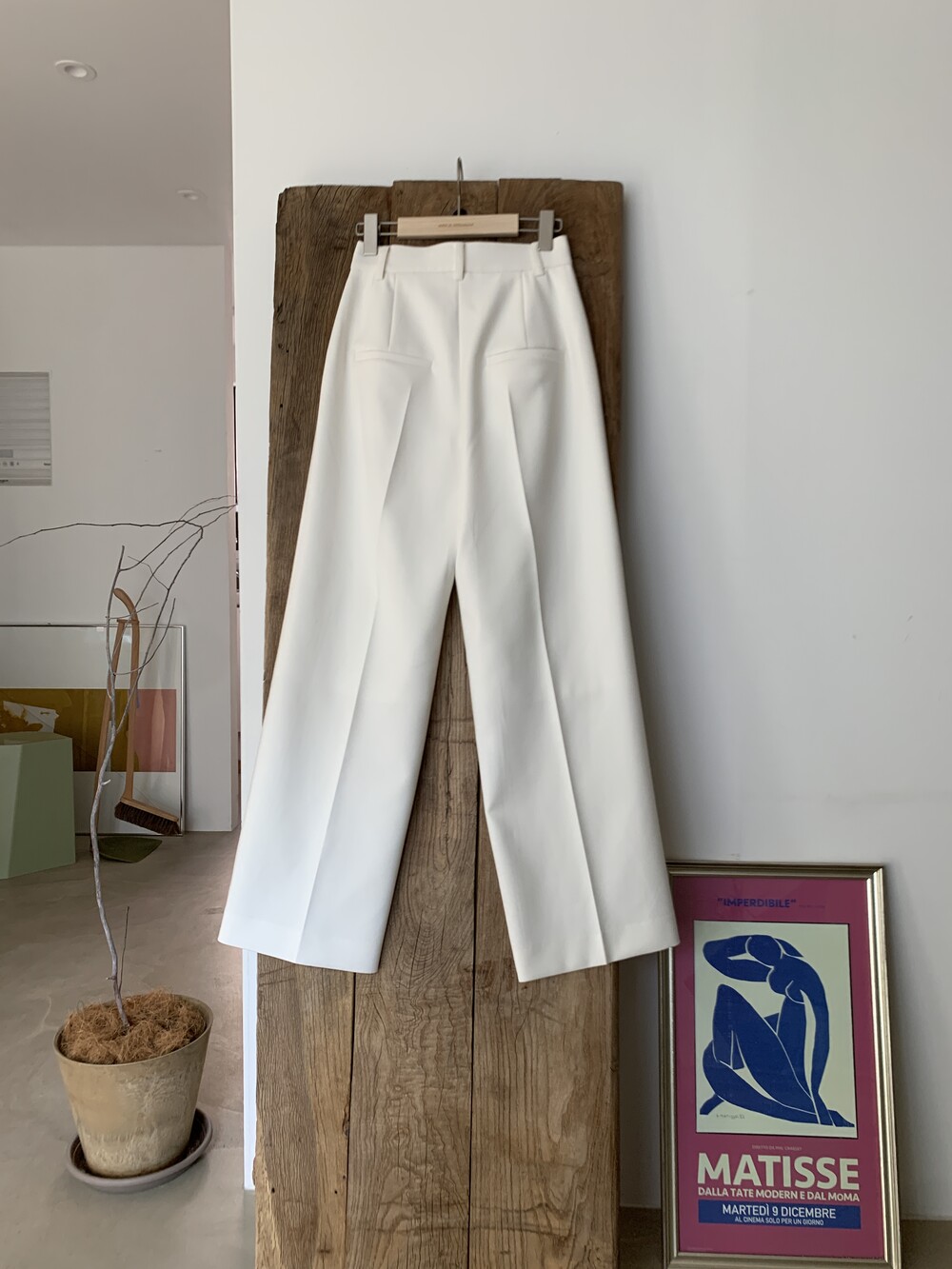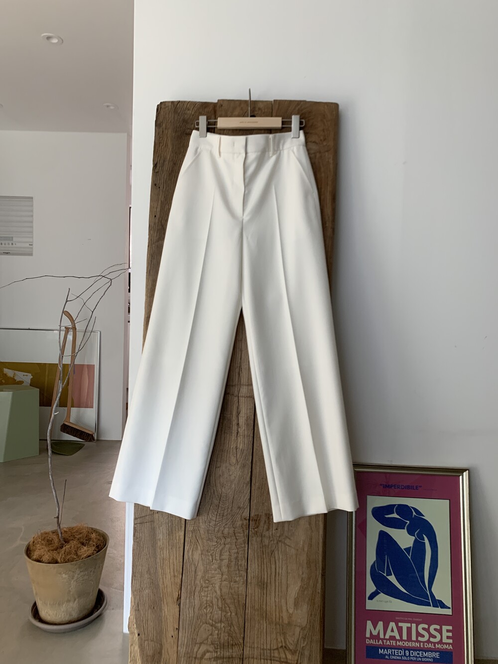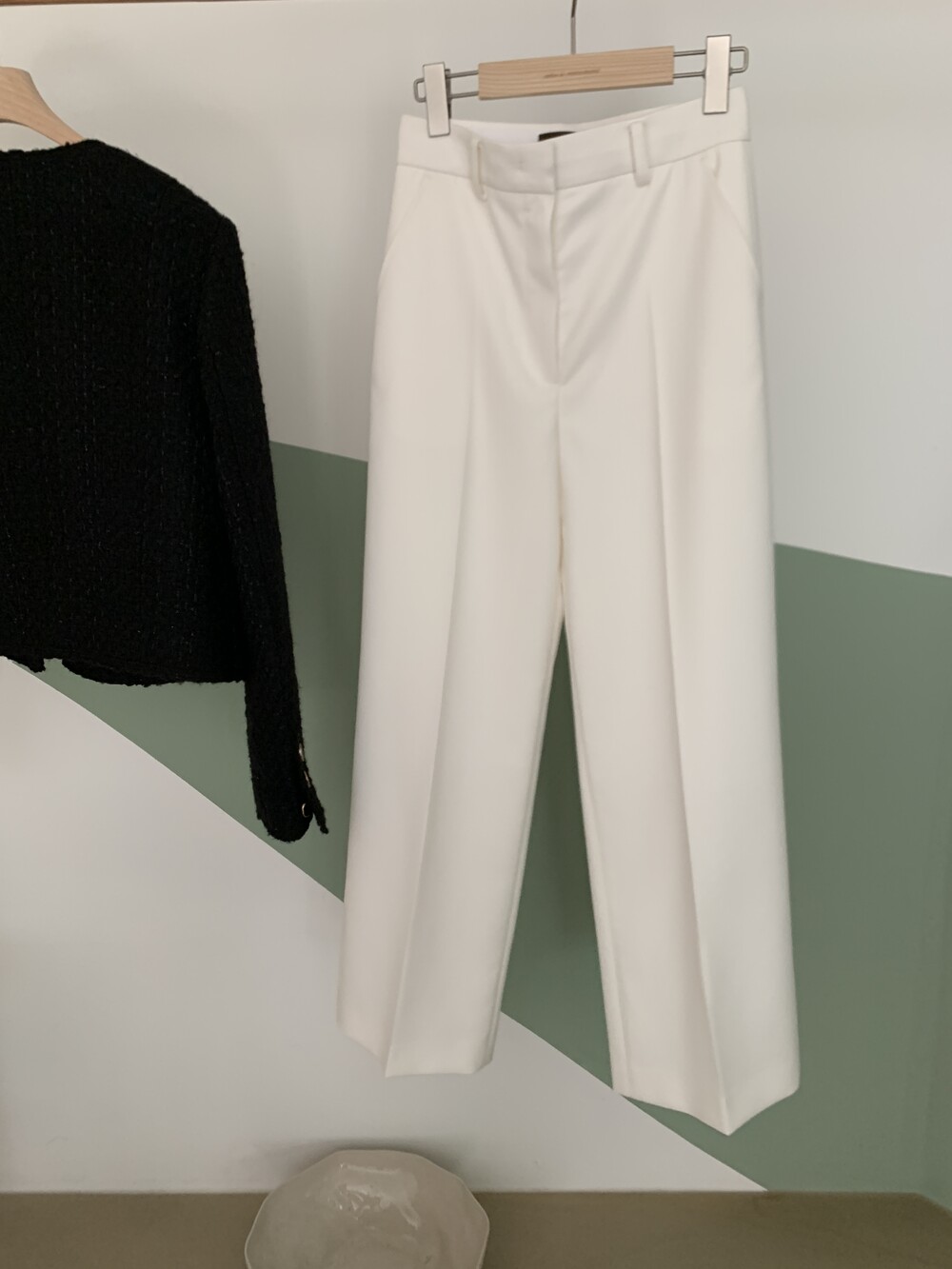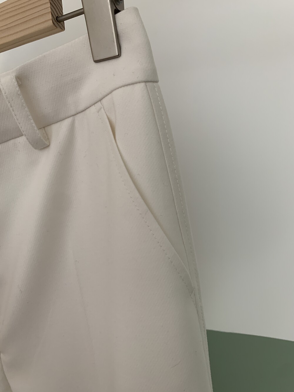 어떠한 상의에 매치해도 화사함과 우아함을 선사하기에 필수 아이템으로 여겨지는 오프 화이트 색상의 팬츠입니다.