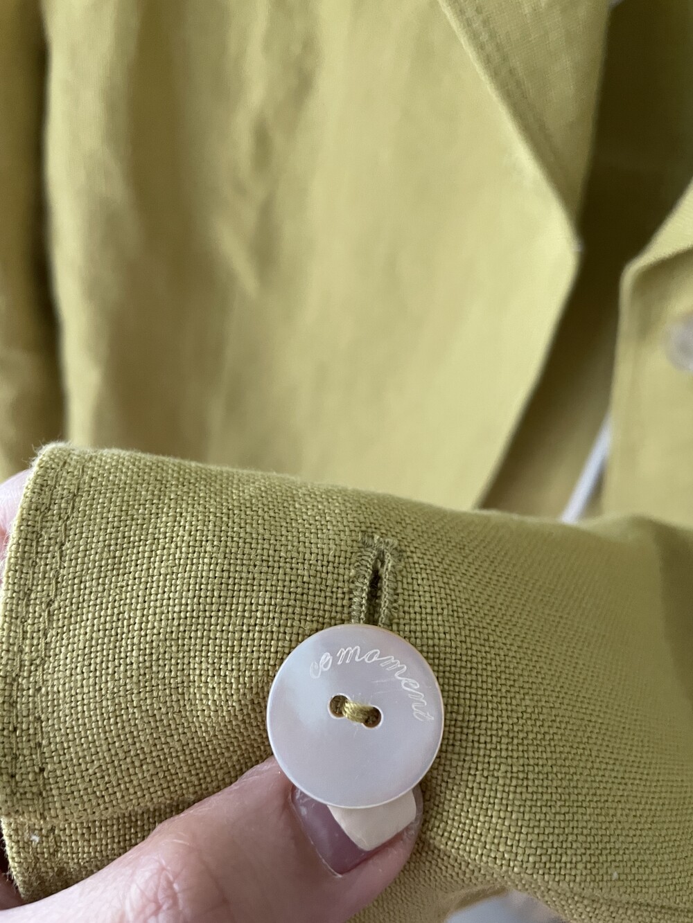 해리 처리하는 세심한 공정을 거쳤습니다. 또한 라이트 베이지 컬러감의 리얼 자개단추로