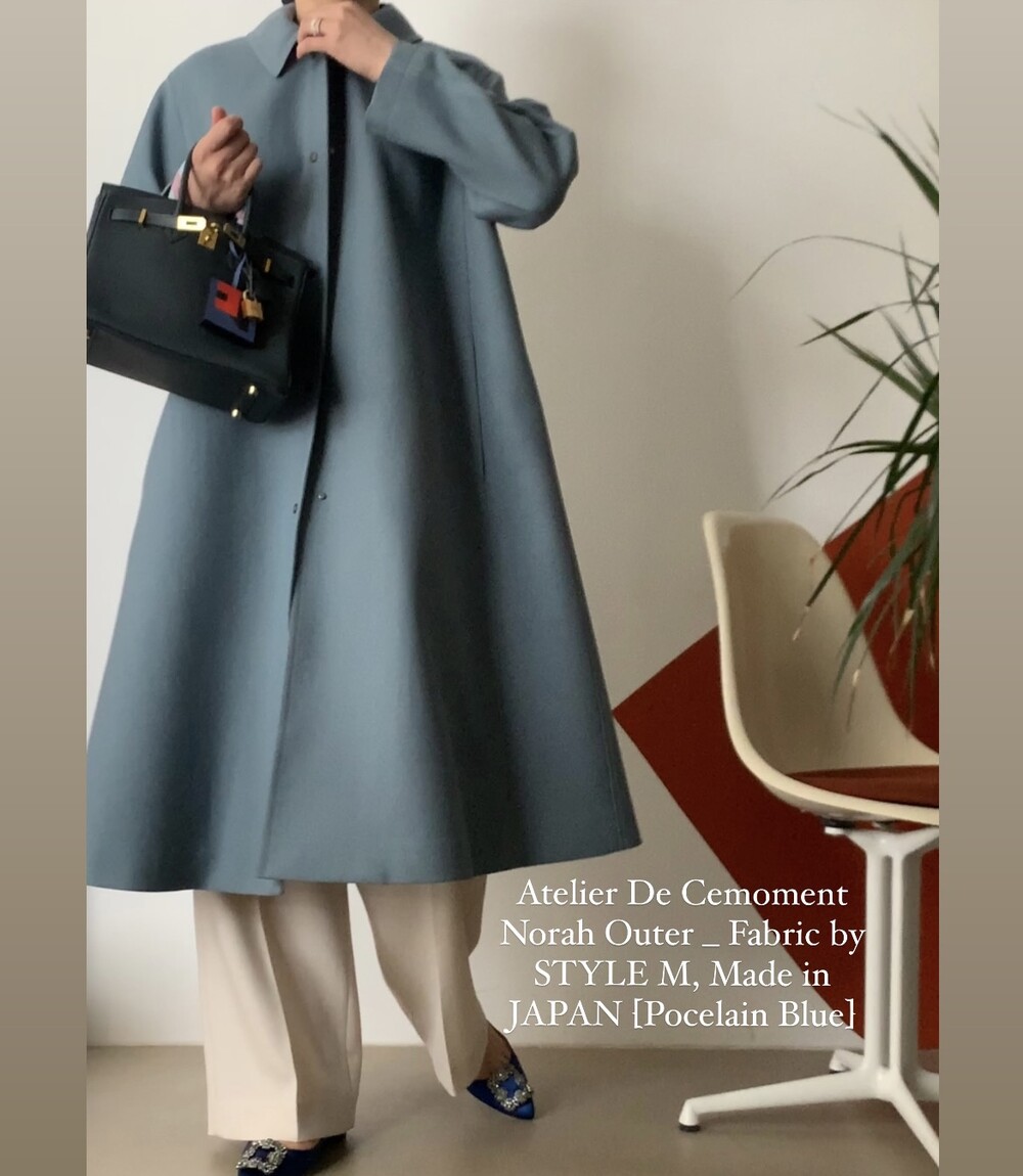 Atelier De Cemoment Norah-2 Outer_ Fabric by, Made in JAPAN [Pocelain Blue]