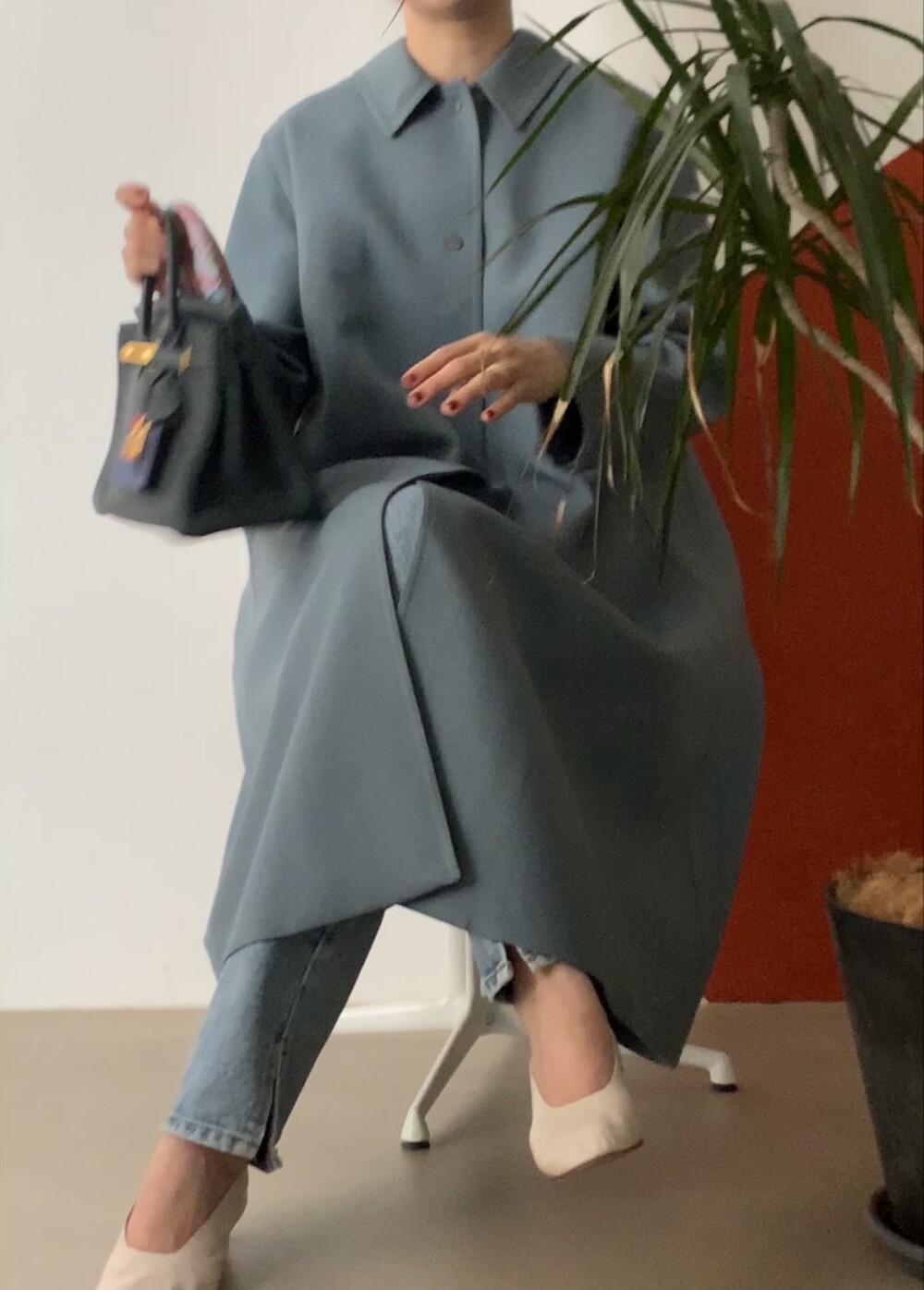 Atelier De Cemoment Norah-2 Outer _ Fabric by, Made in JAPAN [Pocelain Blue]