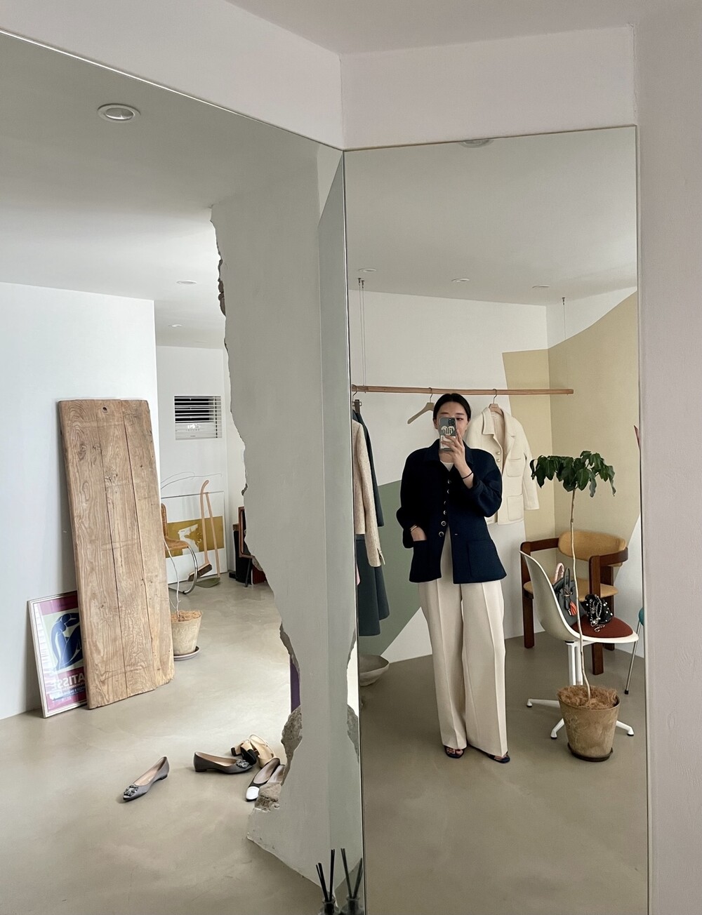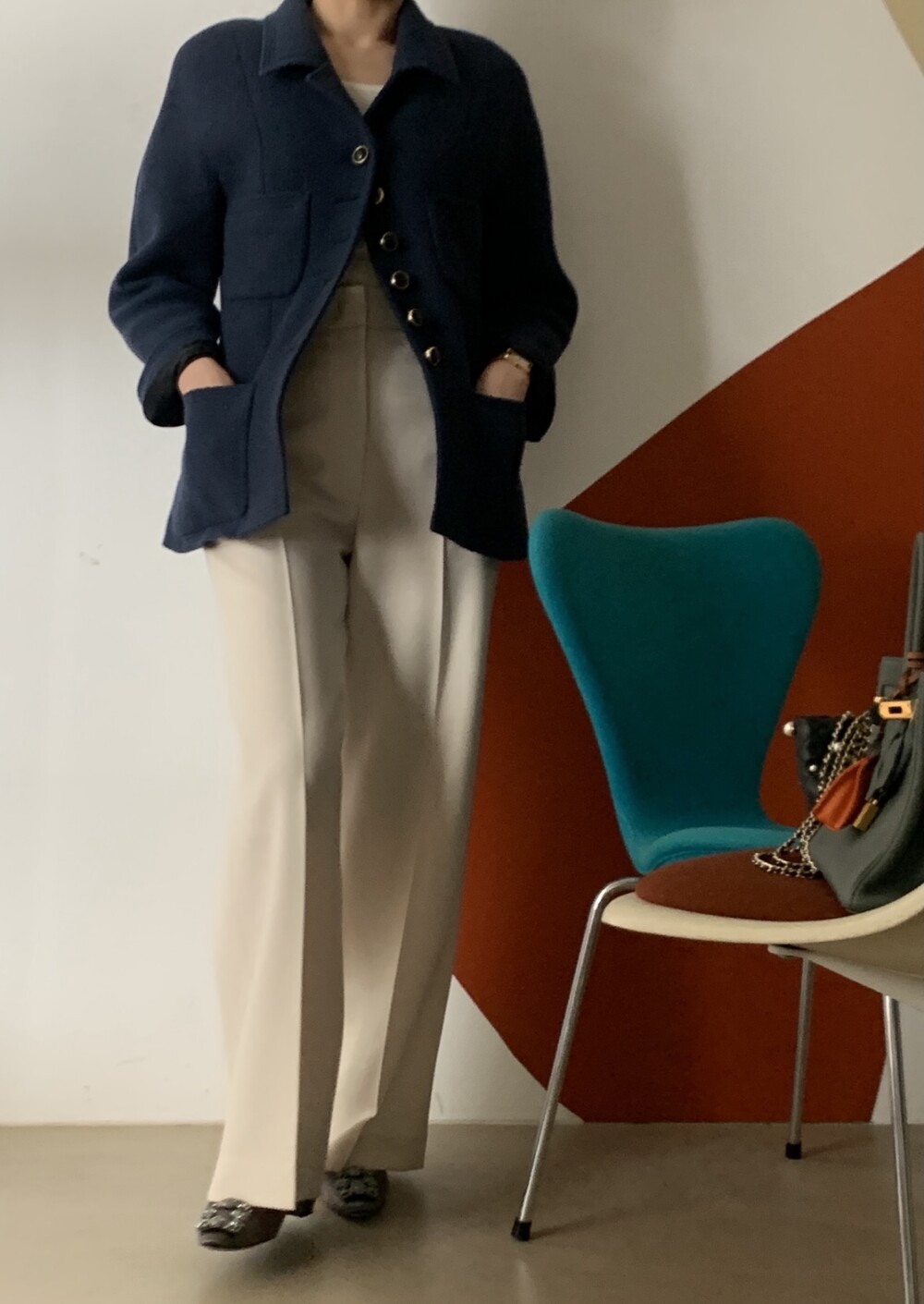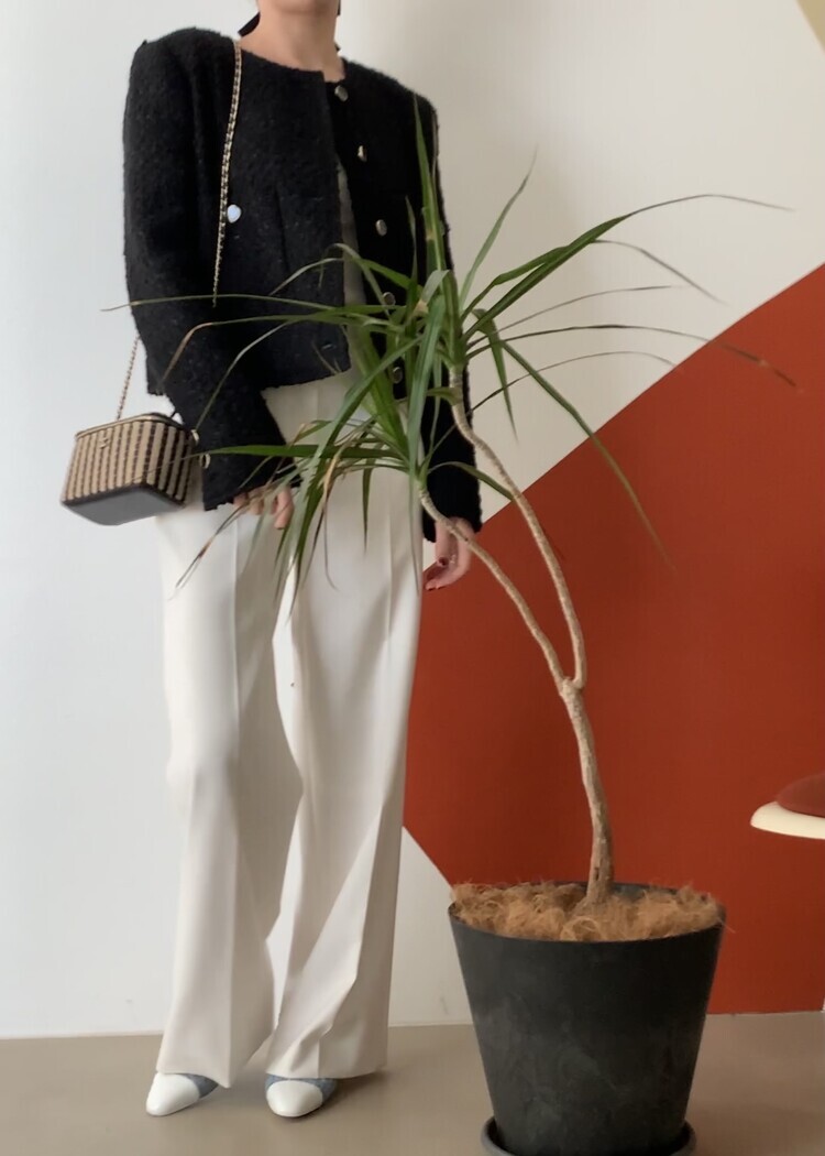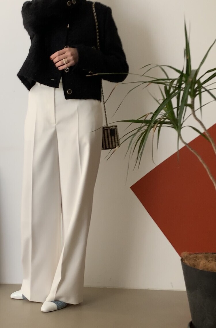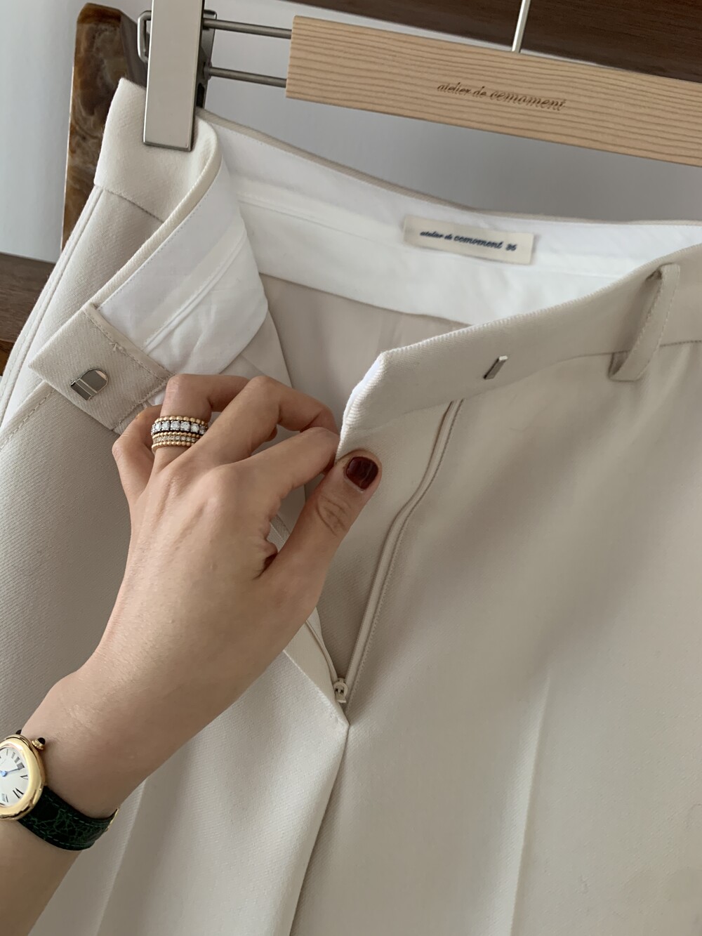 여성의 팬츠는 특히 허리 포인트의 위치에 따라 전체 룩의 균형감이 매우 달라지기에