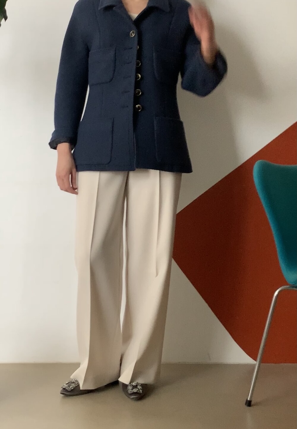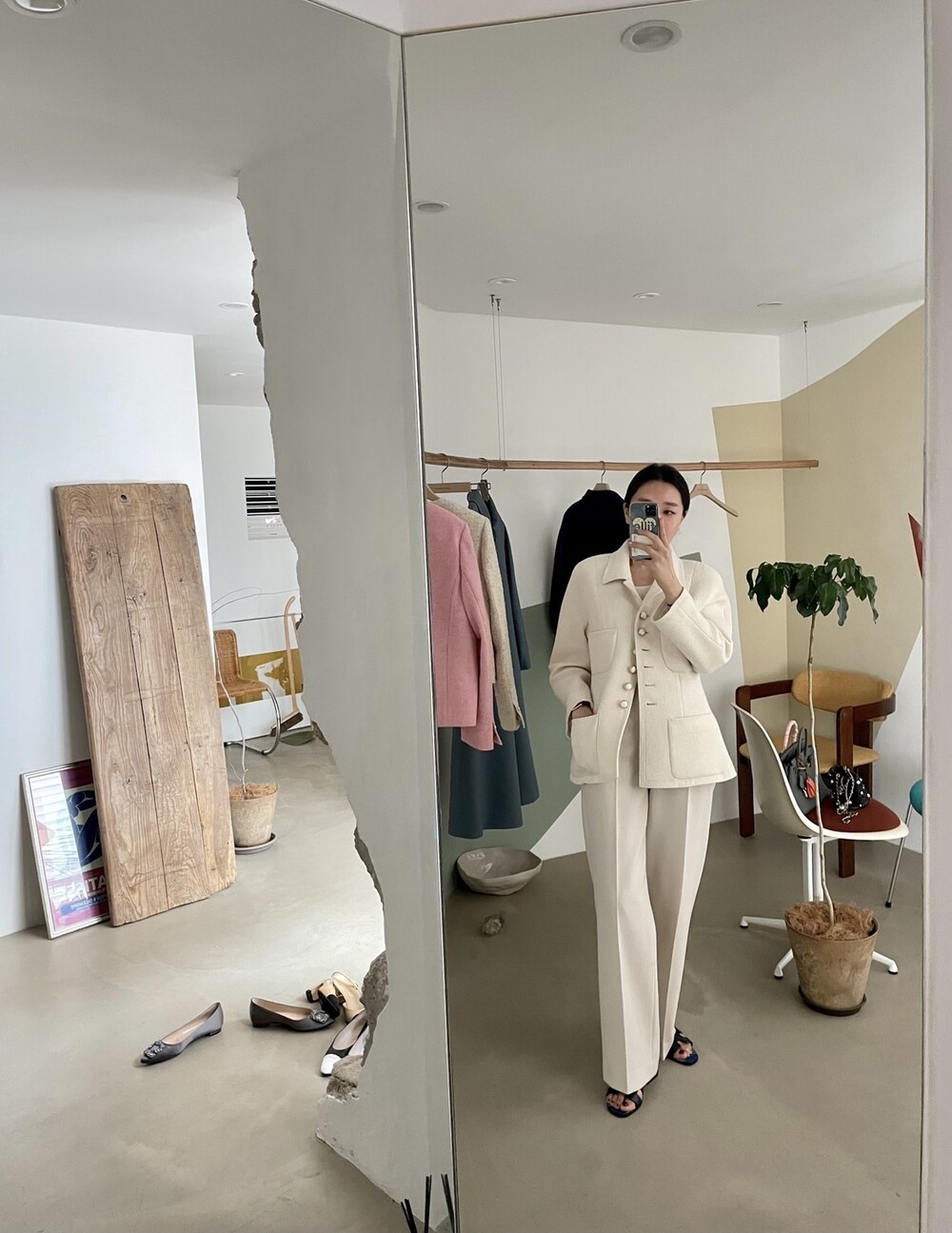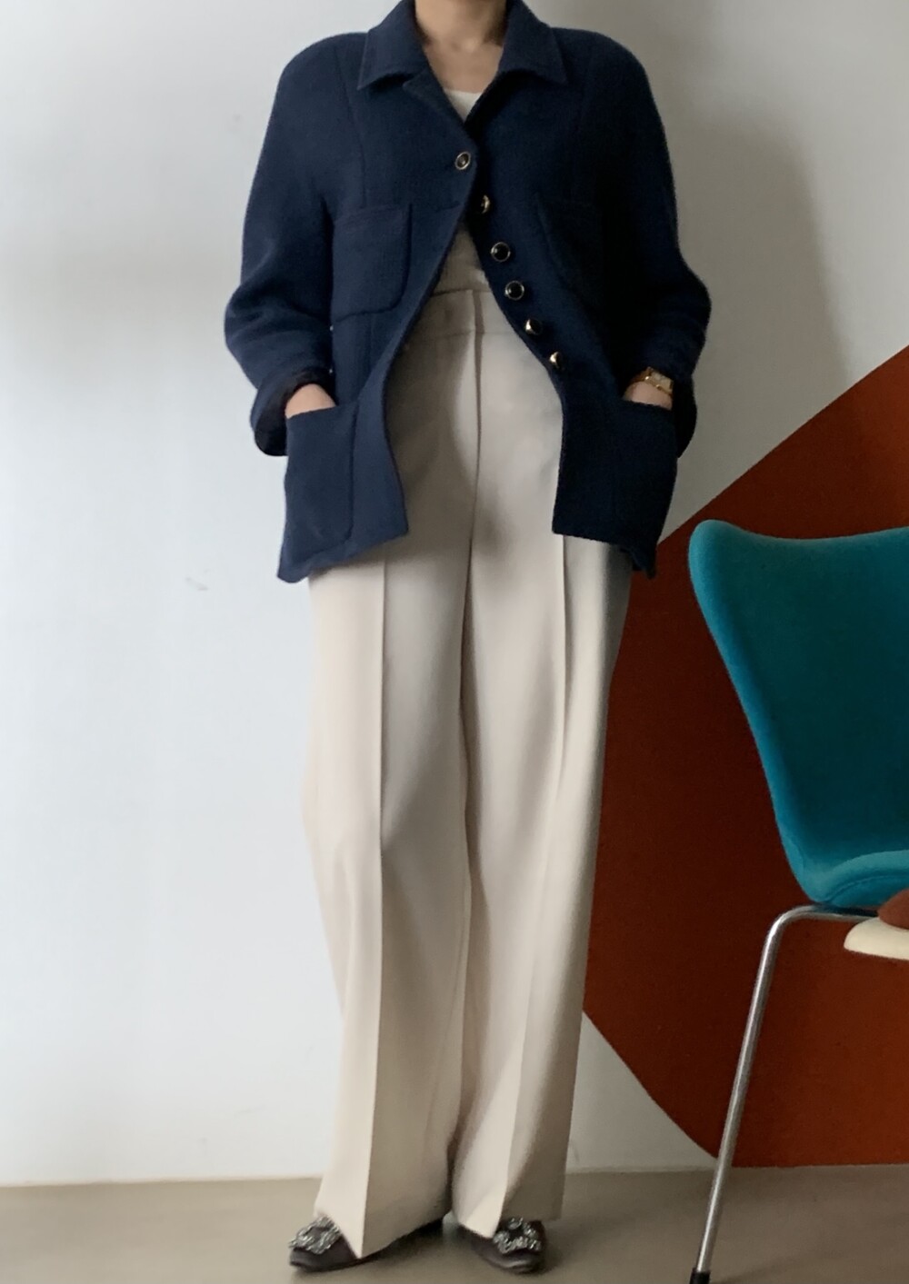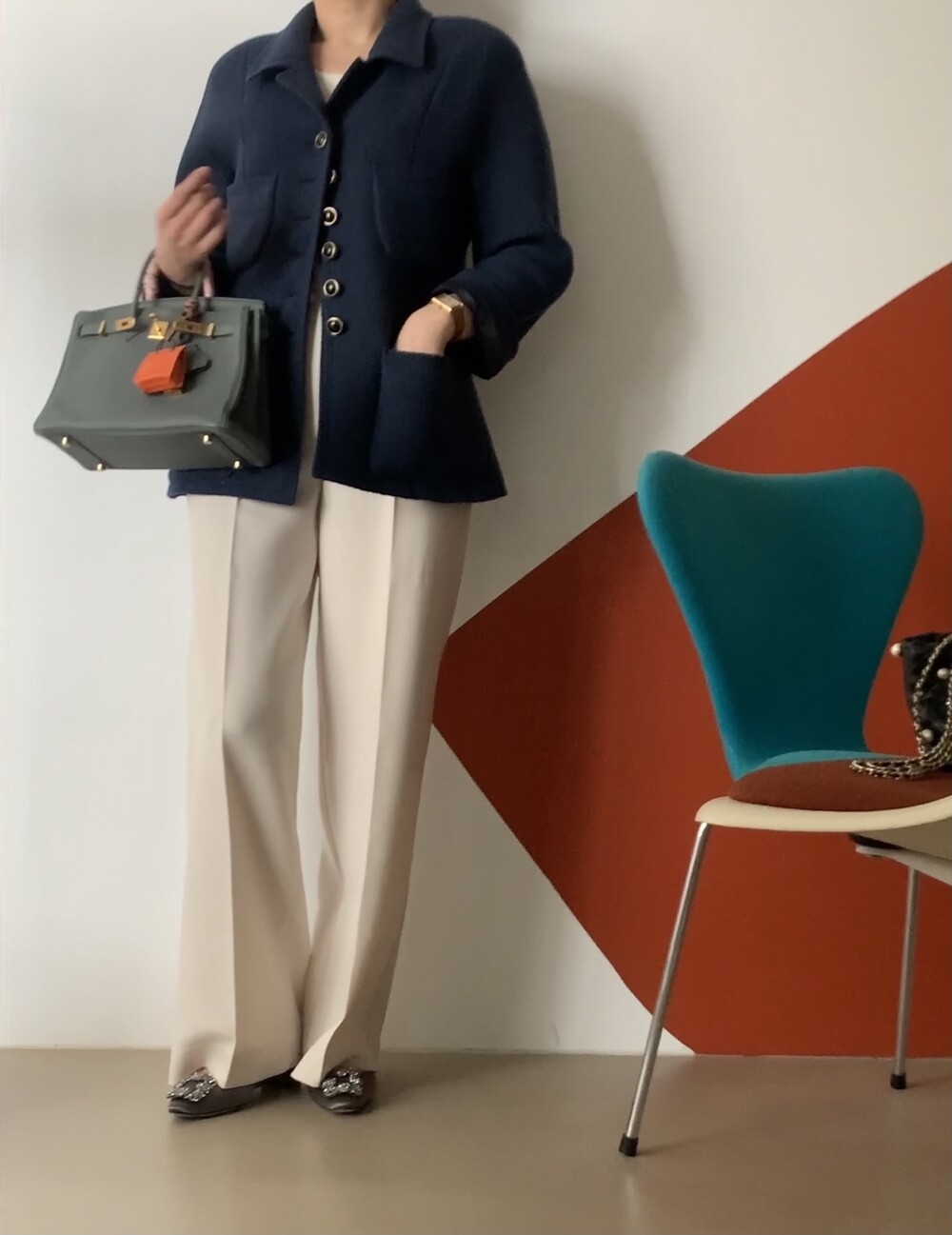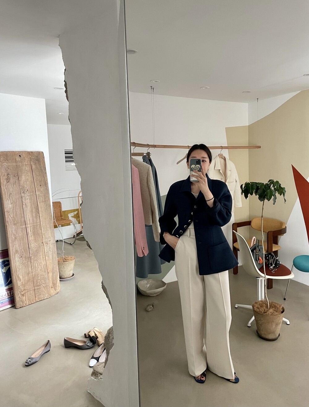 여성의 팬츠는 특히 허리 포인트의 위치에 따라 전체 룩의 균형감이 매우 달라지기에