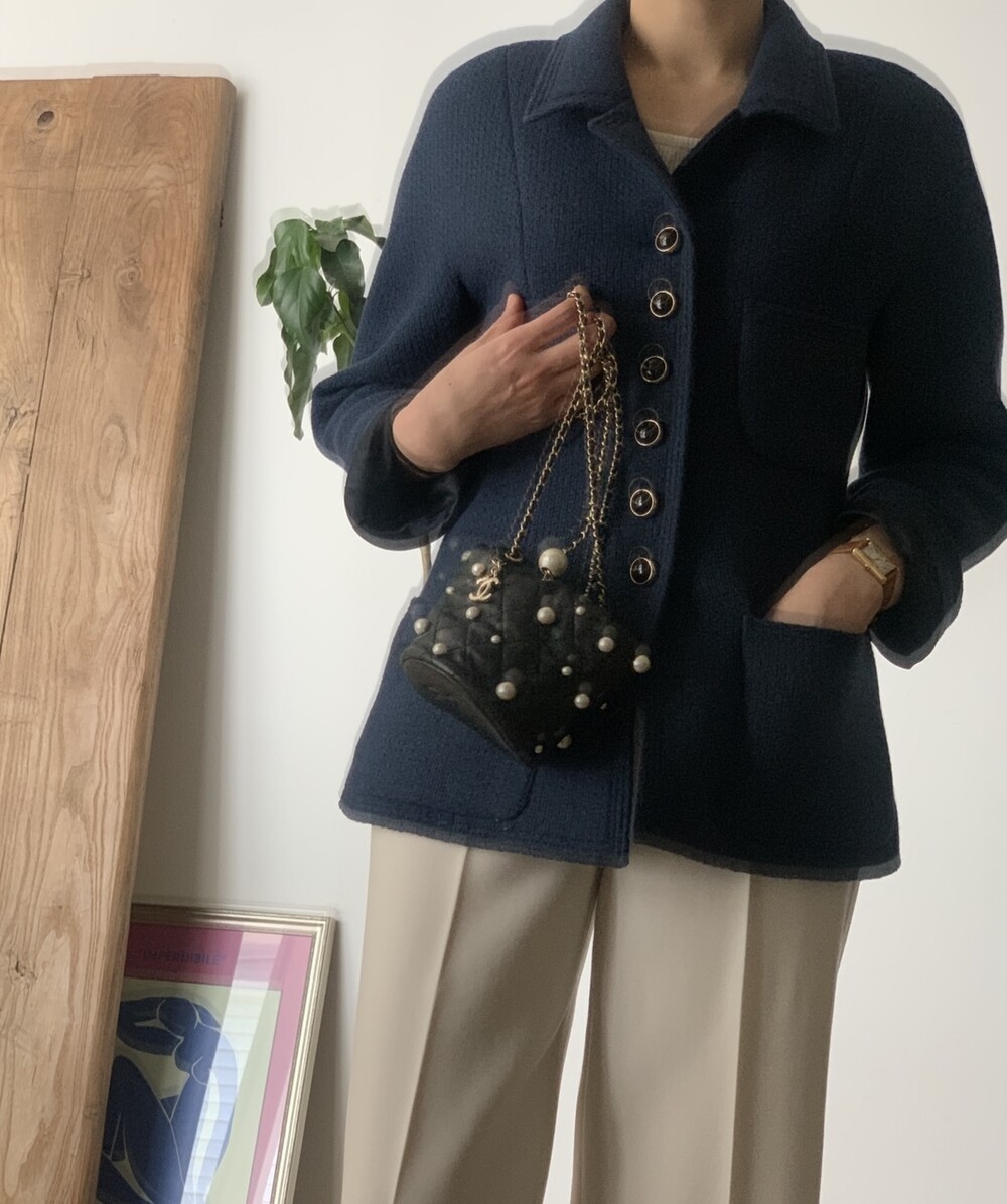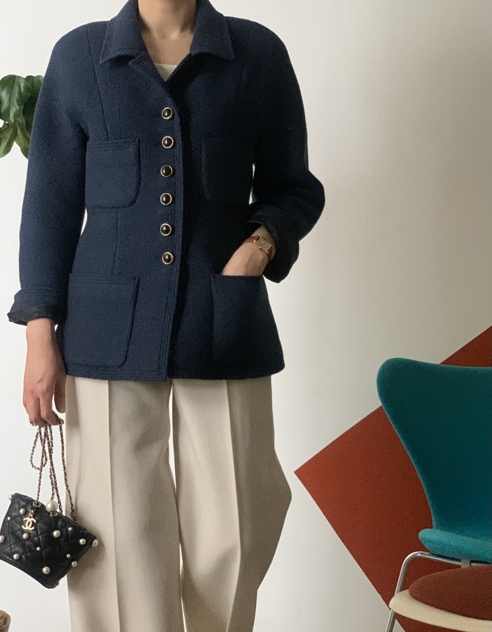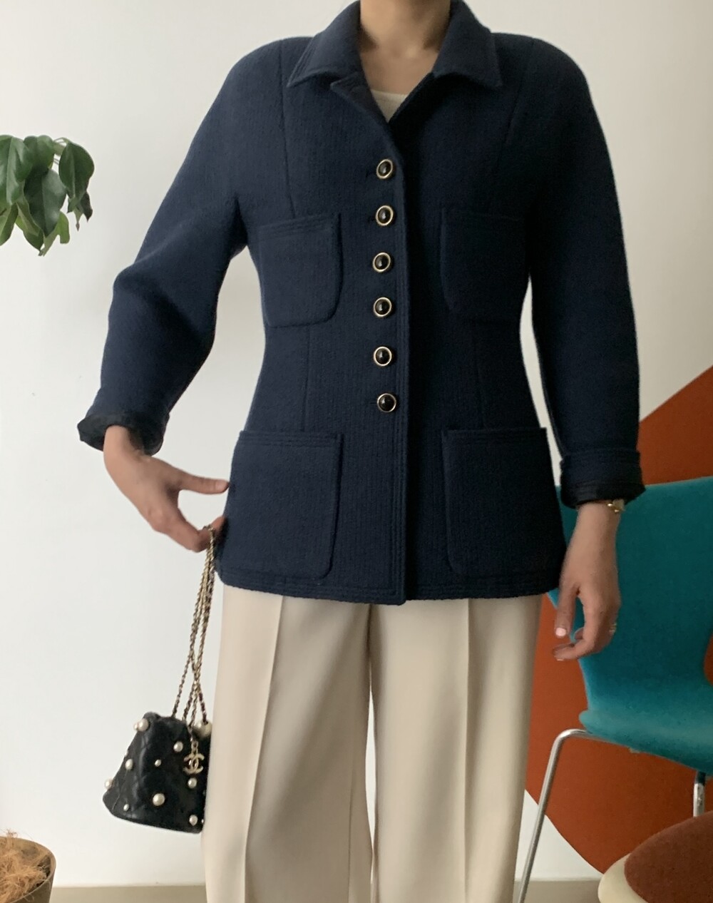 여름을 제외하고 모든 계절 착용 가능한 두께감의 원단으로 소재의 깊이감에서 느껴지는