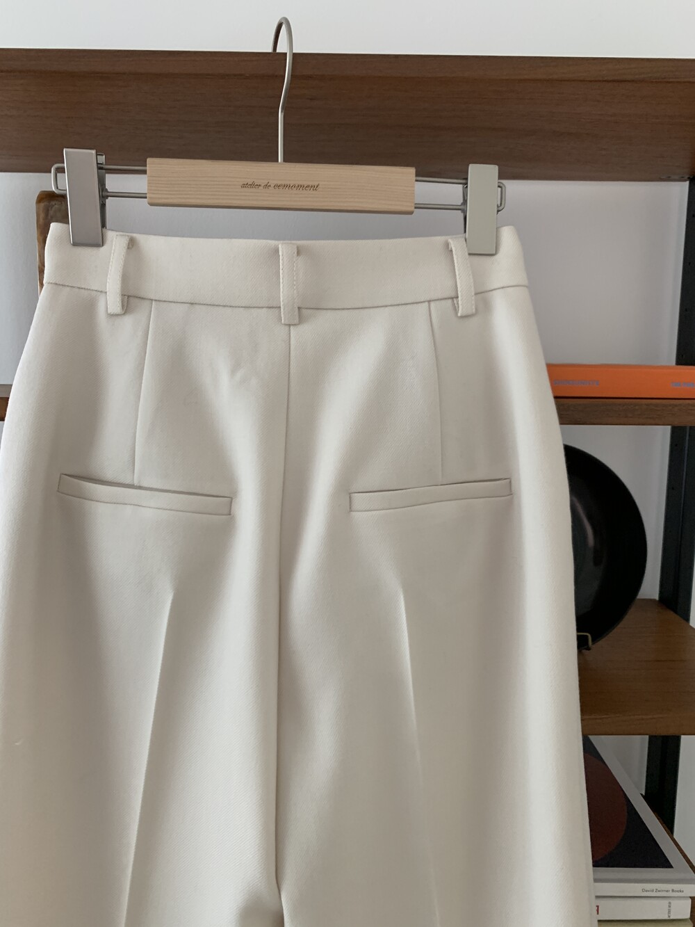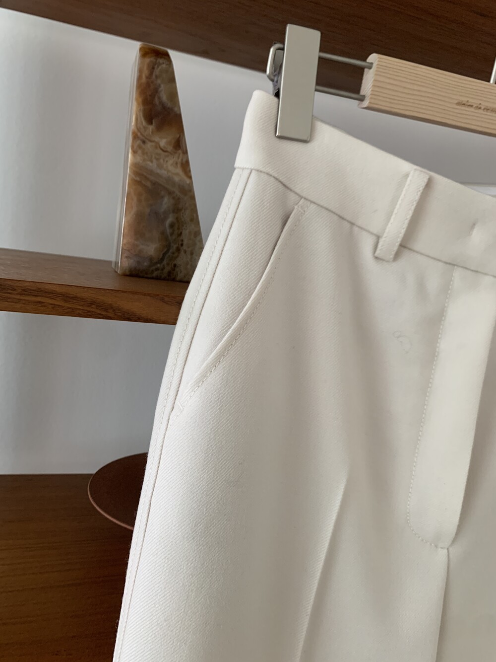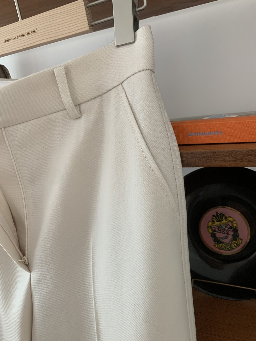 다양한 옷들과 적절하게 어울리며 화사함과 우아함을 함께 선사하는 오프 화이트 색상의 팬츠입니다.