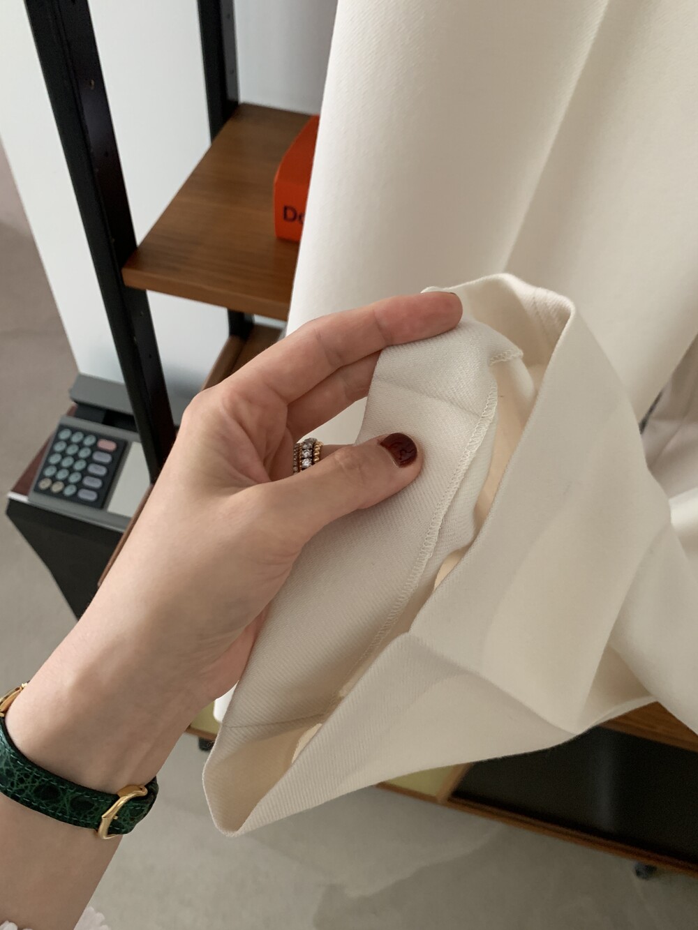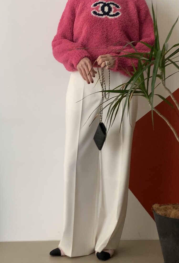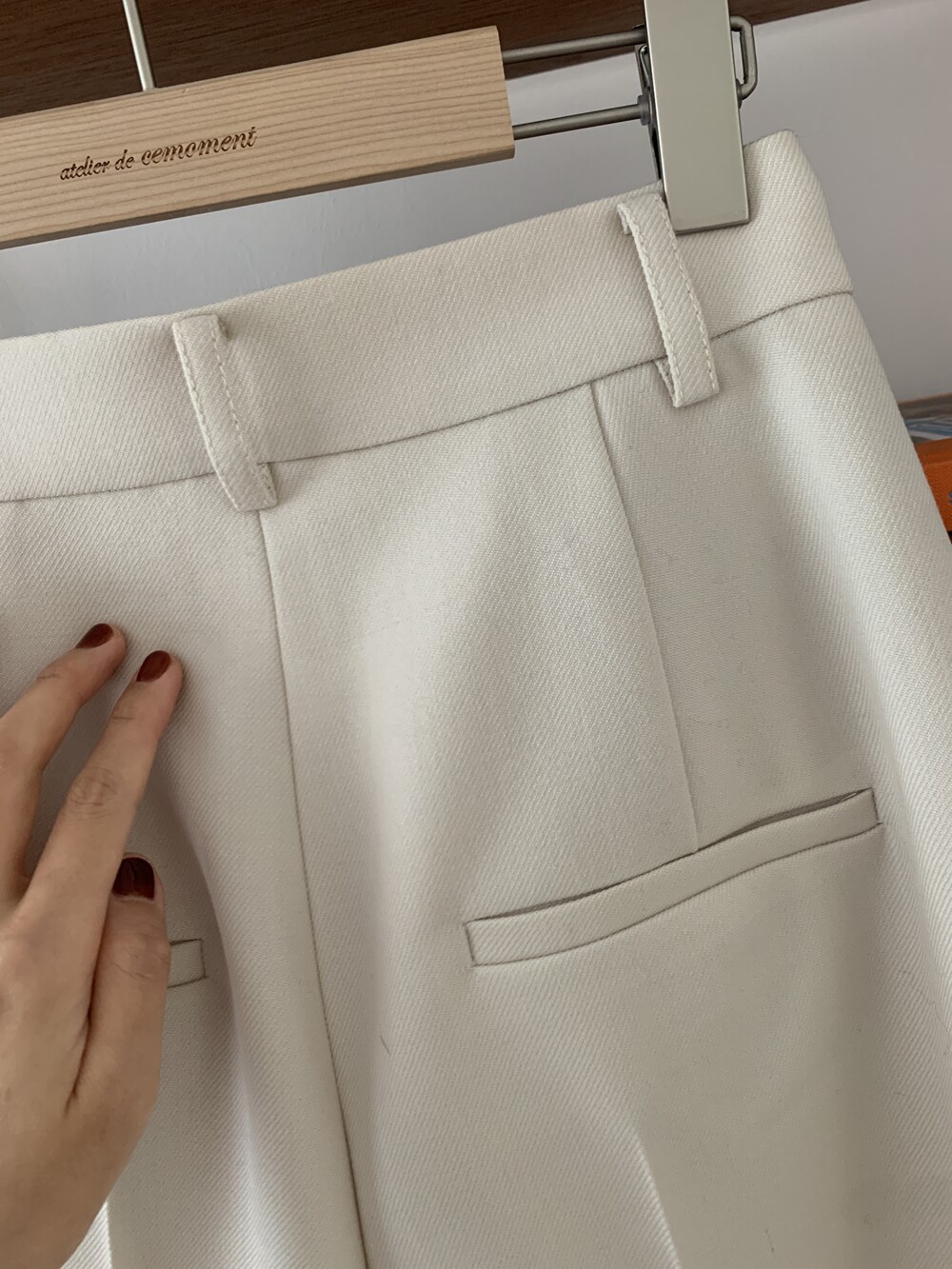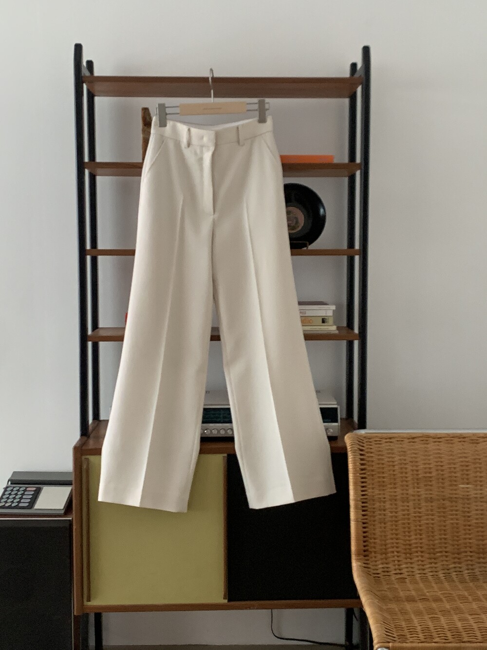 다양한 옷들과 적절하게 어울리며 화사함과 우아함을 함께 선사하는 오프 화이트 색상의 팬츠입니다.