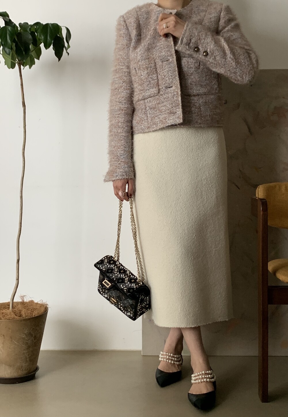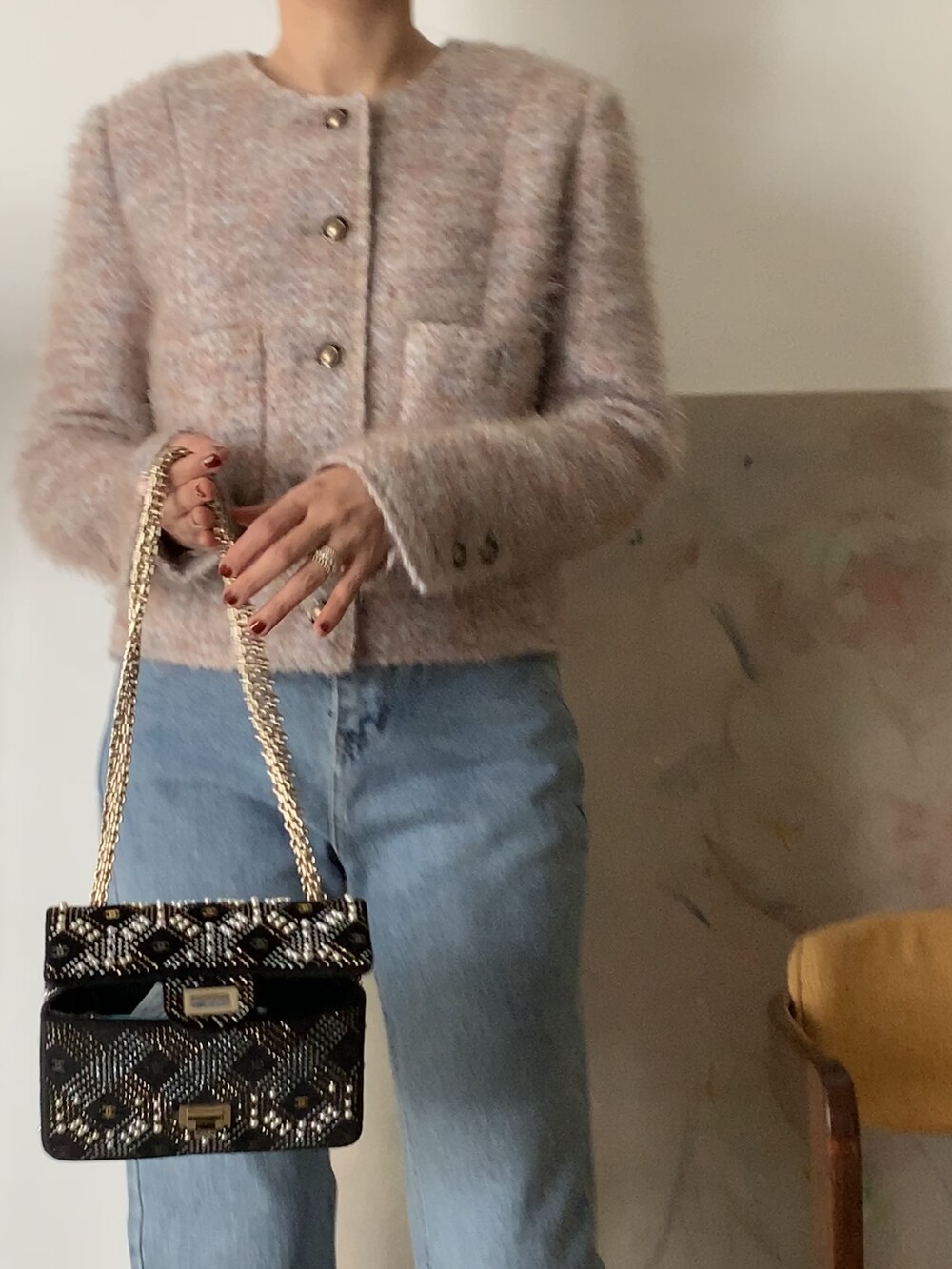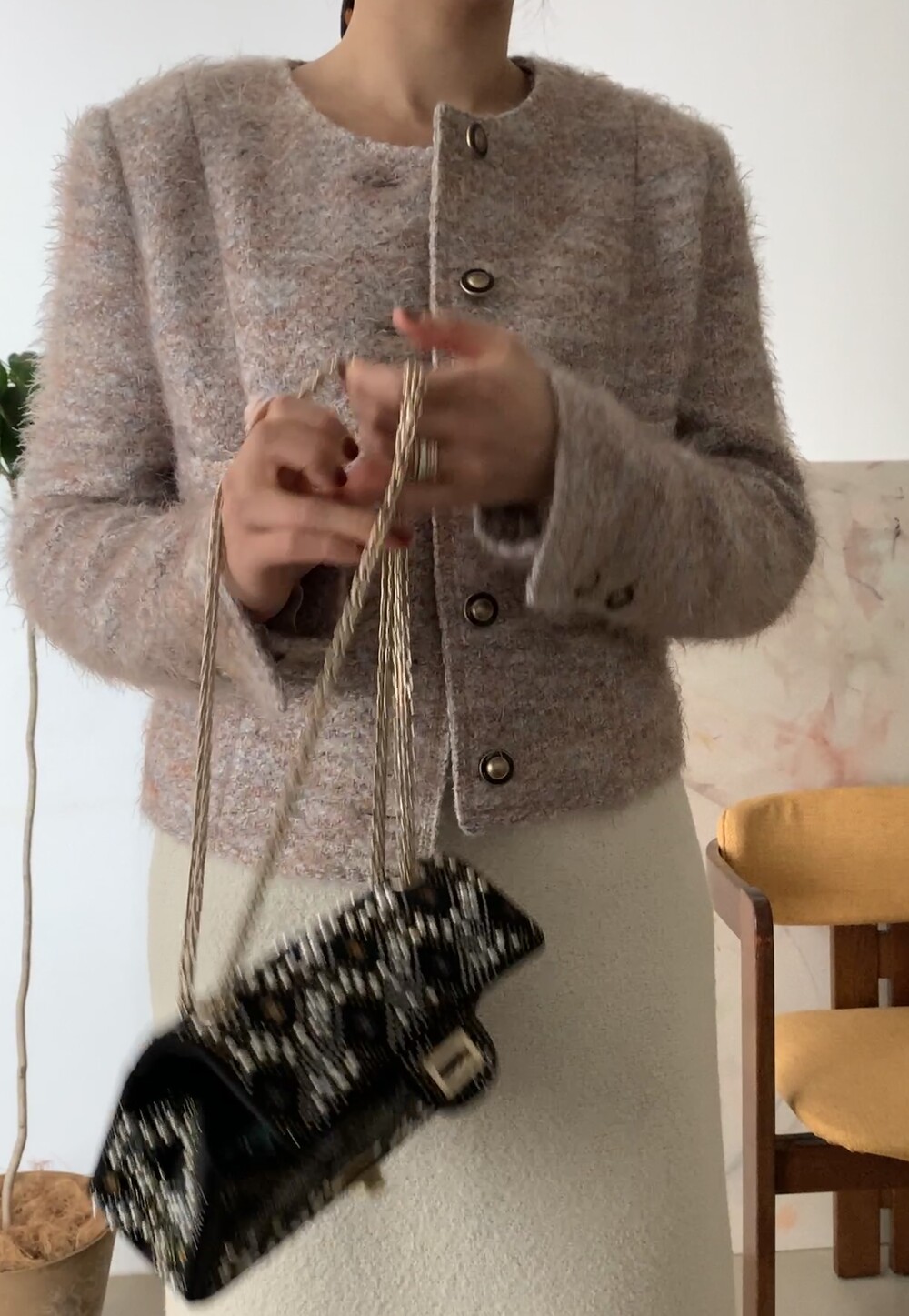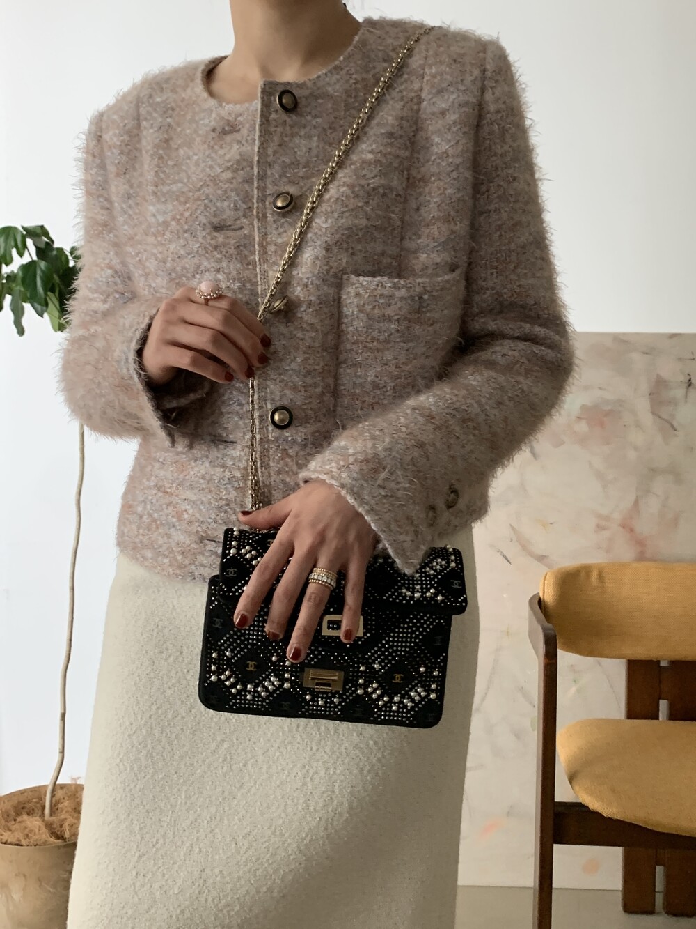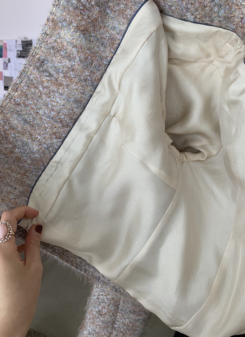 트위드 원단은 두께와 무게에 맞춘 적절한 디자인과 세심한 봉제가 더욱 중요한 요소라 생각합니다.