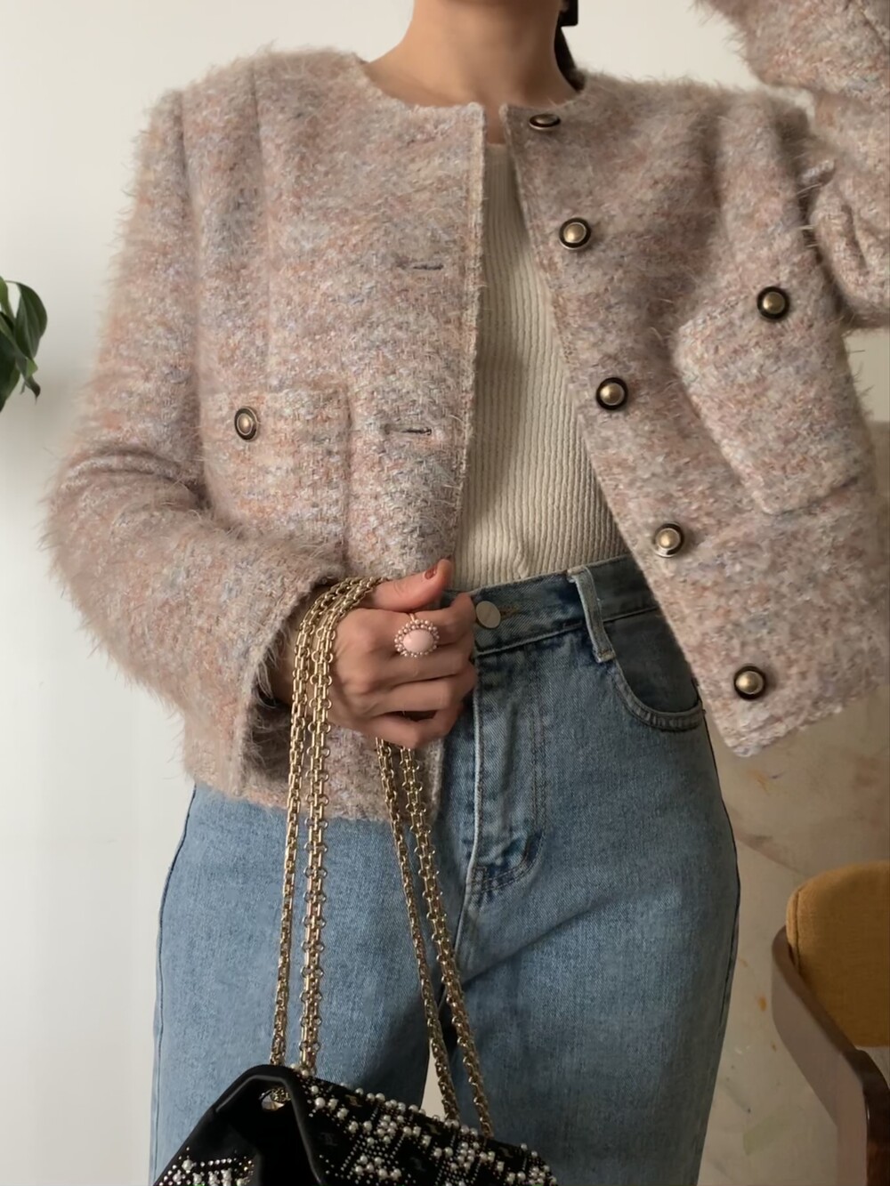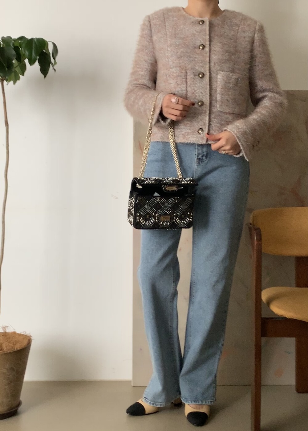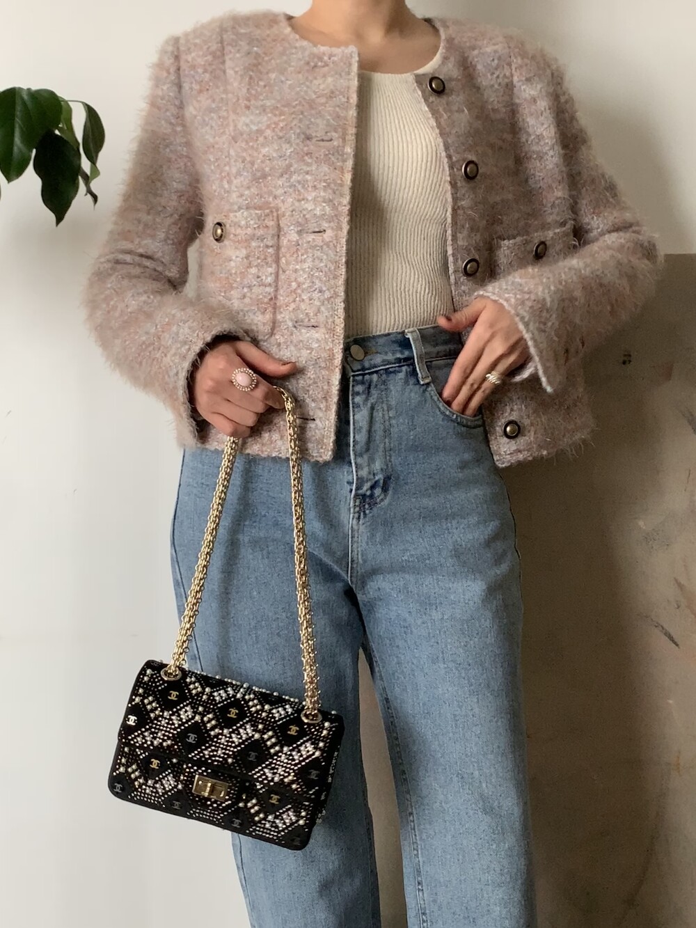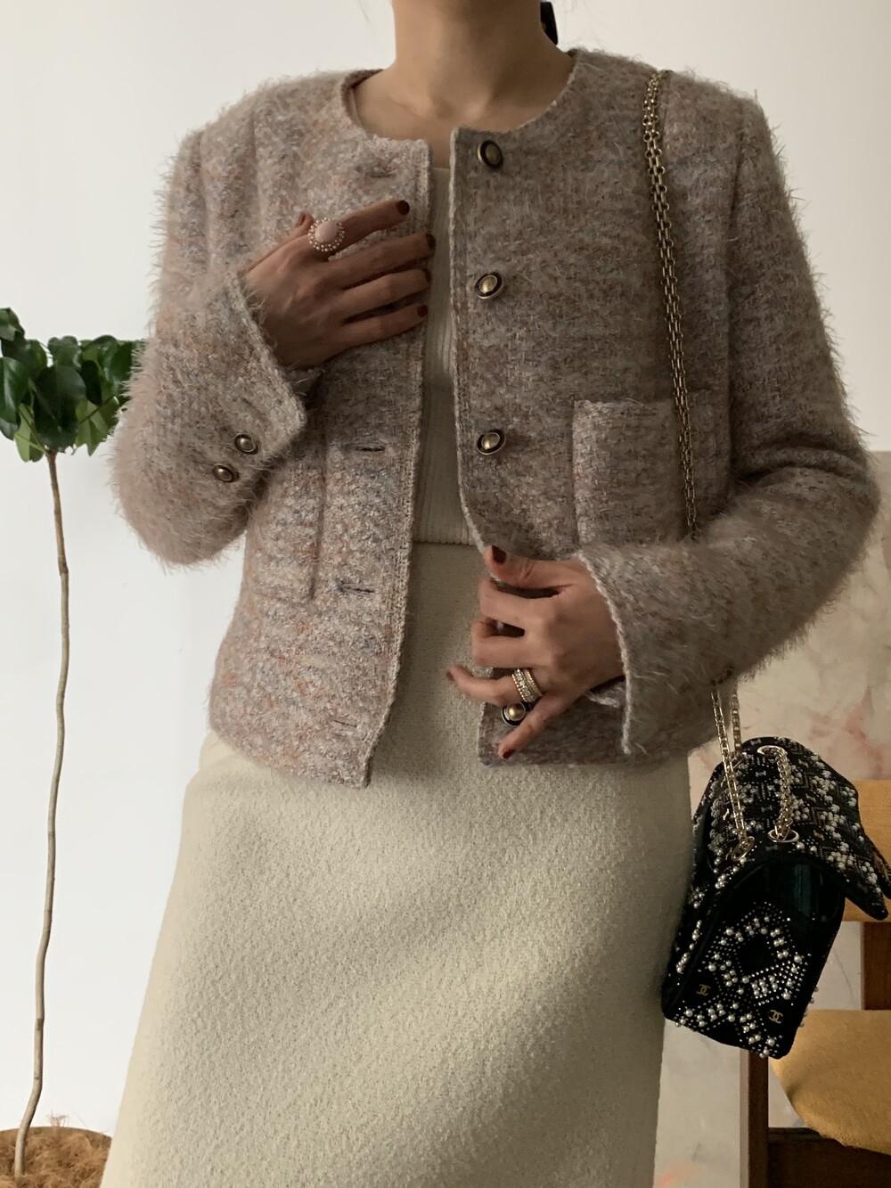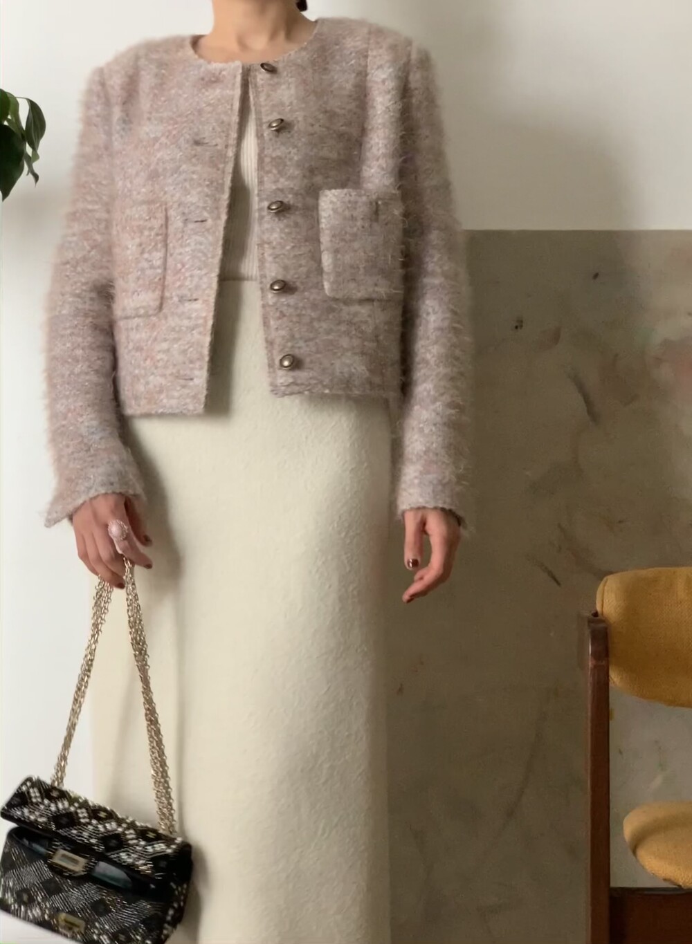 트위드 원단은 두께와 무게에 맞춘 적절한 디자인과 세심한 봉제가 더욱 중요한 요소라 생각합니다.