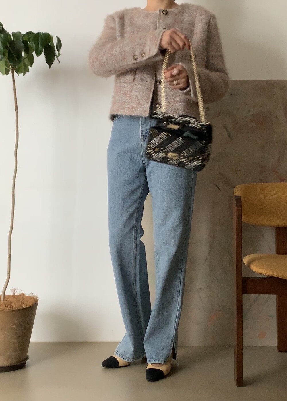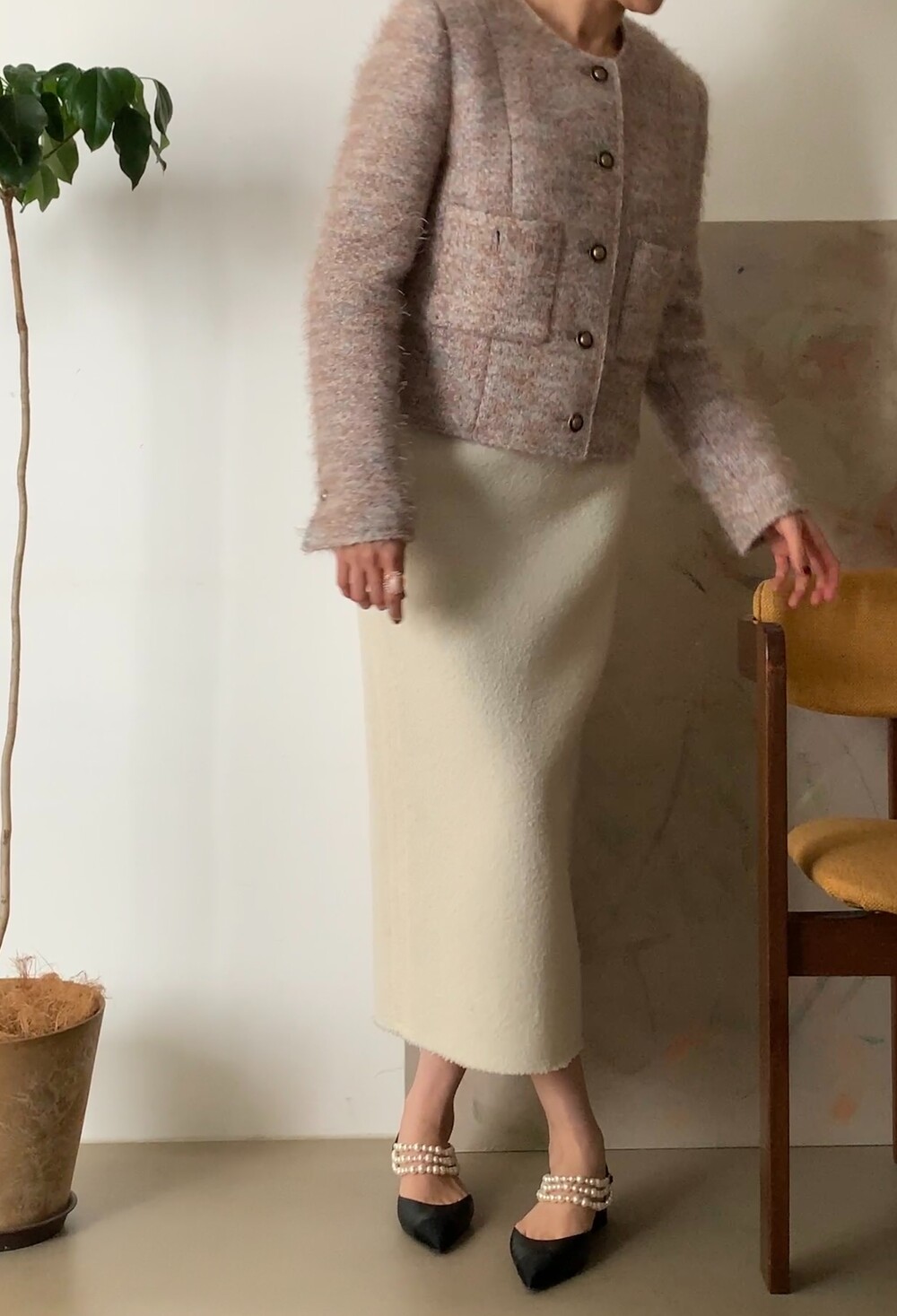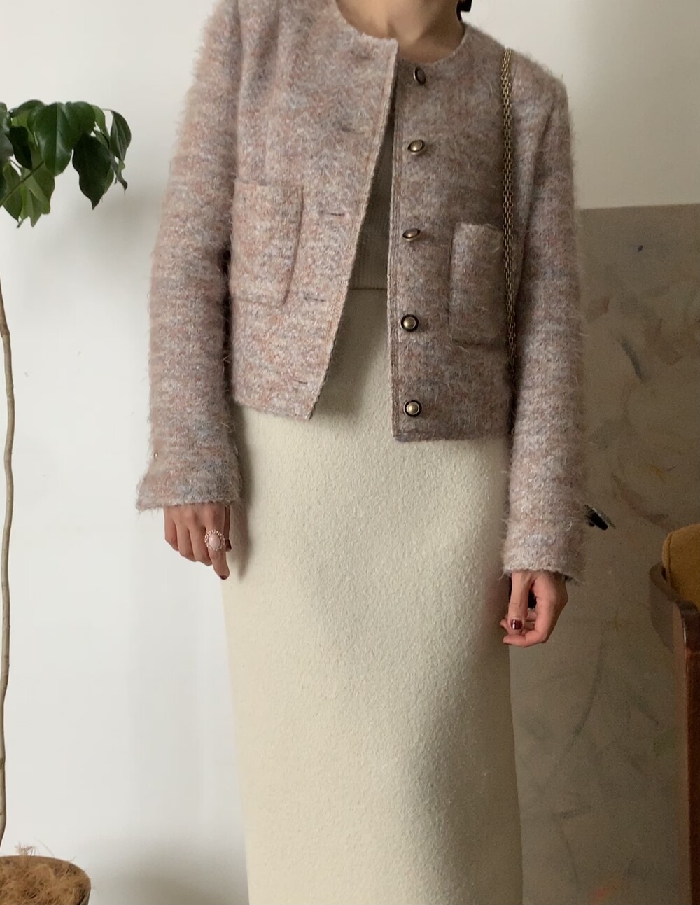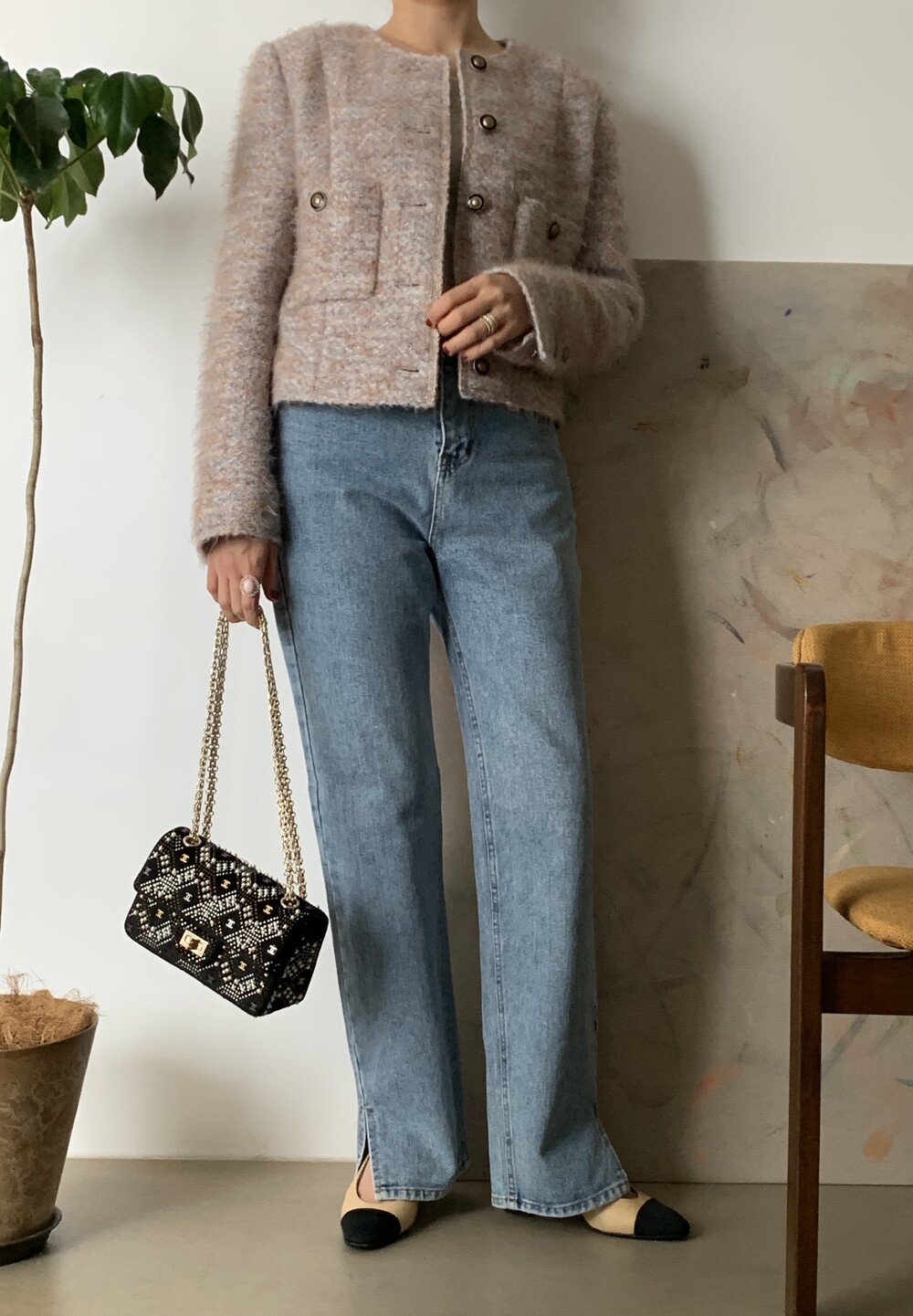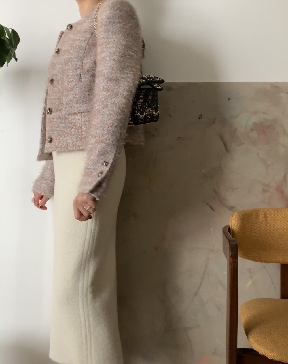 트위드 원단은 두께와 무게에 맞춘 적절한 디자인과 세심한 봉제가 더욱 중요한 요소라 생각합니다.