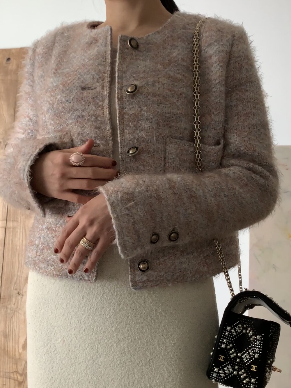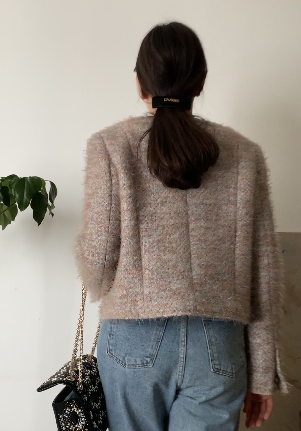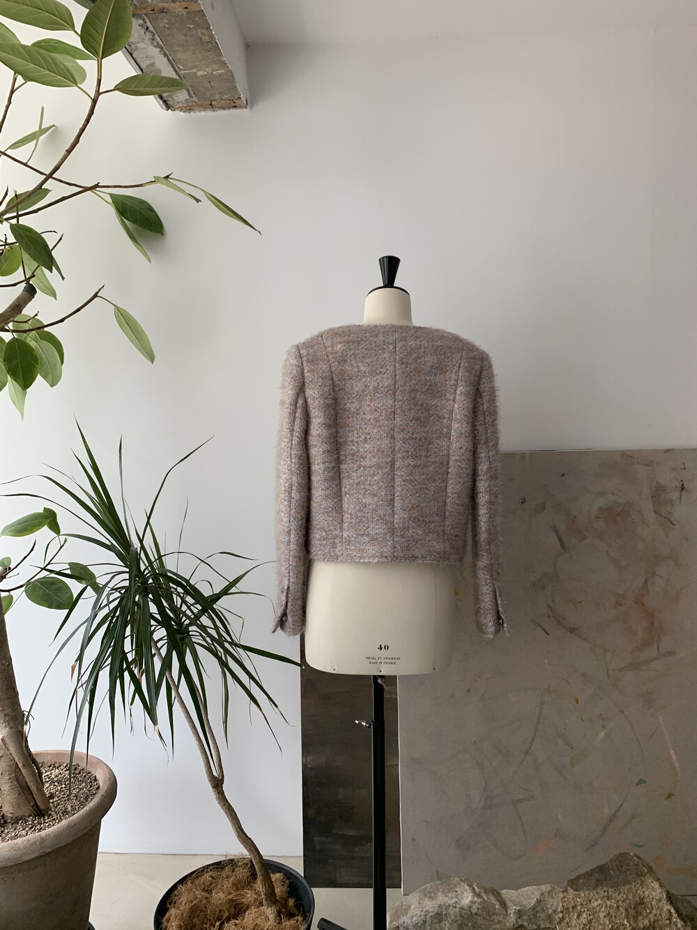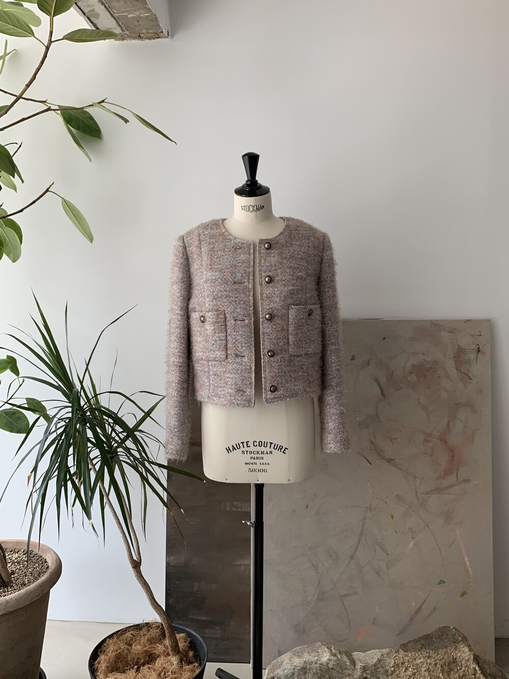 여름을 제외하고 모든 계절 착용 가능한 두께감의 트위드 원단으로 소재의 깊이감에서 느껴지는