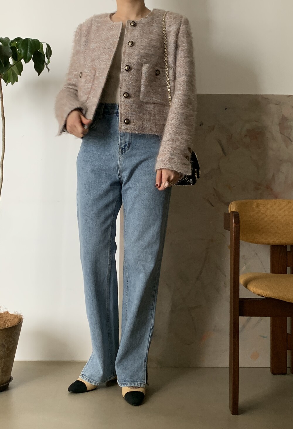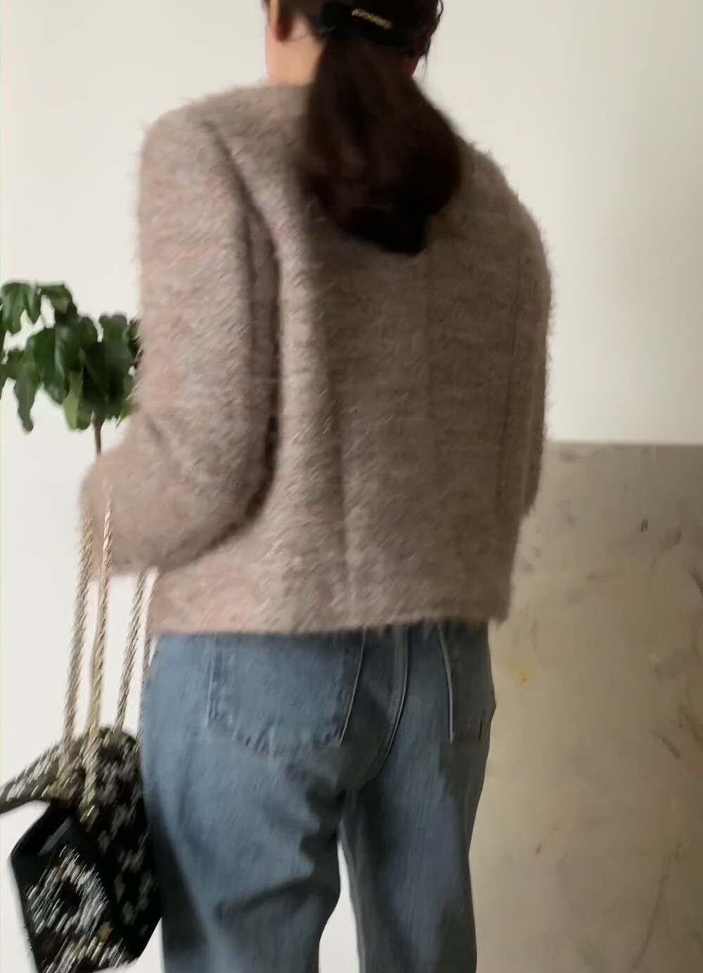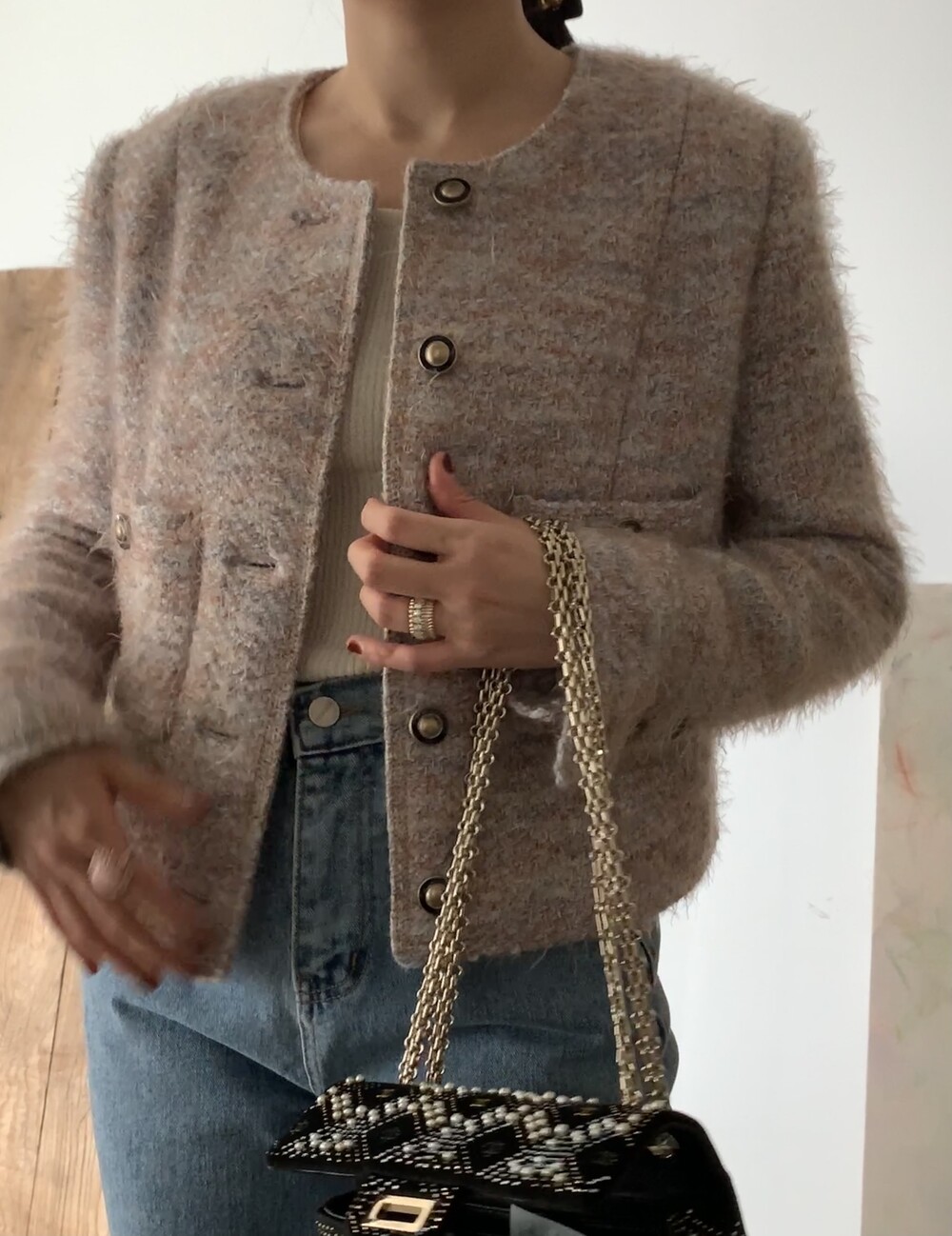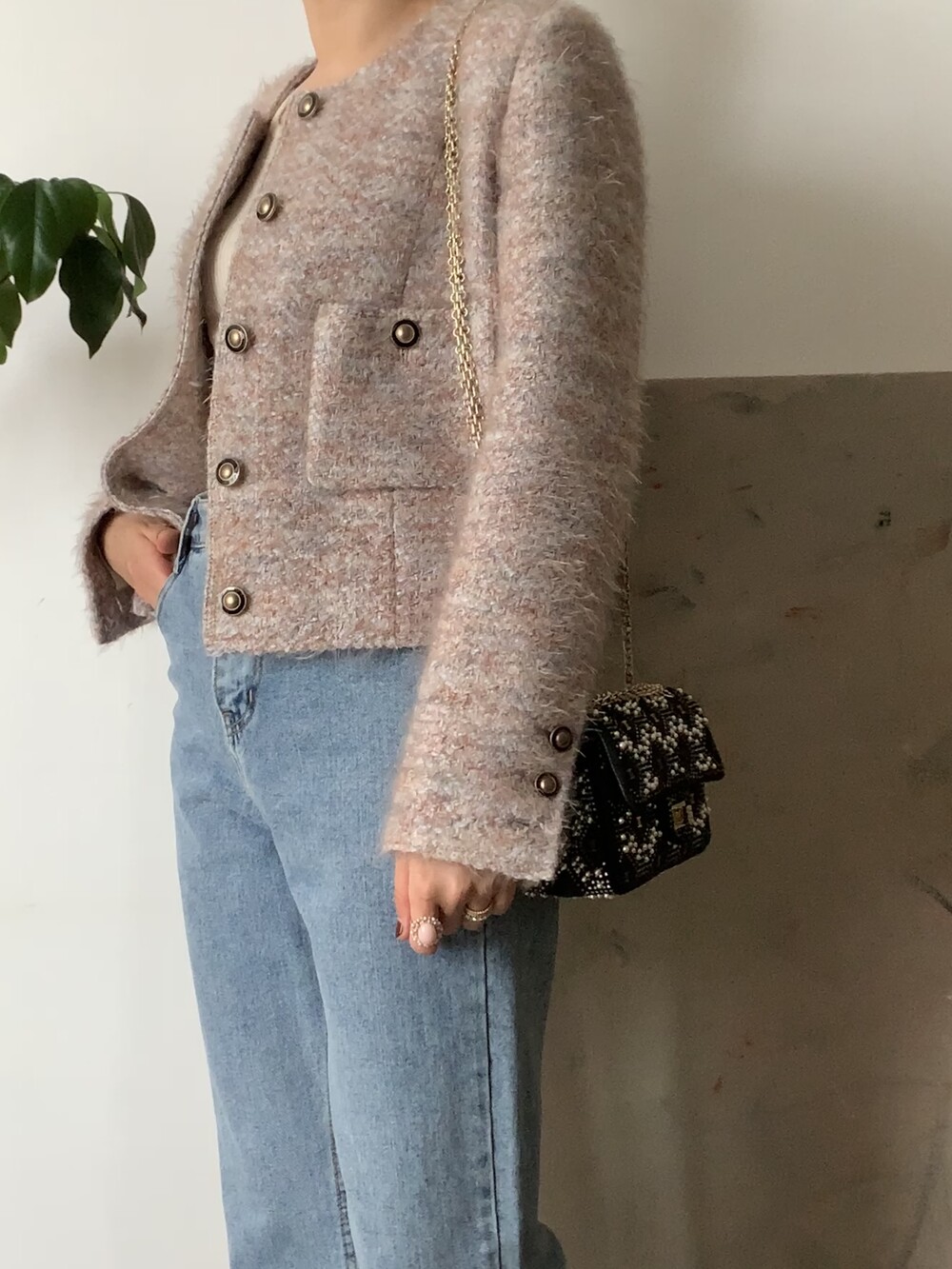 여름을 제외하고 모든 계절 착용 가능한 두께감의 트위드 원단으로 소재의 깊이감에서 느껴지는