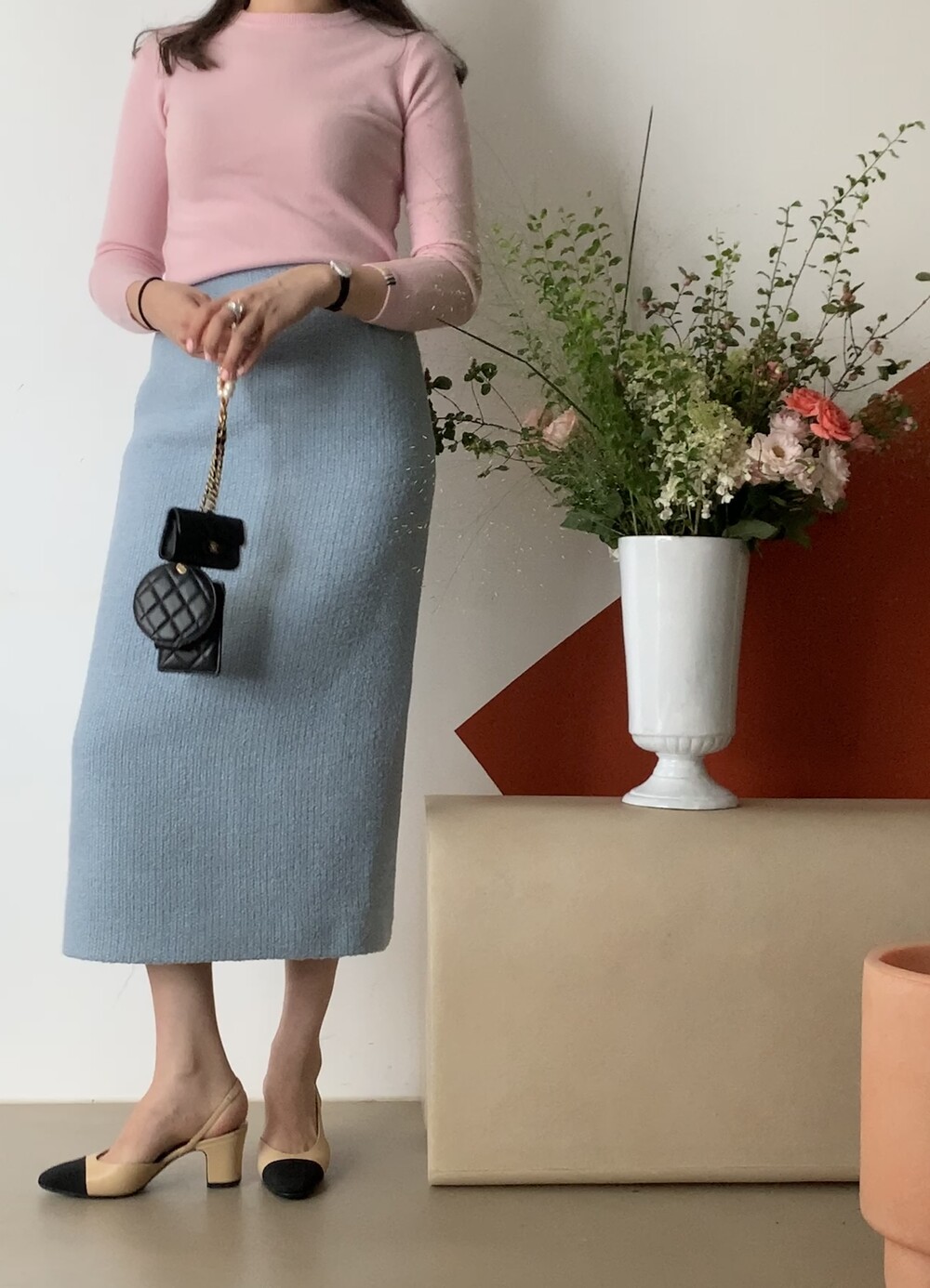 우아한 색상과 고급스러운 원단의 결합이 돋보이는 스커트입니다.