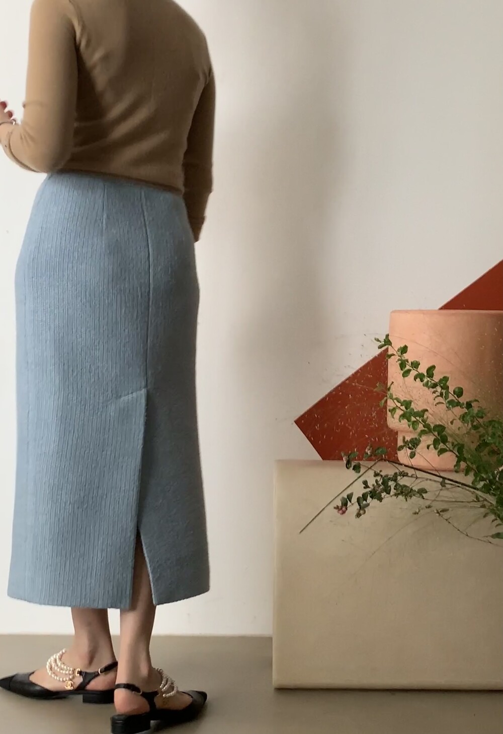(슬릿 기장은 38.5cm 입니다. 스커트 밑단 3cm 여유 분량이 있어 기장 수선 가능한 디자인입니다.)