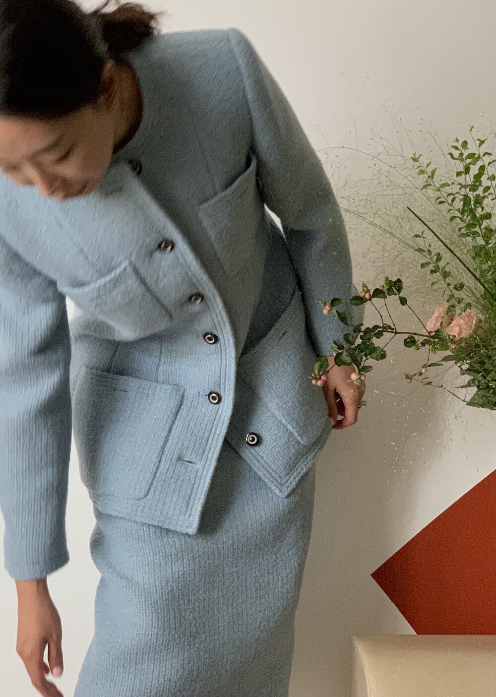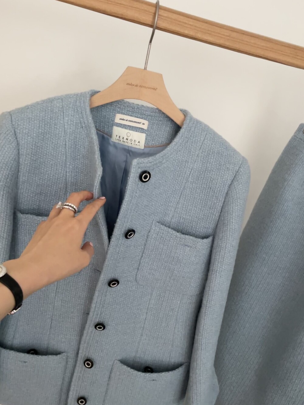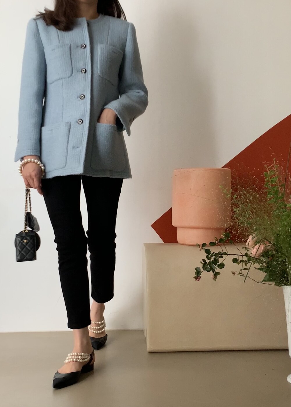어떤 순간에도 기분 좋게 어울리는 옷이 되리라고 생각합니다. 재킷은 셋업인 스커트와 팬츠, 청바지 등의