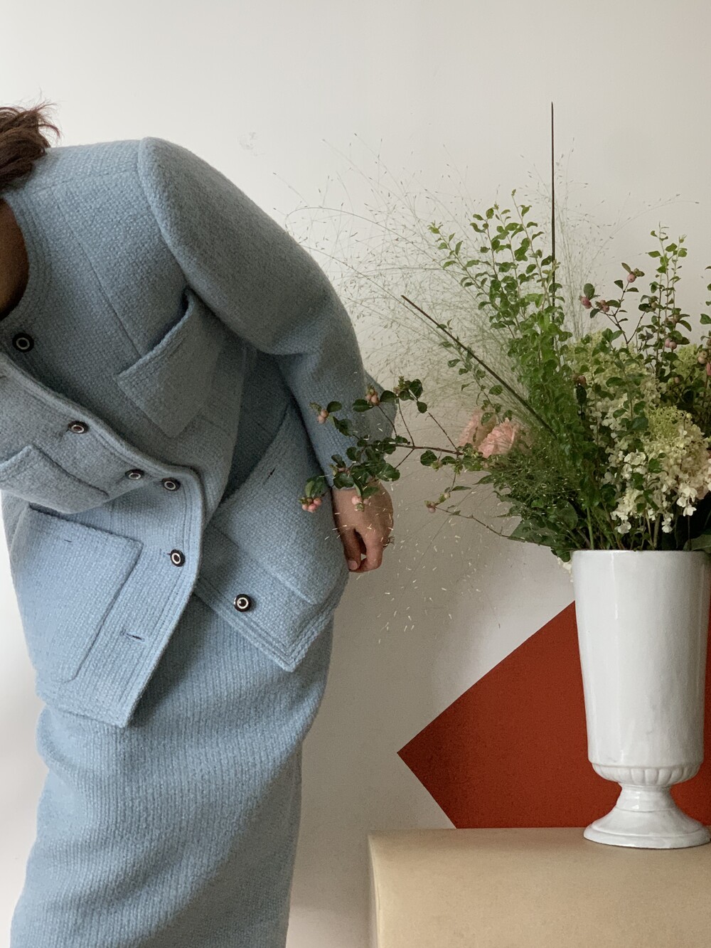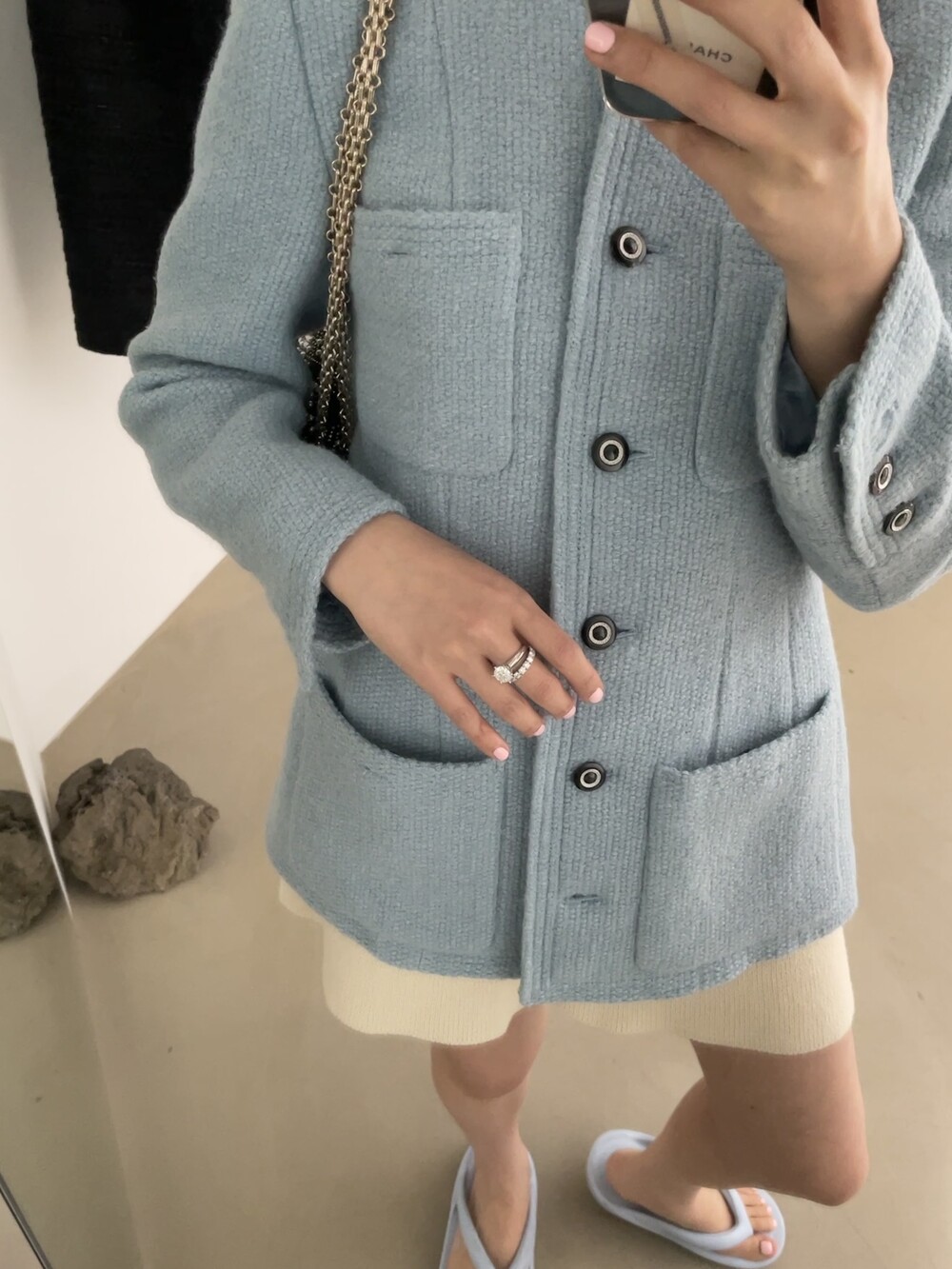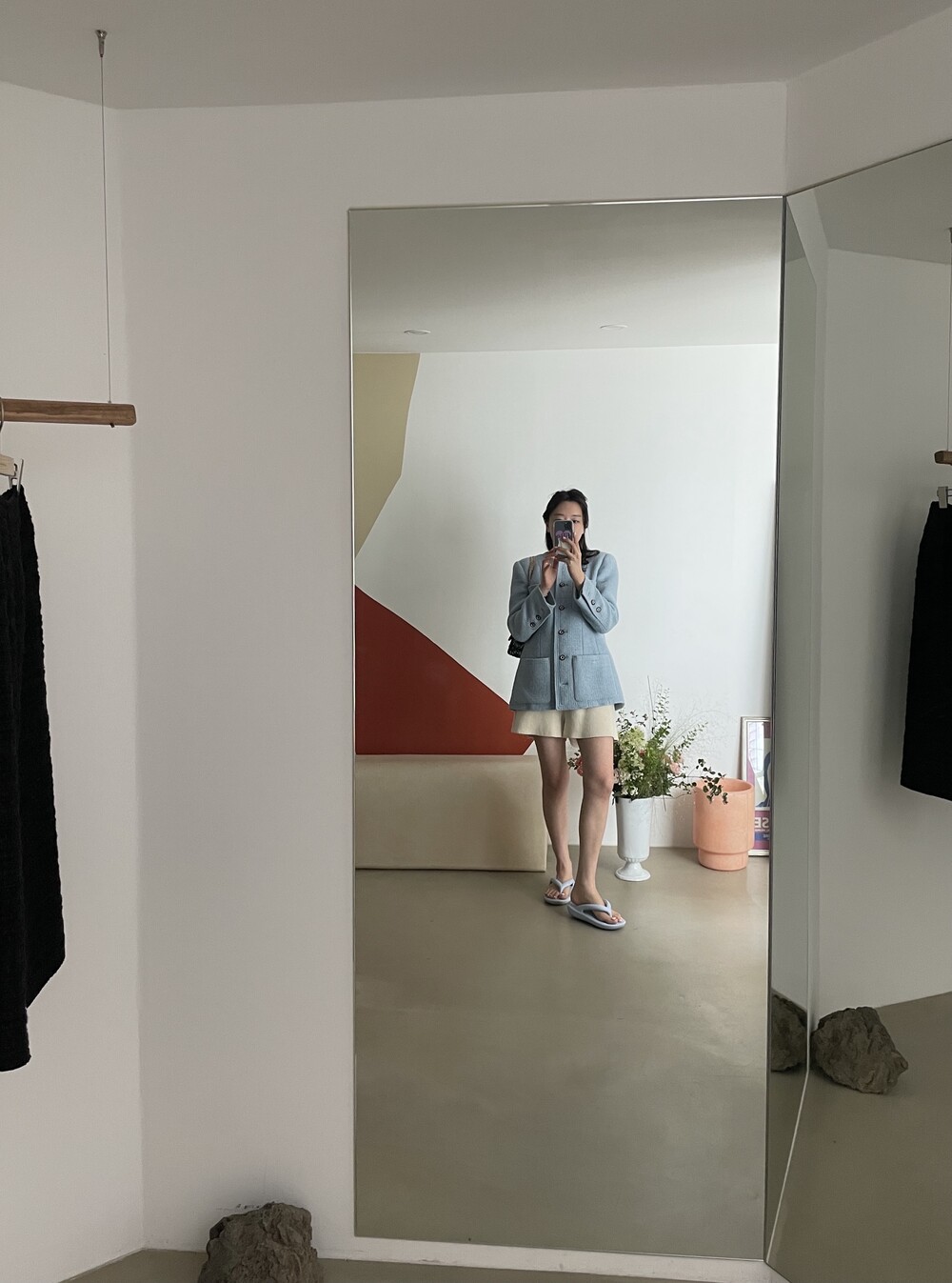 어떤 순간에도 기분 좋게 어울리는 옷이 되리라고 생각합니다. 재킷은 셋업인 스커트와 팬츠, 청바지 등의