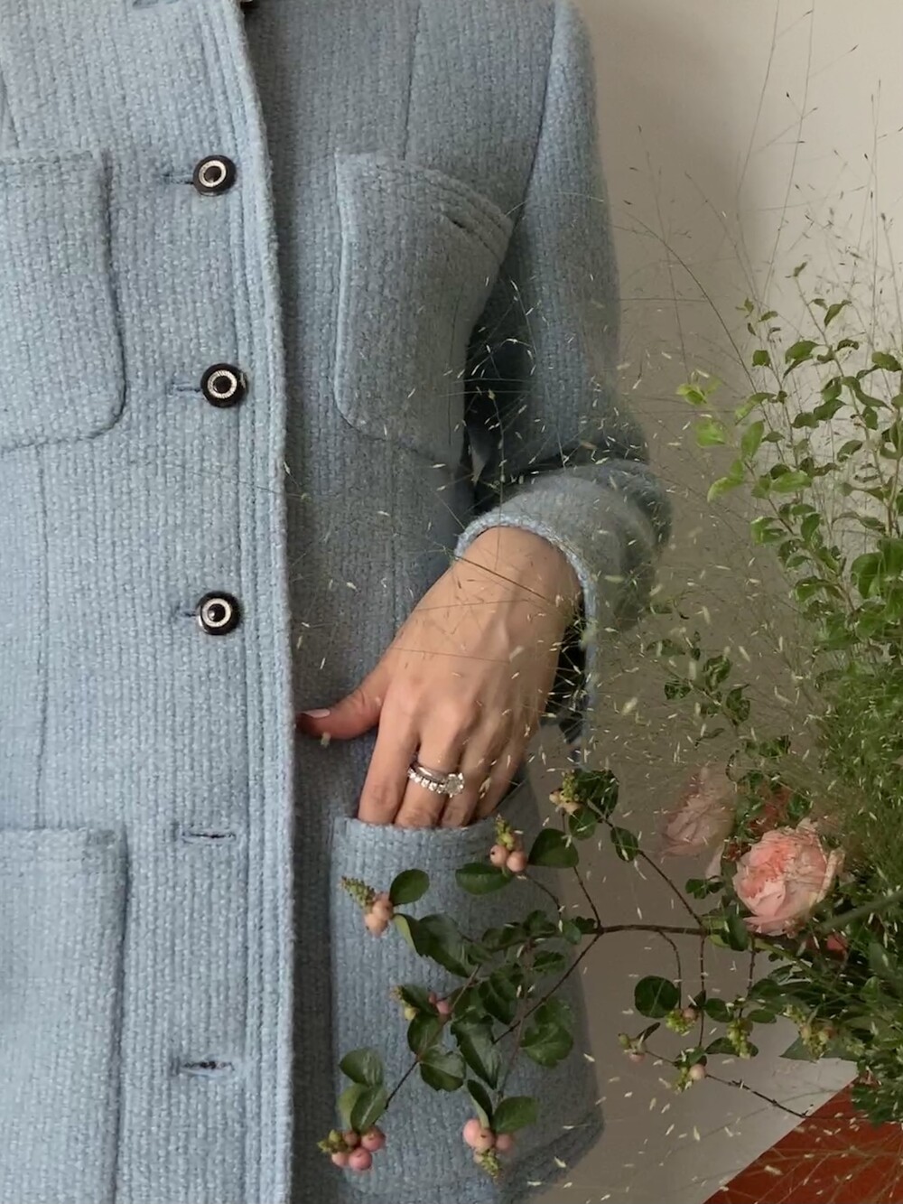 패턴으로 손목이 아주 살짝 드러나는 소매 기장감에서 여성스러운 곡선을 표현하고자 했습니다.