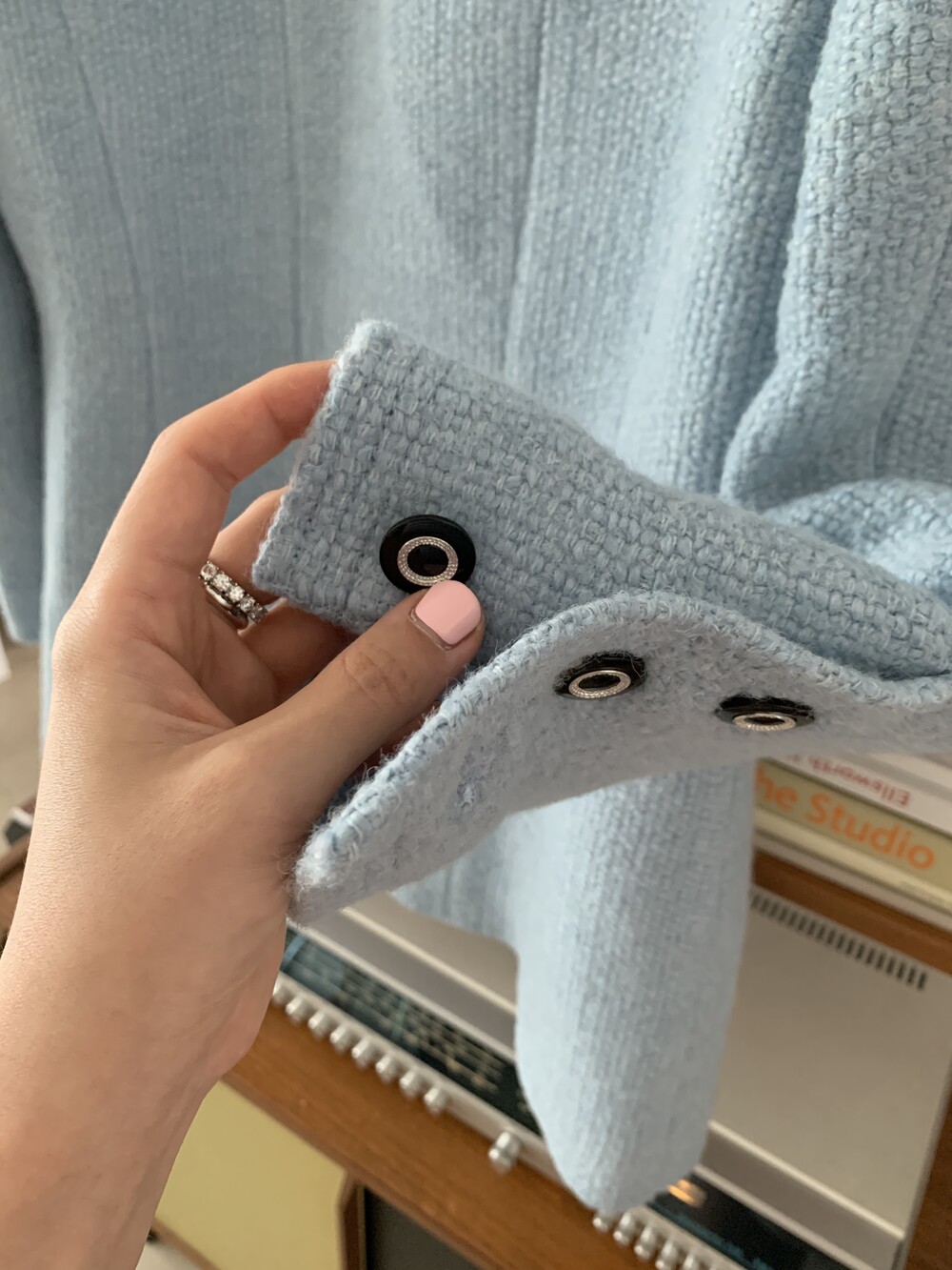 블랙 장식 버튼이 보석 같은 포인트 역할을 합니다. 오랫동안 고민해 셀렉 한 버튼으로 여밈 클로징과