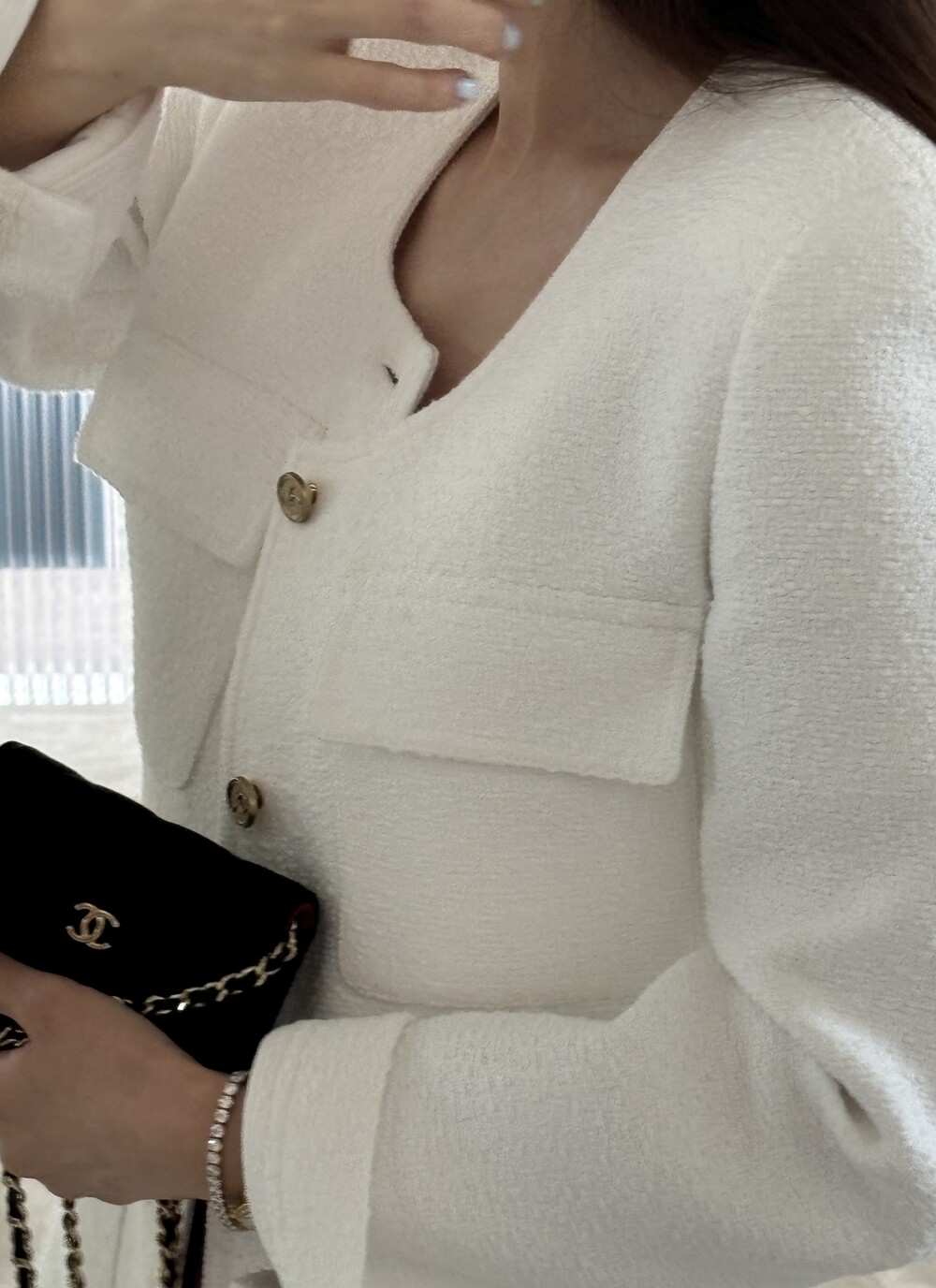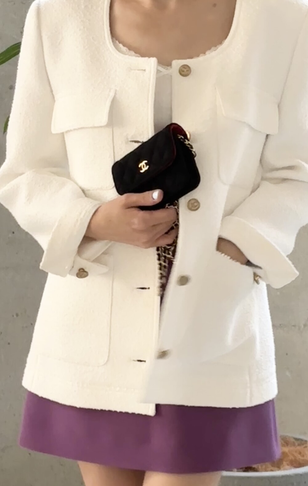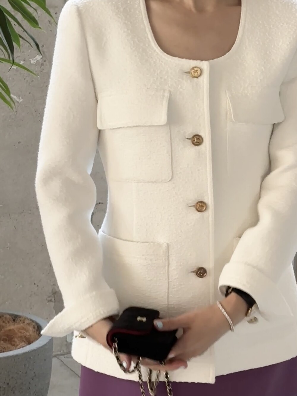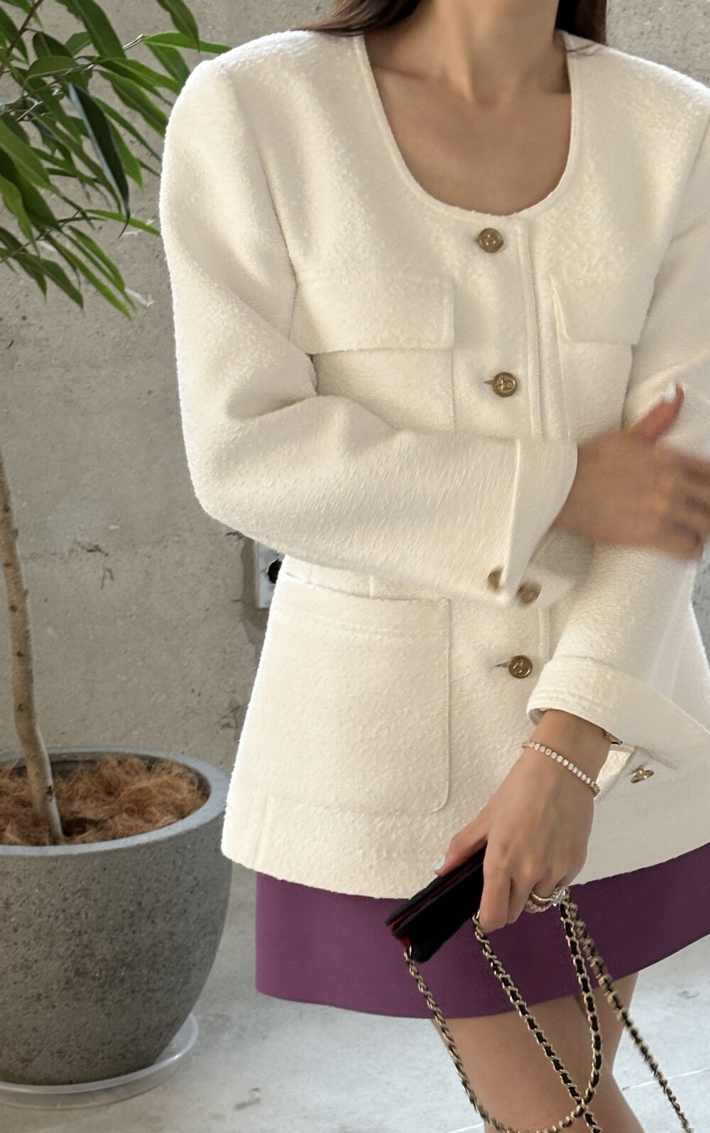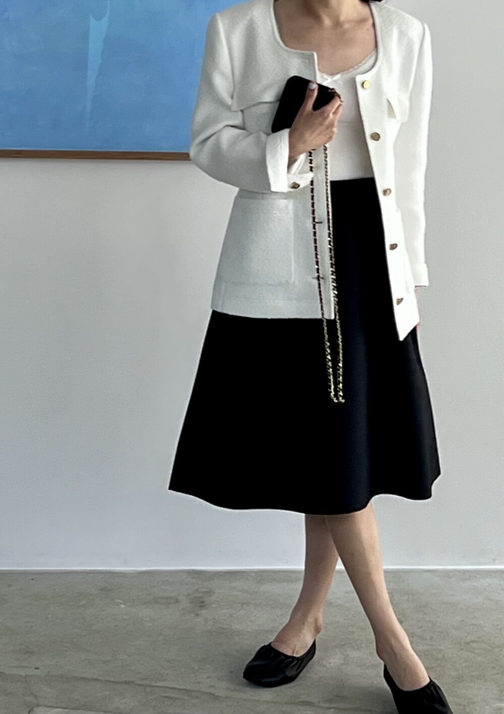 적당한 기장의 스커트, 슬랙스, 데님 등 모든 하의와 매치해도 클래식함과 위트를 잃지 않는 균형감의 자켓입니다.
