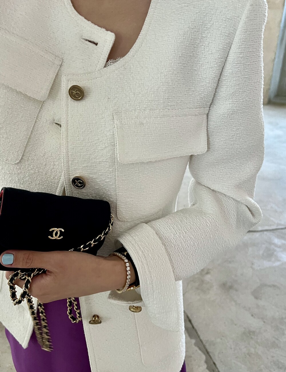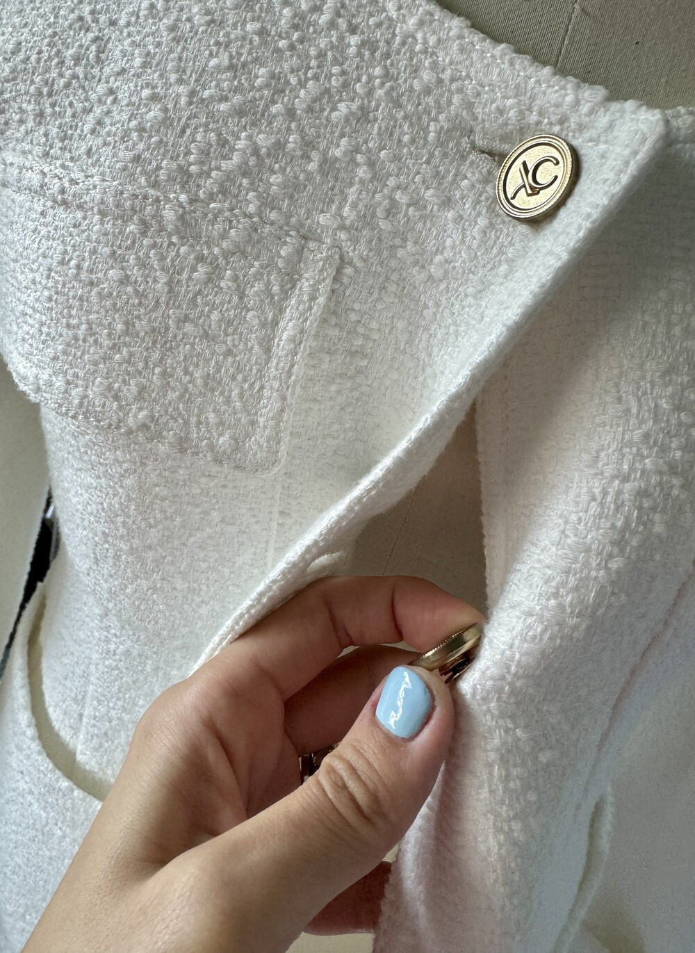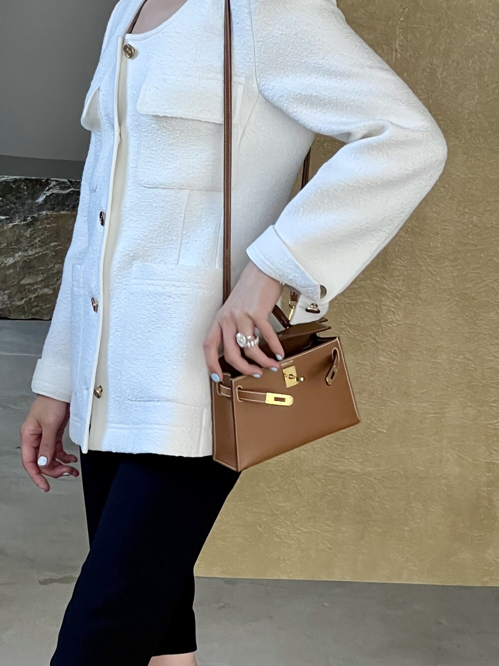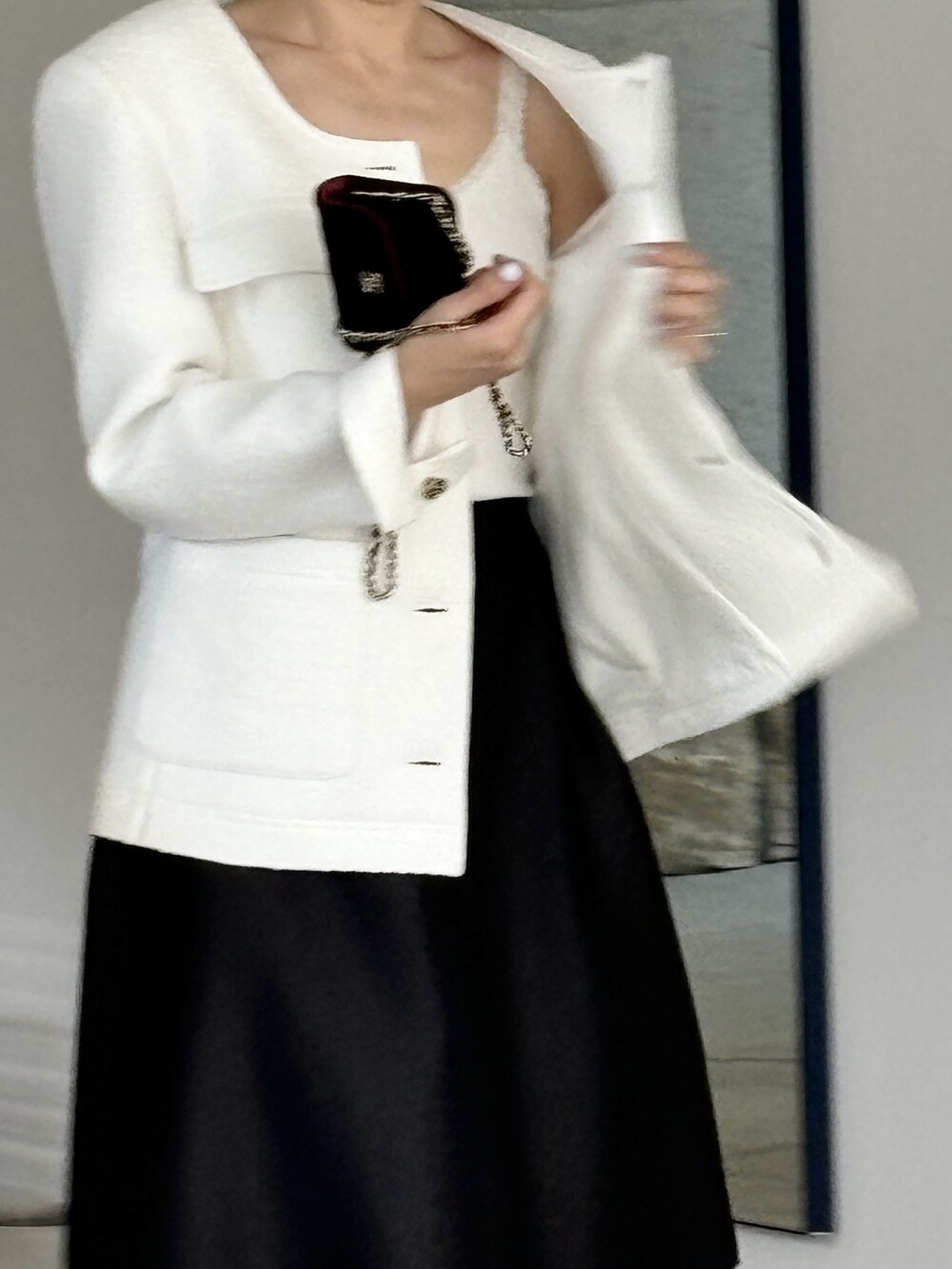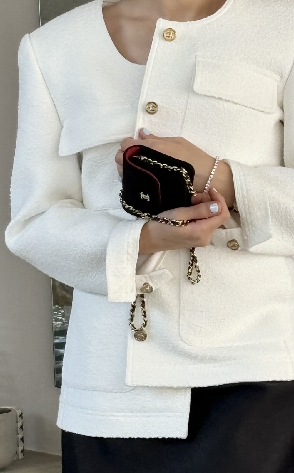 적당한 기장의 스커트, 슬랙스, 데님 등 모든 하의와 매치해도 클래식함과 위트를 잃지 않는 균형감의 자켓입니다.