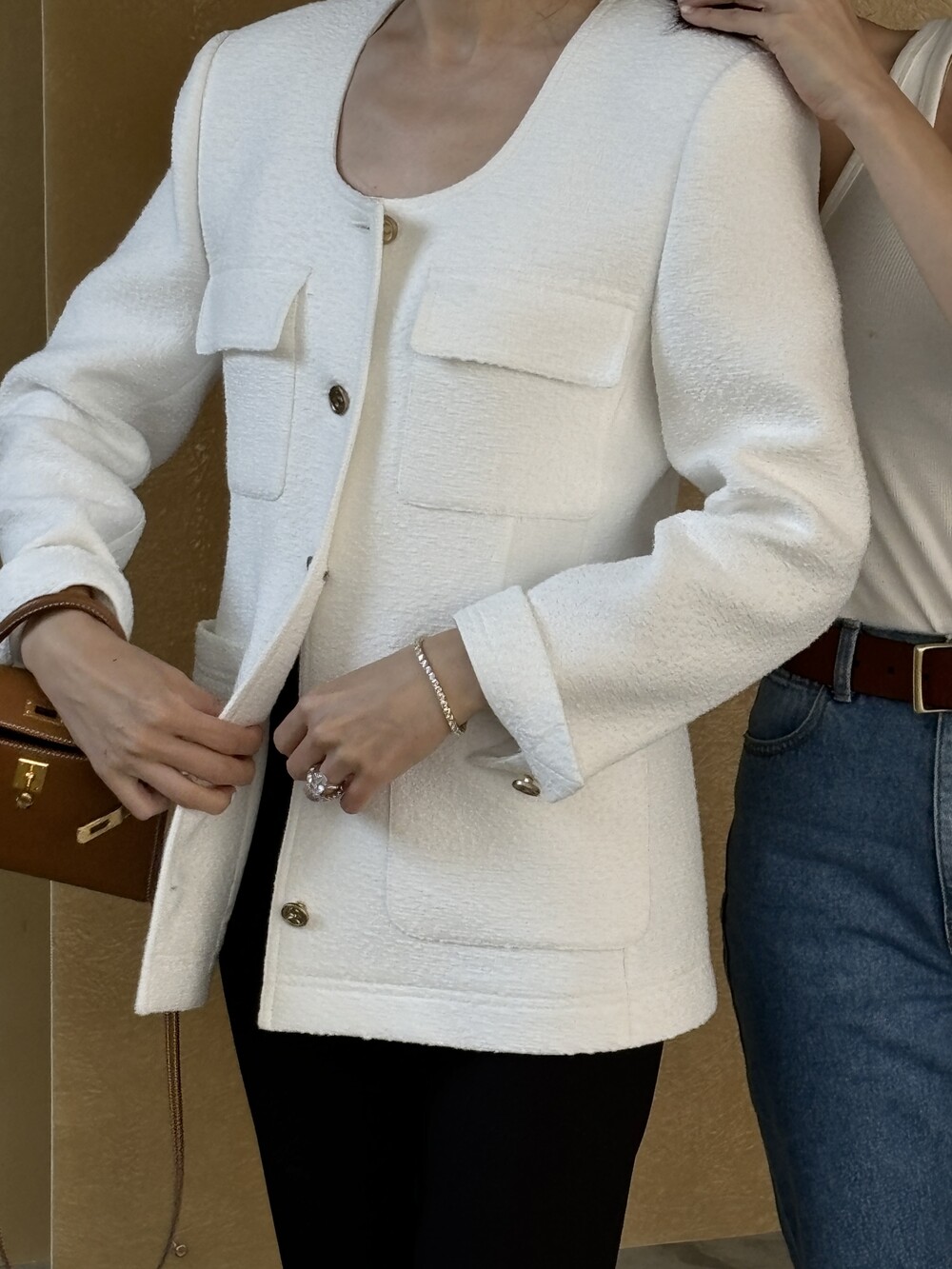 그에 어울리는 깨끗하고 클래식한 노카라 쟈켓입니다.