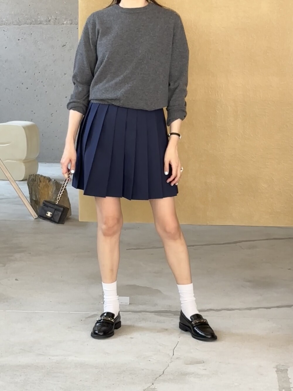 적당한 무게감의 울, 폴리 혼방 소재로 차분한 분위기의 굵은 주름 스커트입니다.