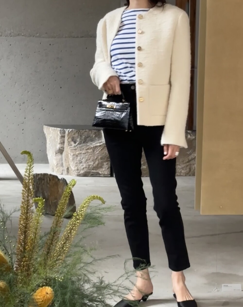 한남동 갤러리 쇼룸에 입고된 2024 Pre-fall 제품 - Opaline Tweed Jacket 입니다.