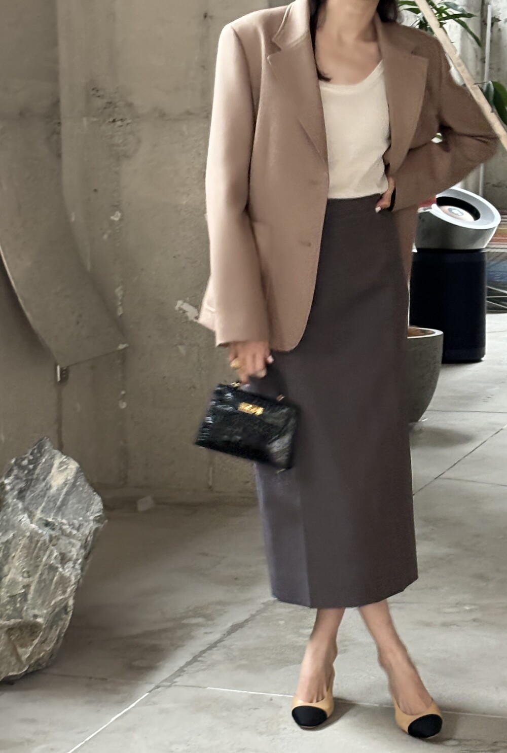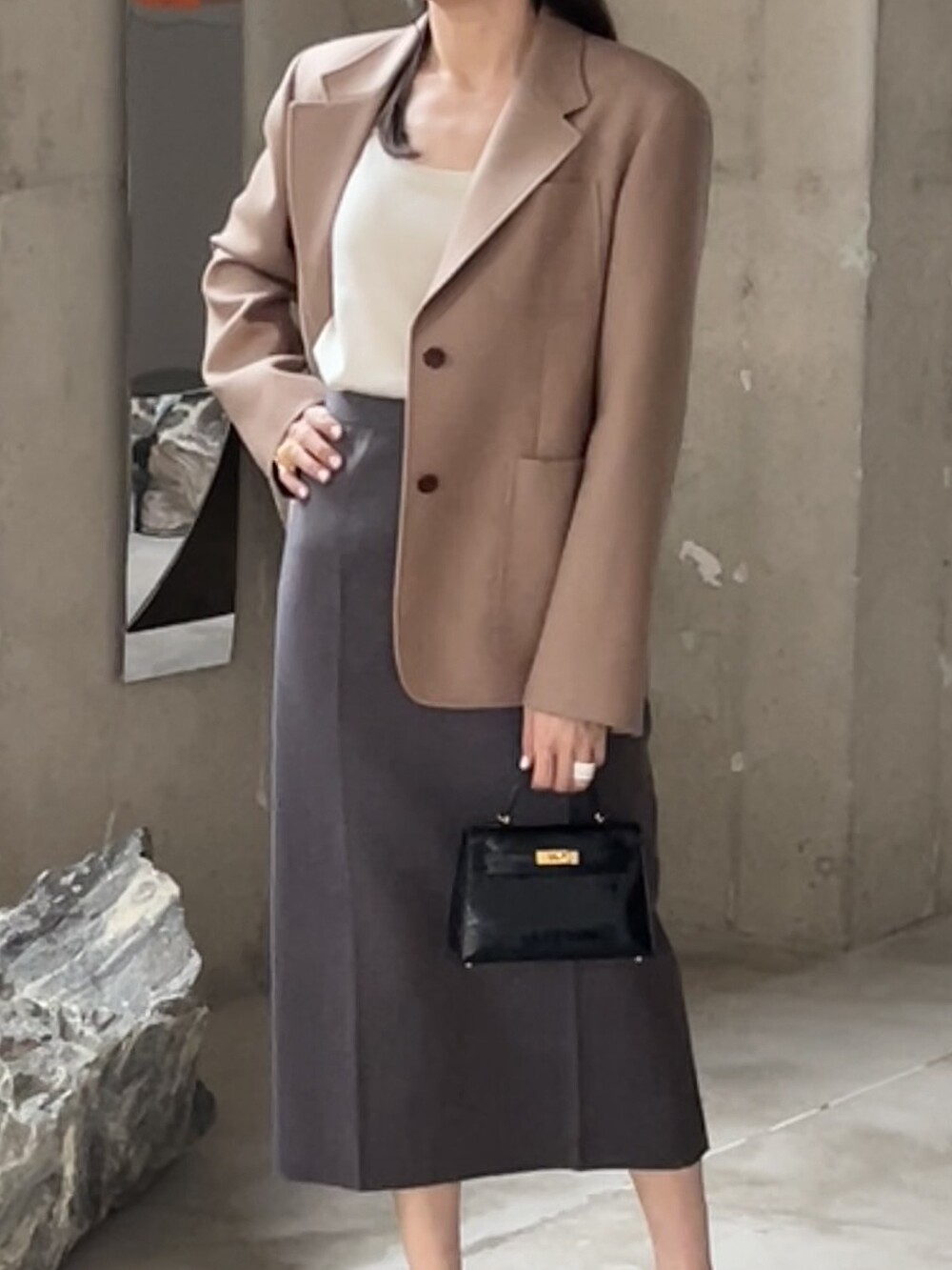 기존 진행하던 H 라인 스커트에서 차별화된 구조적인 앞모습 실루엣을 위해