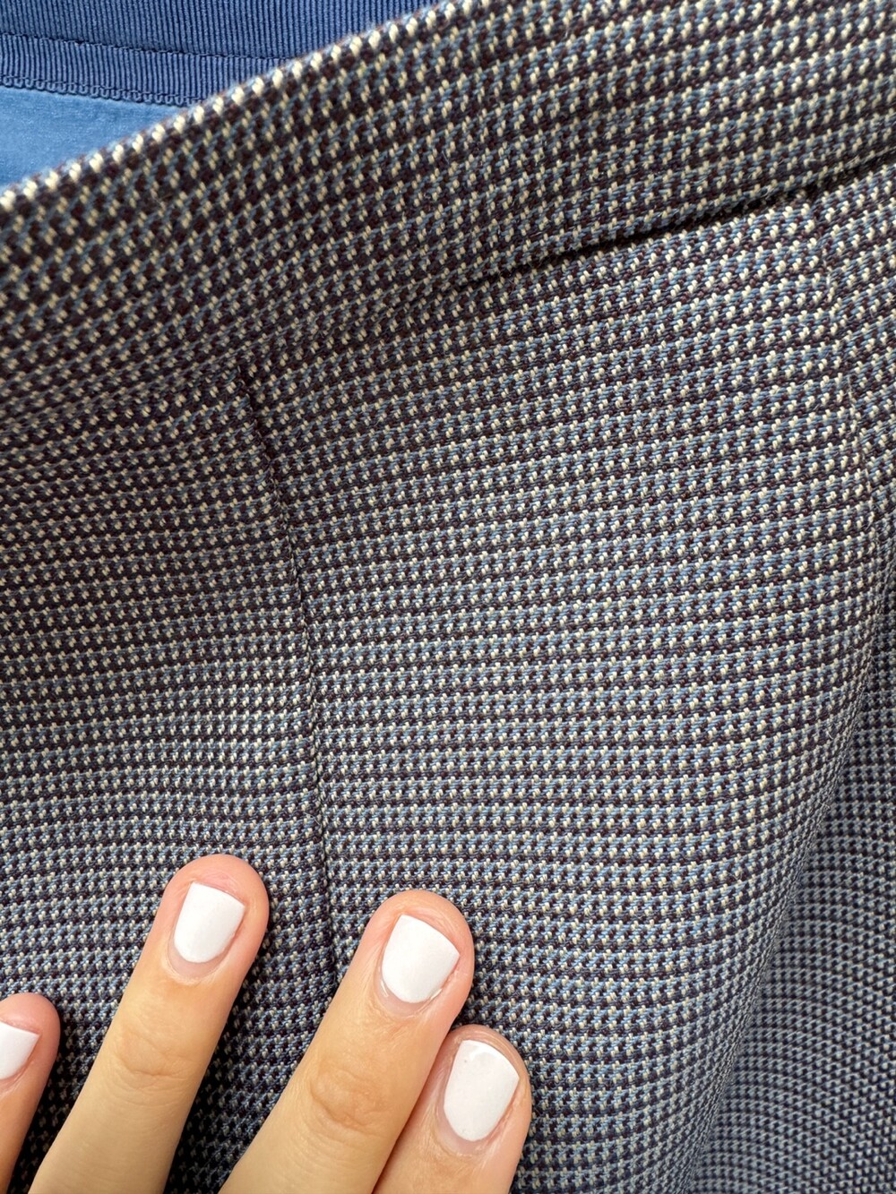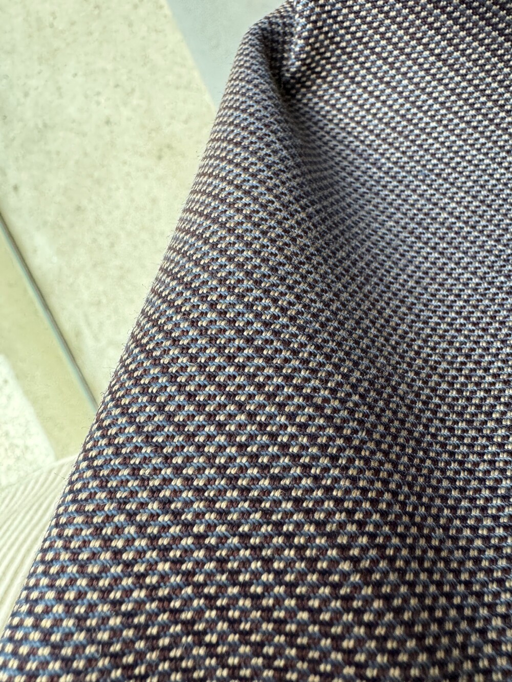 네이비 컬러 원사와 브라운 컬러 원사의 조화로운 체크 패턴 컬러감이 우아함과 동시에 세련된 무드를 선사합니다.