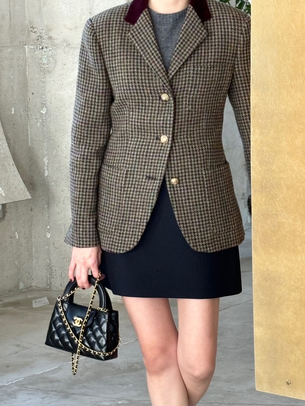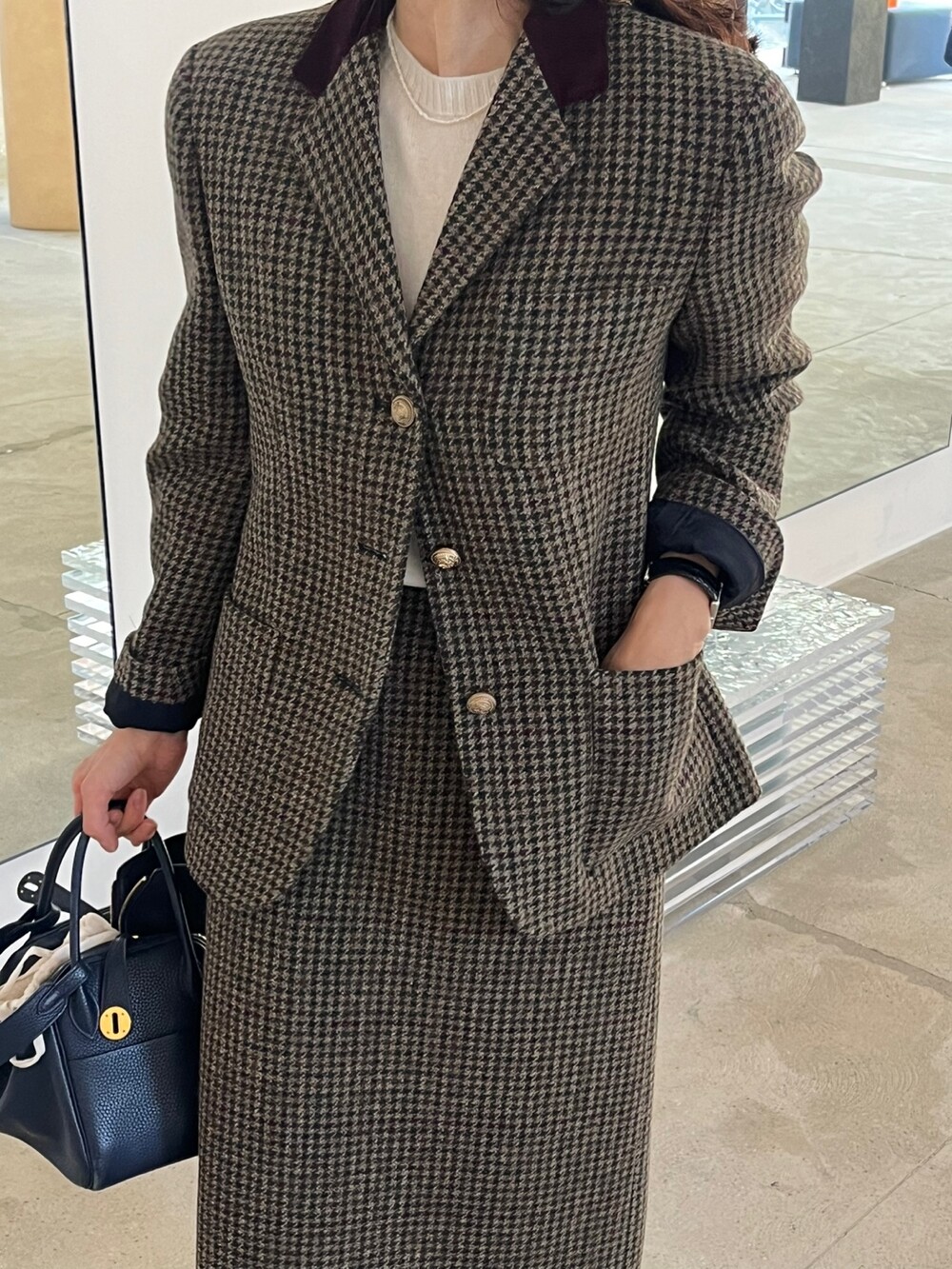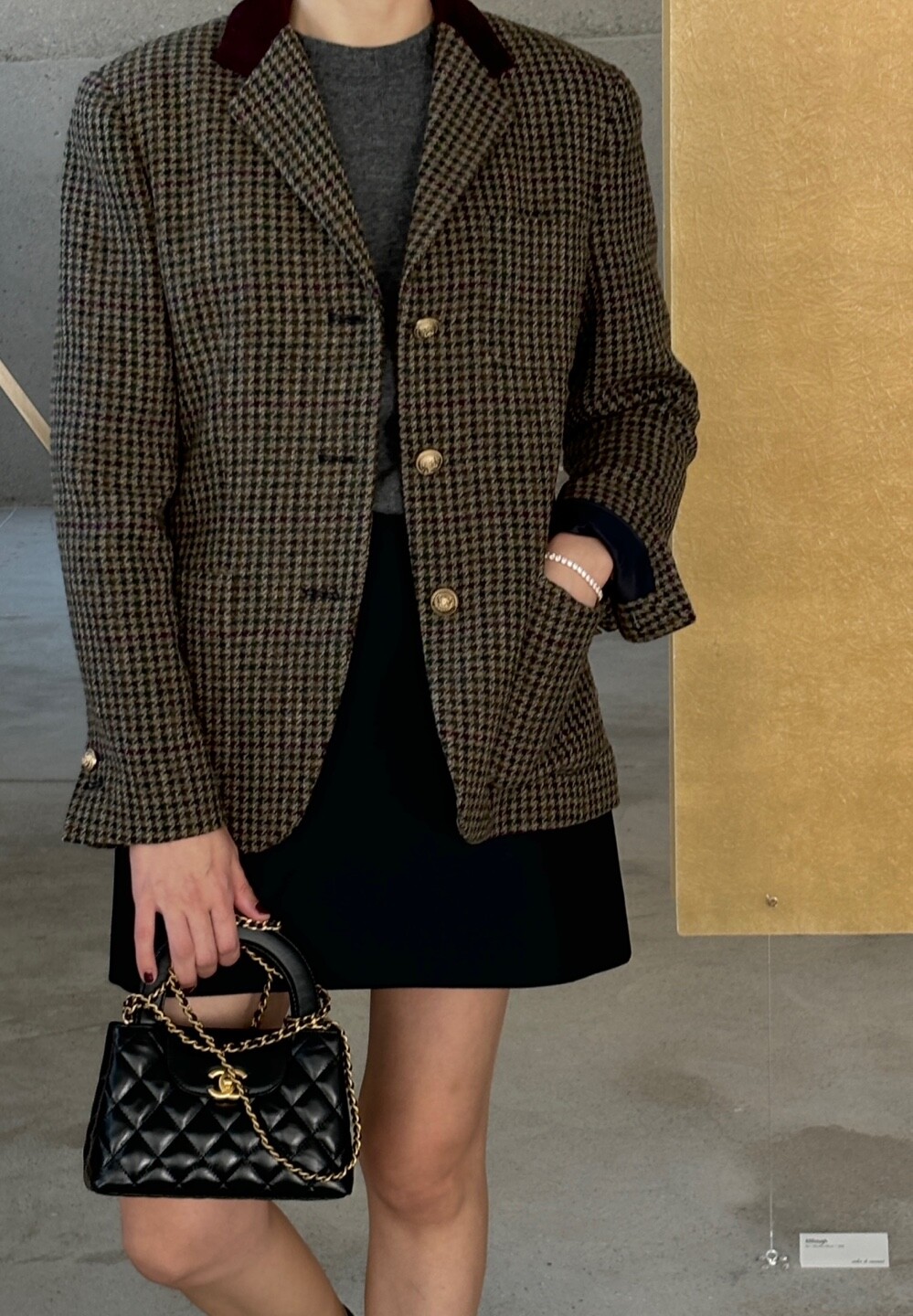 체크 패턴 컬러들의 조합이 클래식한 아름다움을 선사하는 Brunelle Jacket 셋업입니다.