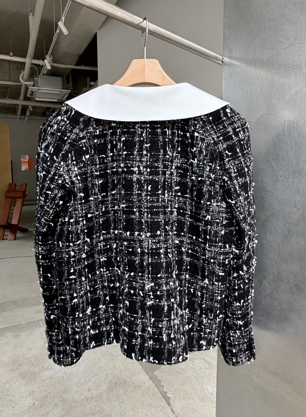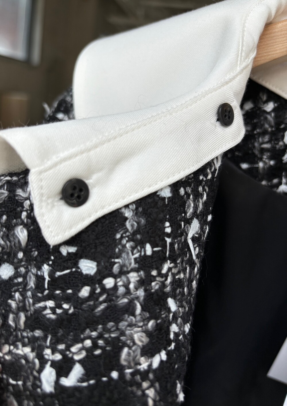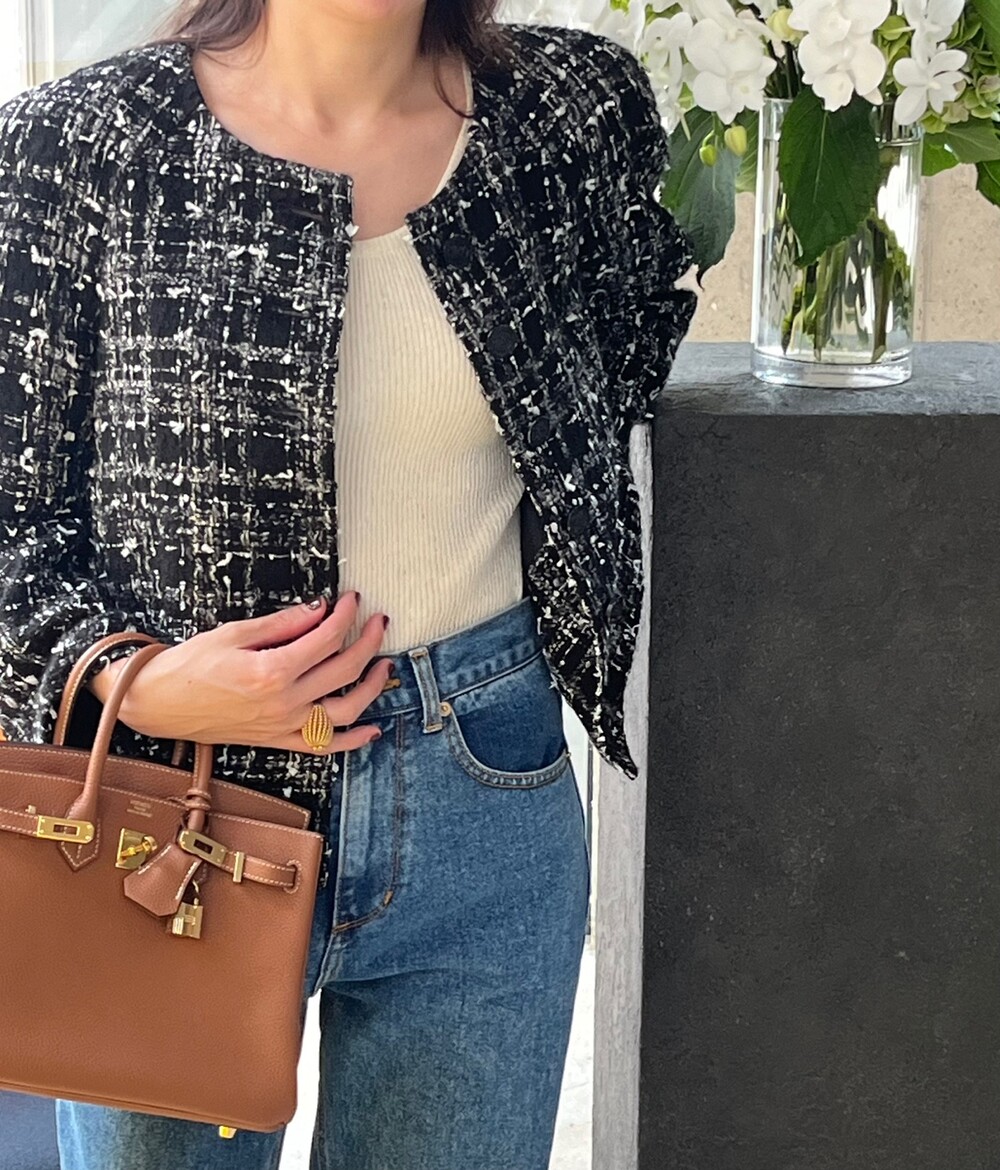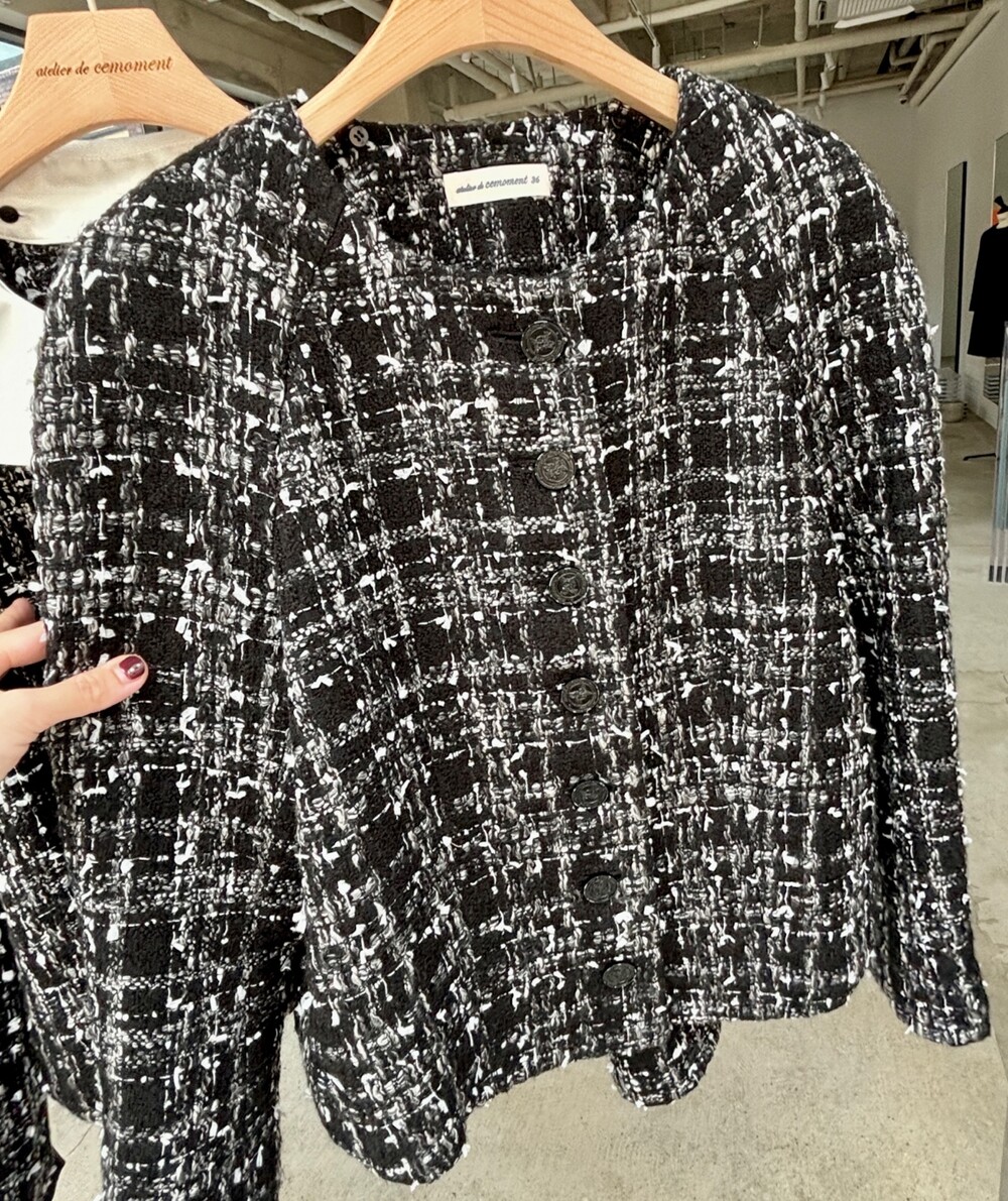 블랙 앤 화이트 트위드 패브릭의 Made in Japan 원단으로