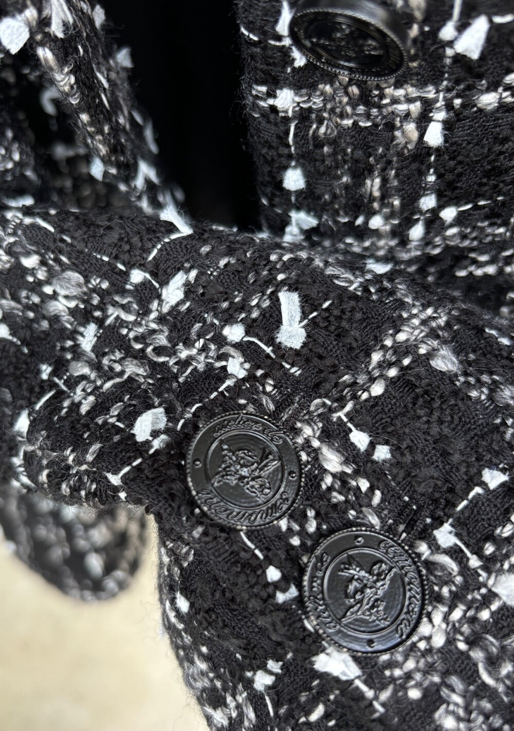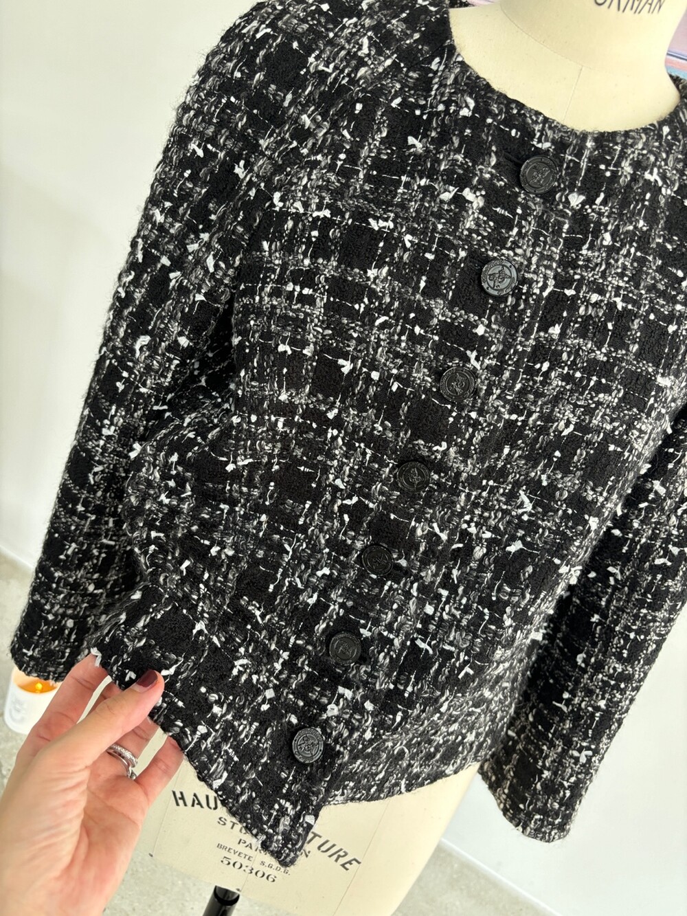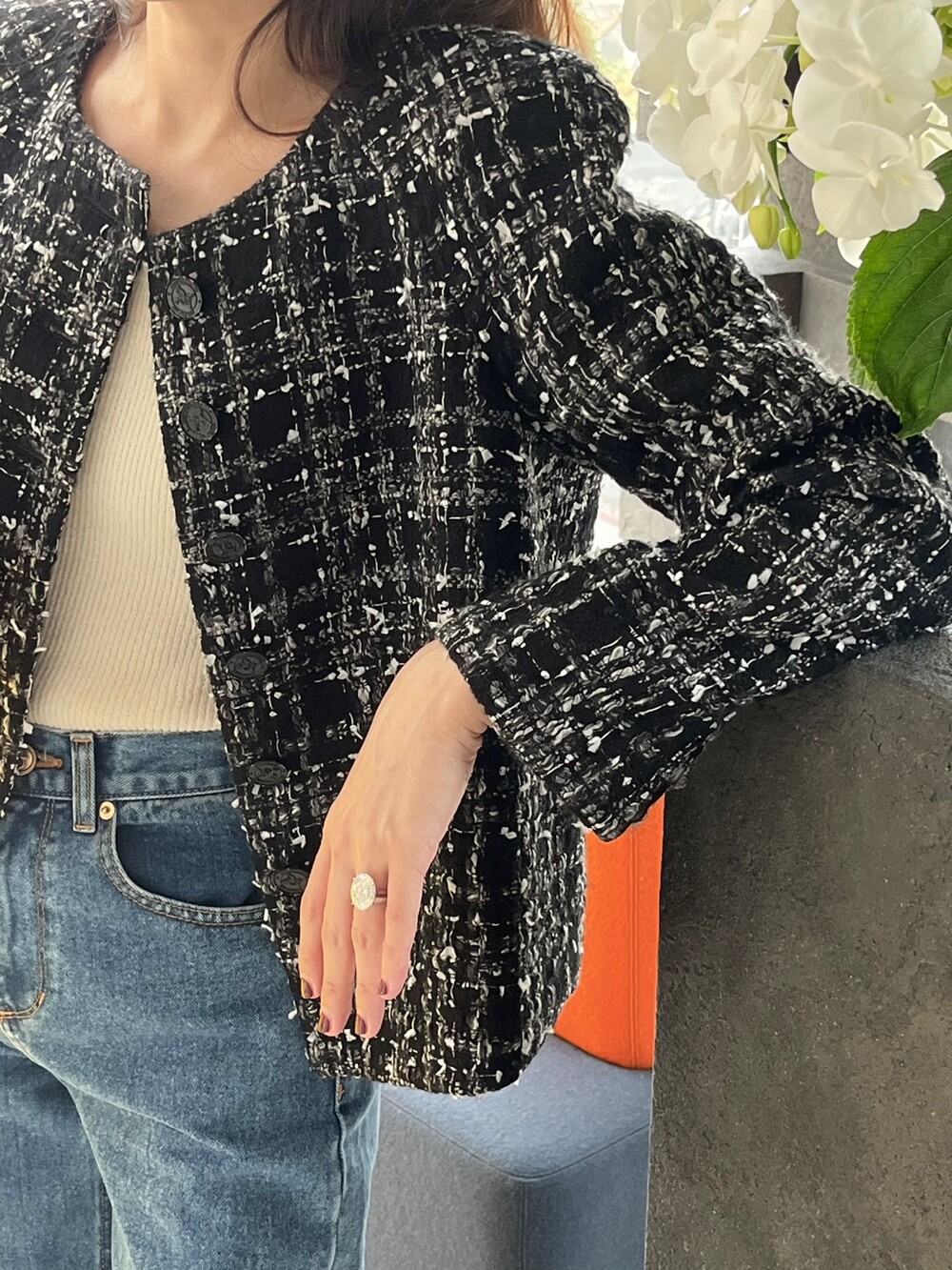 블랙 앤 화이트 트위드 패브릭의 Made in Japan 원단으로