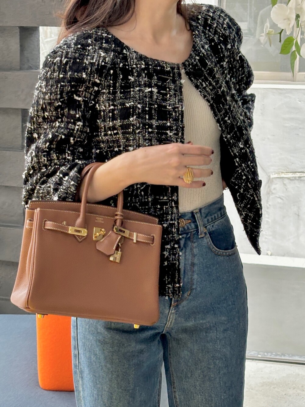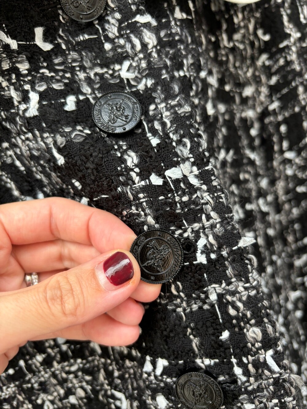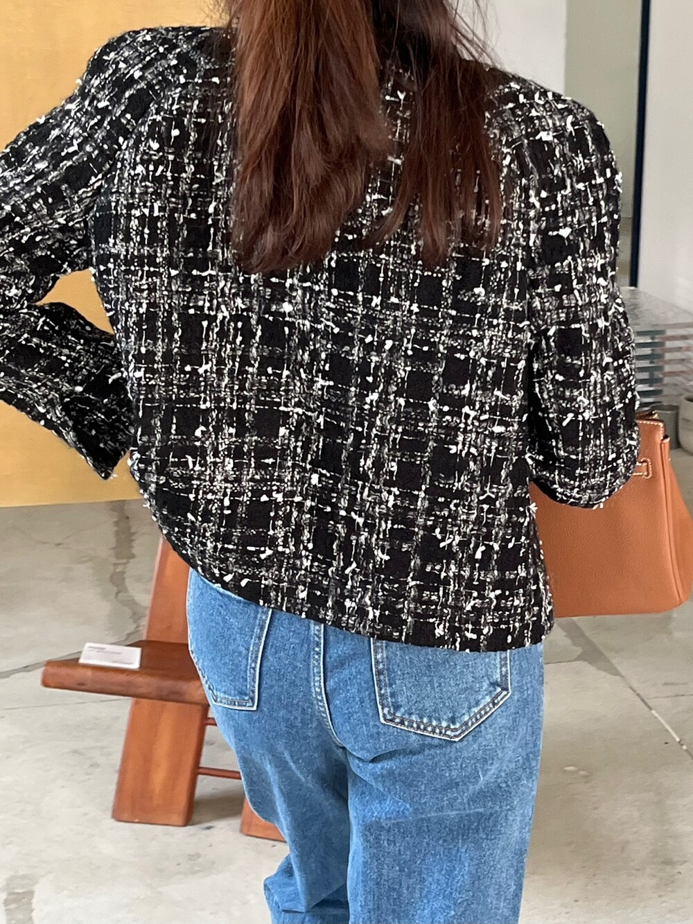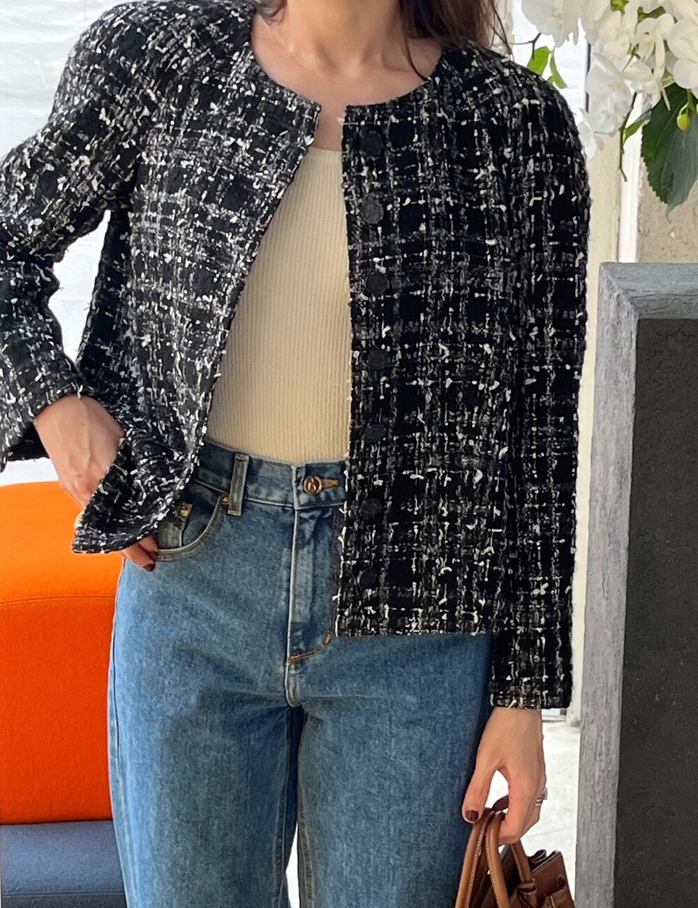 블랙 앤 화이트 트위드 패브릭의 Made in Japan 원단으로