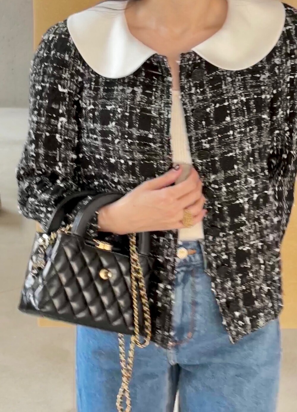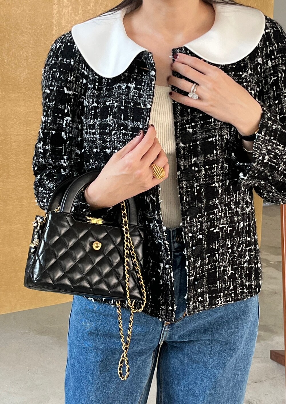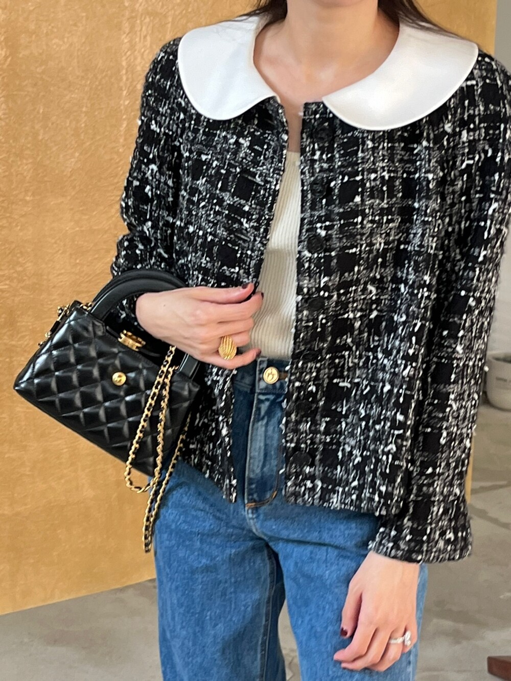 카라와 함께 스타일링하시면 페미닌하면서도 격식 있는 스타일로
