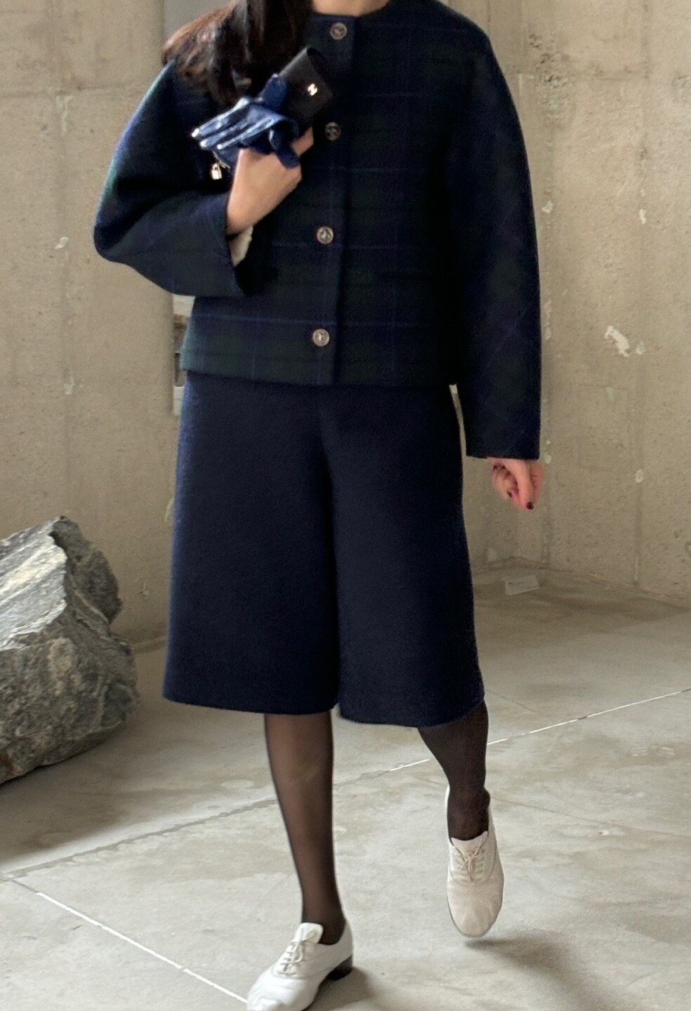 적당한 기장의 스커트, 데님 등 모든 하의와 매치해도 클래식함과 위트를 잃지 않는