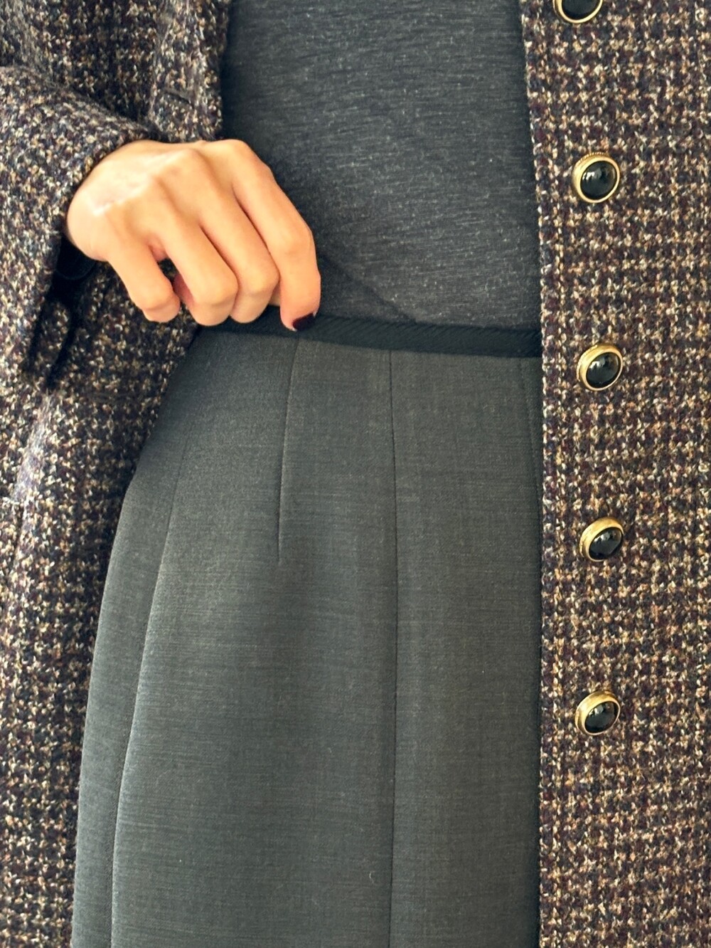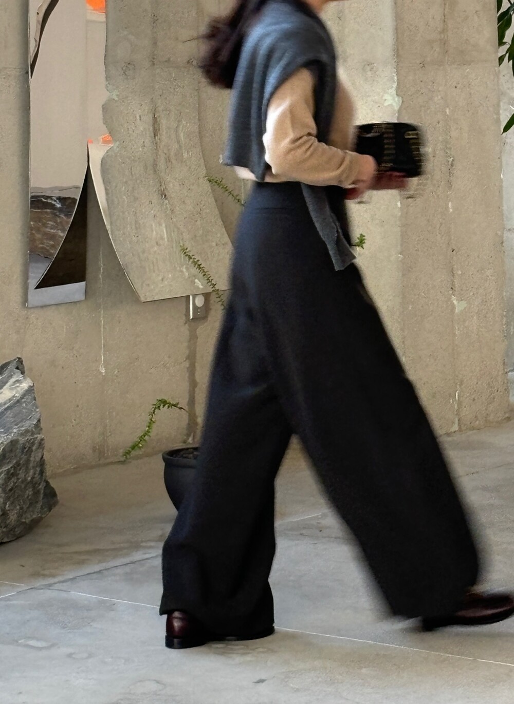 깊이 있으면서도 차분하면서도 우아한 딥 그레이 컬러의 팬츠입니다.