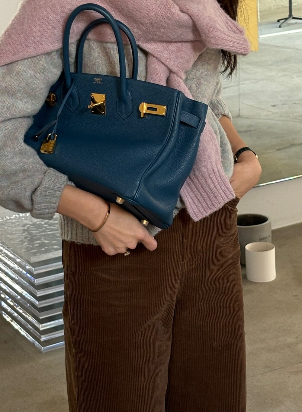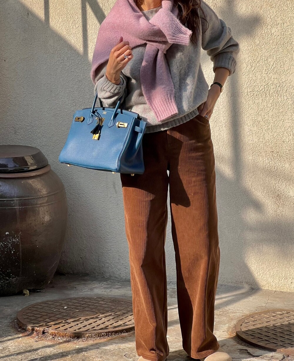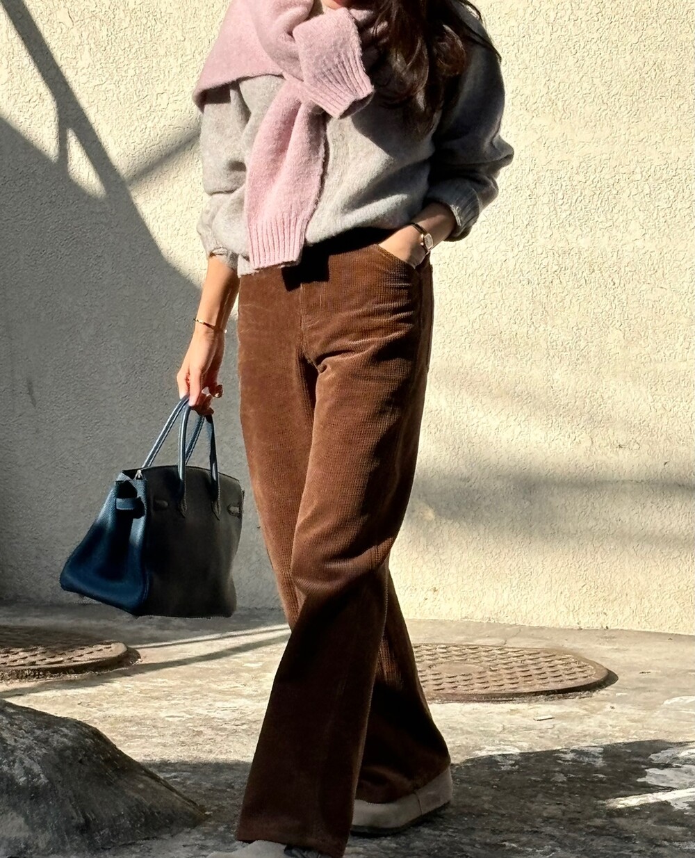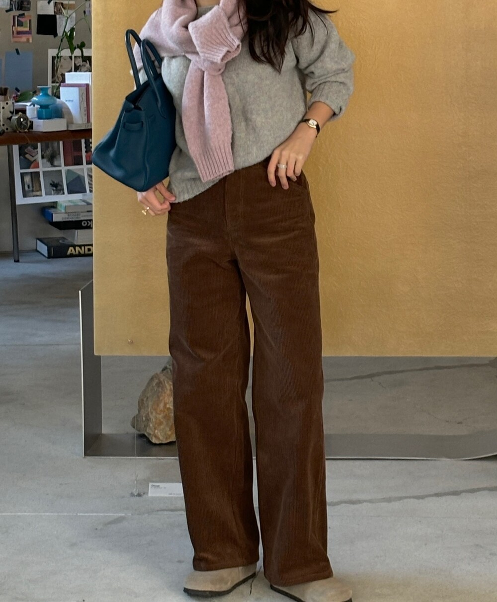 한남동 갤러리 쇼룸에 입고된 Juno Corduroy Pants 코듀로이 팬츠 [Toffee] [Maritime Blue] 입니다.