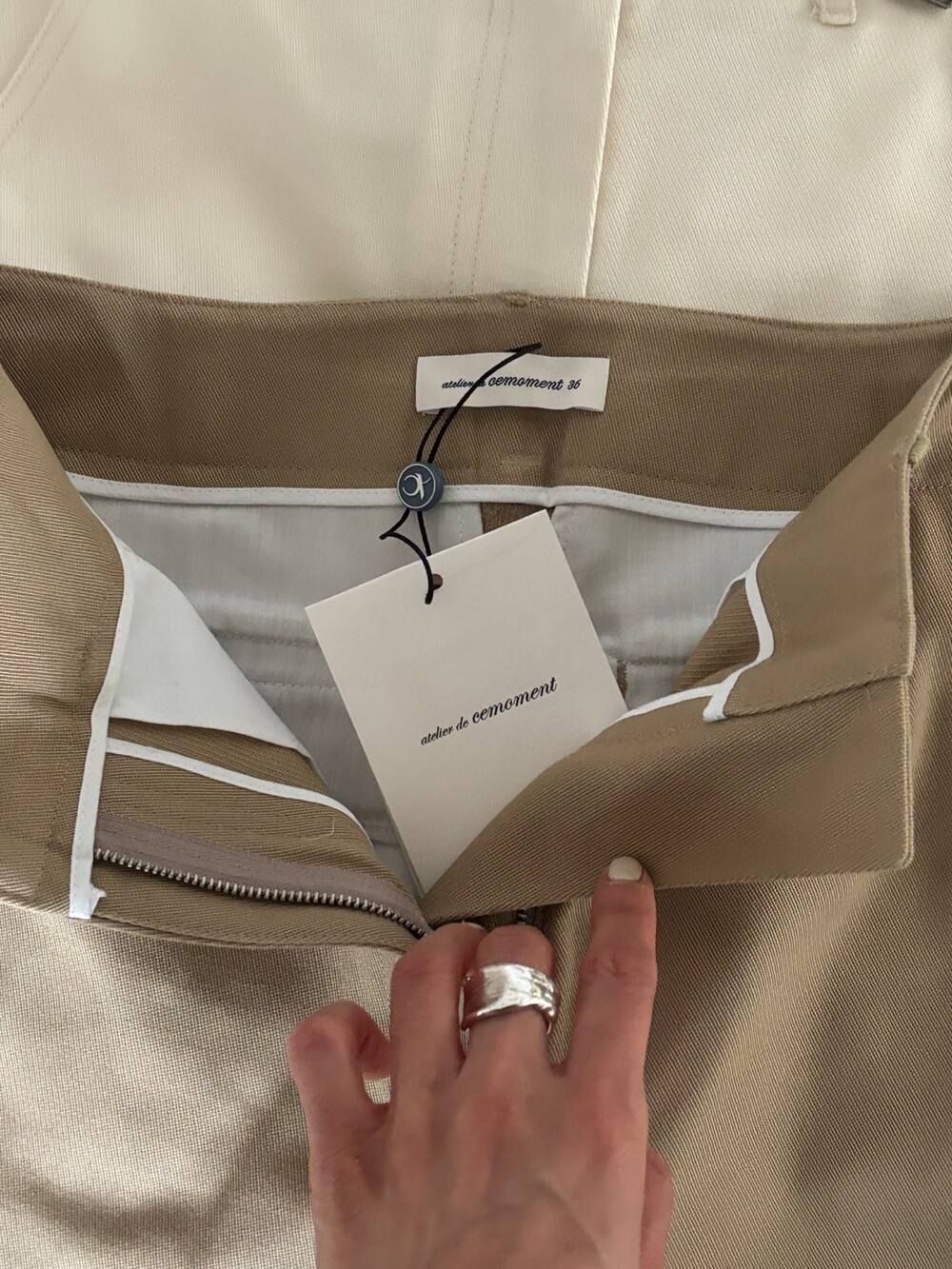 아뜰리에 드 쎄모먼 로고가 각인된 제 원단 컬러로 코팅된 버튼 또한 팬츠에 포인트를 줍니다.