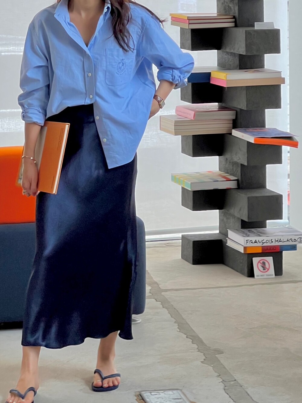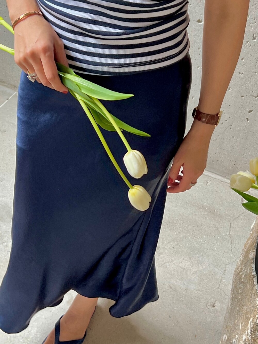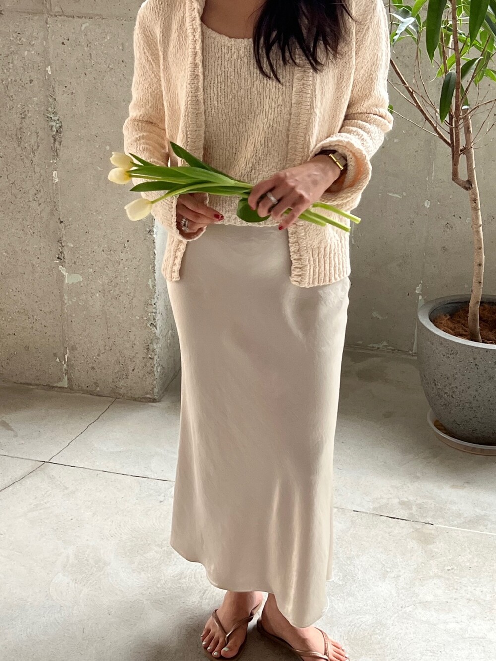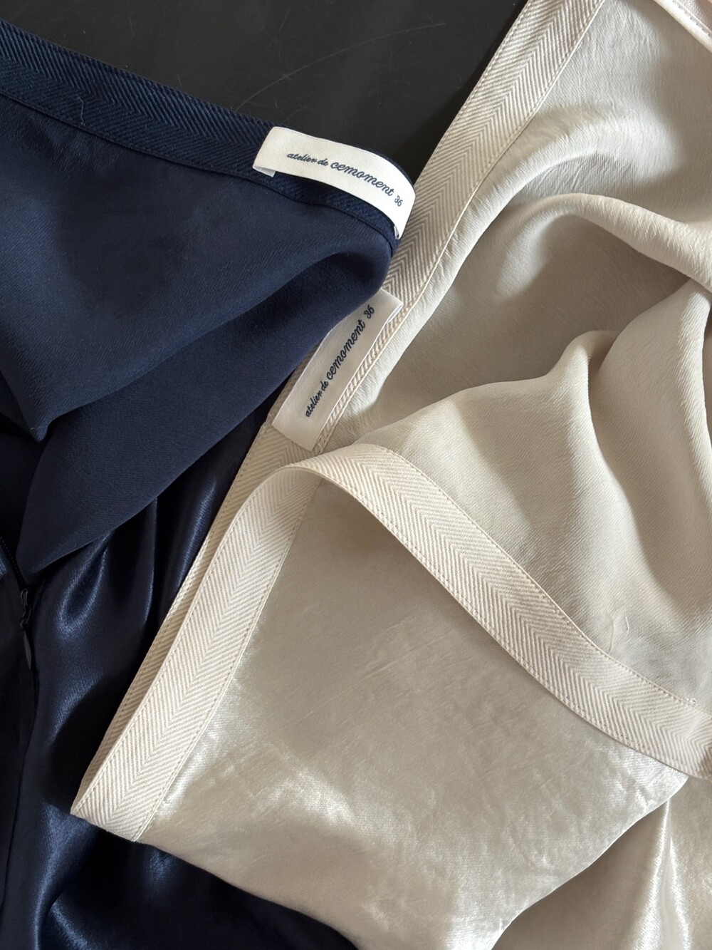 아뜰리에 드 쎄모먼에서 처음으로 선보이는 에센셜 아이템, 새틴 스커트를 소개합니다.