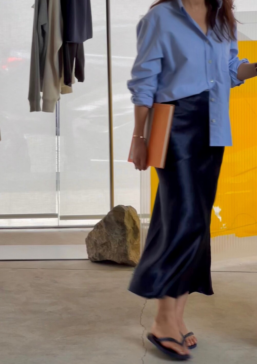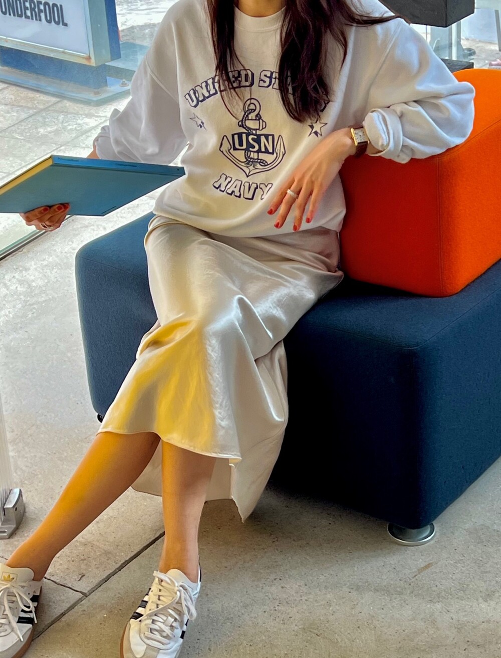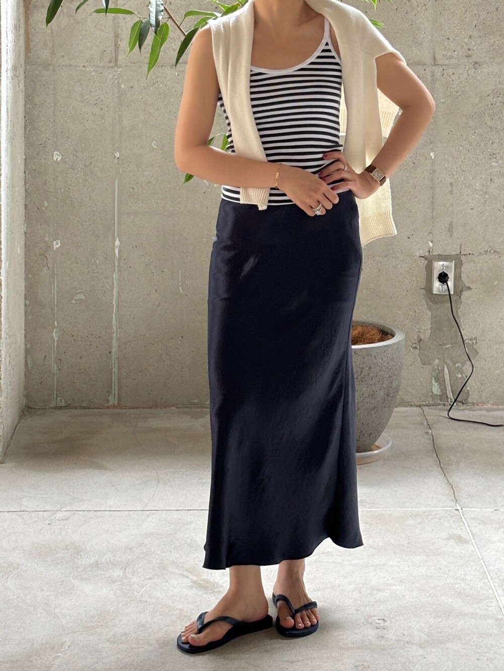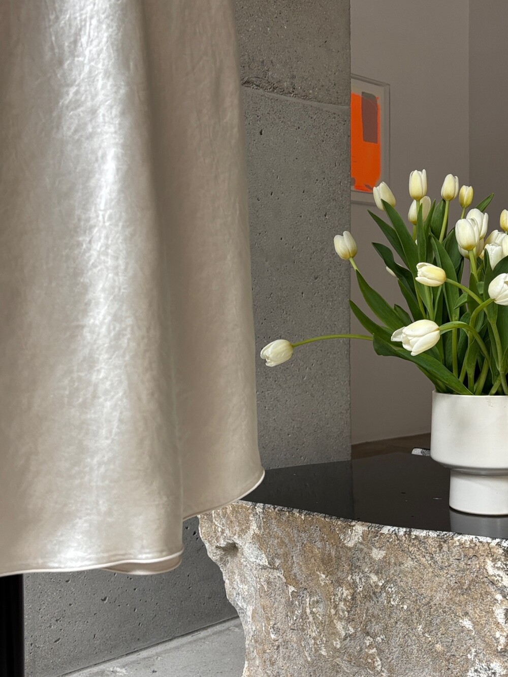 아뜰리에 드 쎄모먼에서 처음으로 선보이는 에센셜 아이템, 새틴 스커트를 소개합니다.