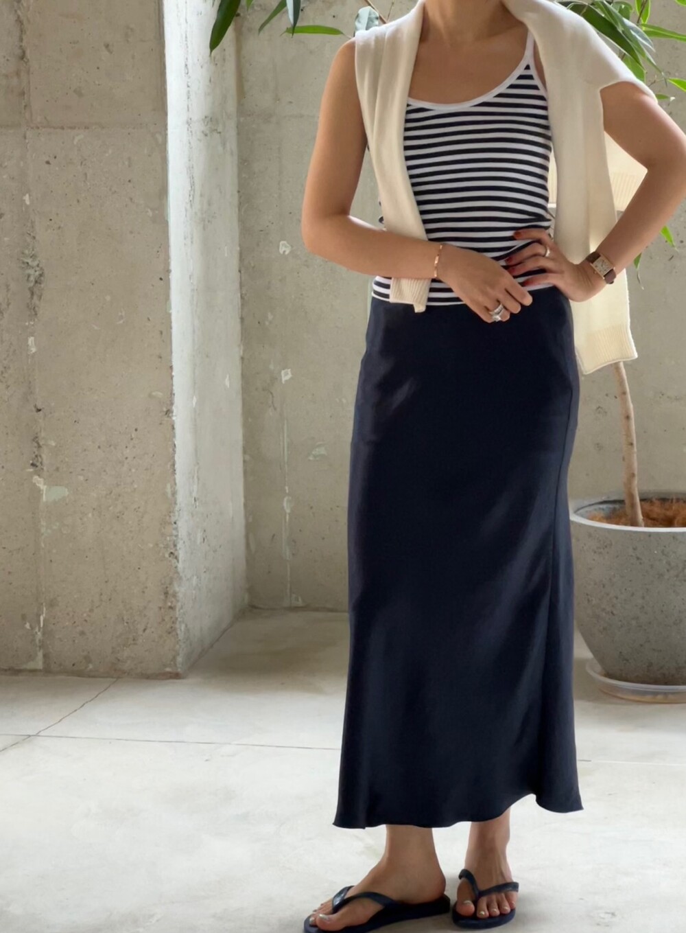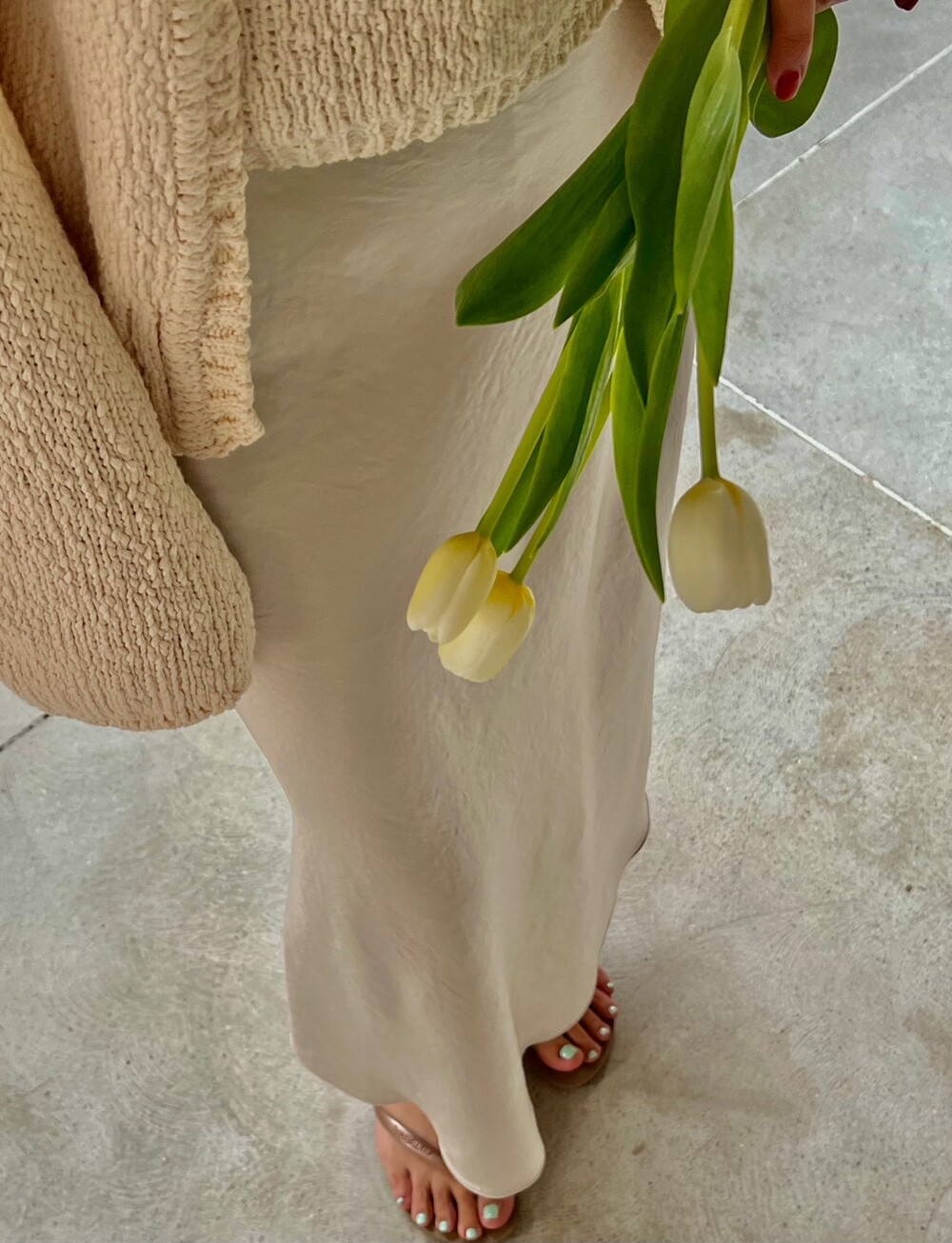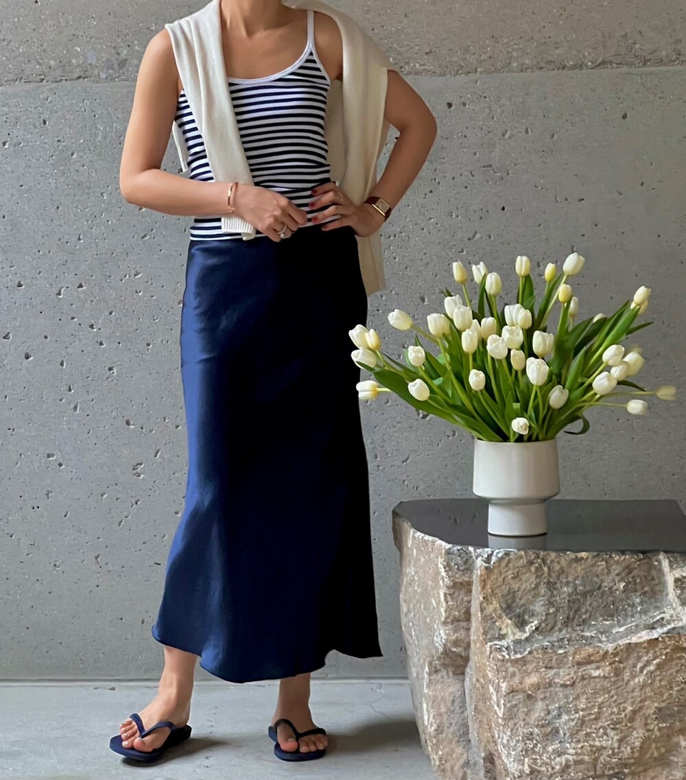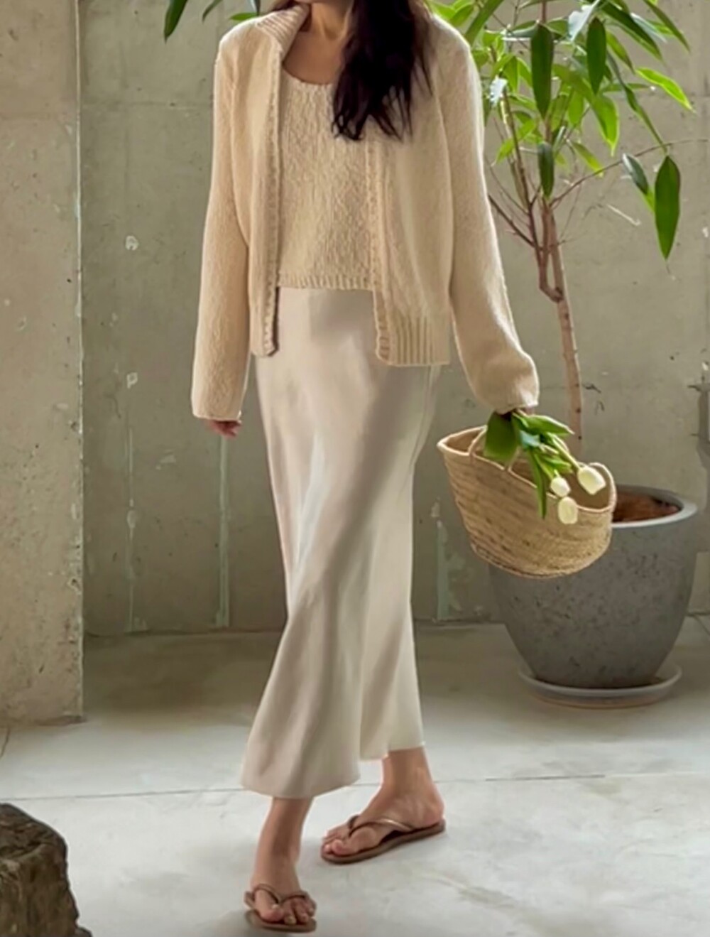 아뜰리에 드 쎄모먼에서 처음으로 선보이는 에센셜 아이템, 새틴 스커트를 소개합니다.