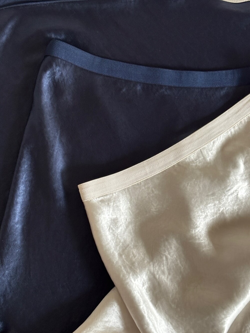 Made in JAPAN의 아세테이트 100 새틴 소재로, 은은한 광택과 찰랑거리는 부드러움이 돋보입니다.