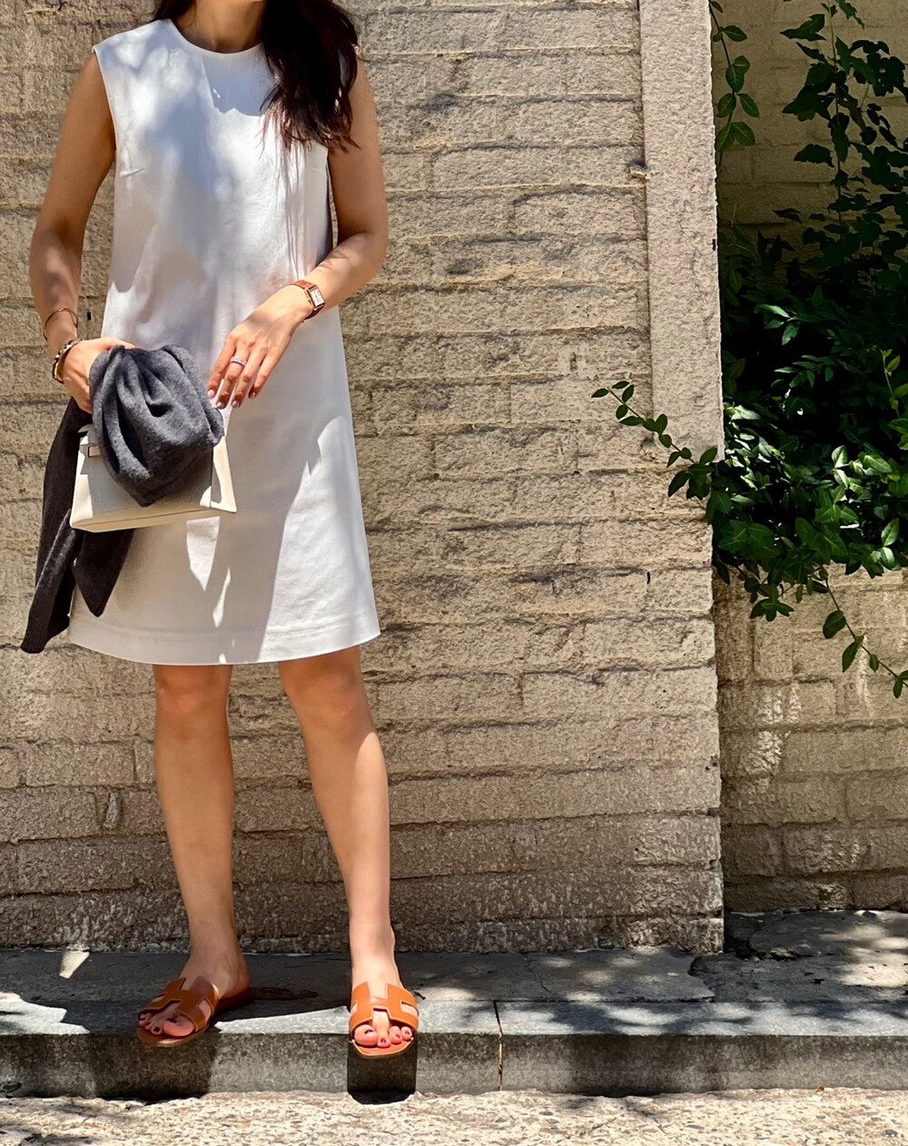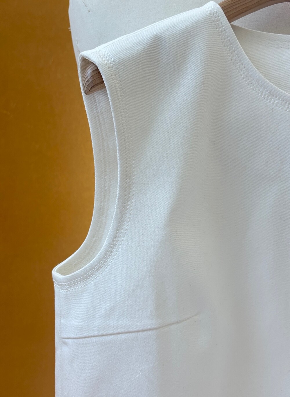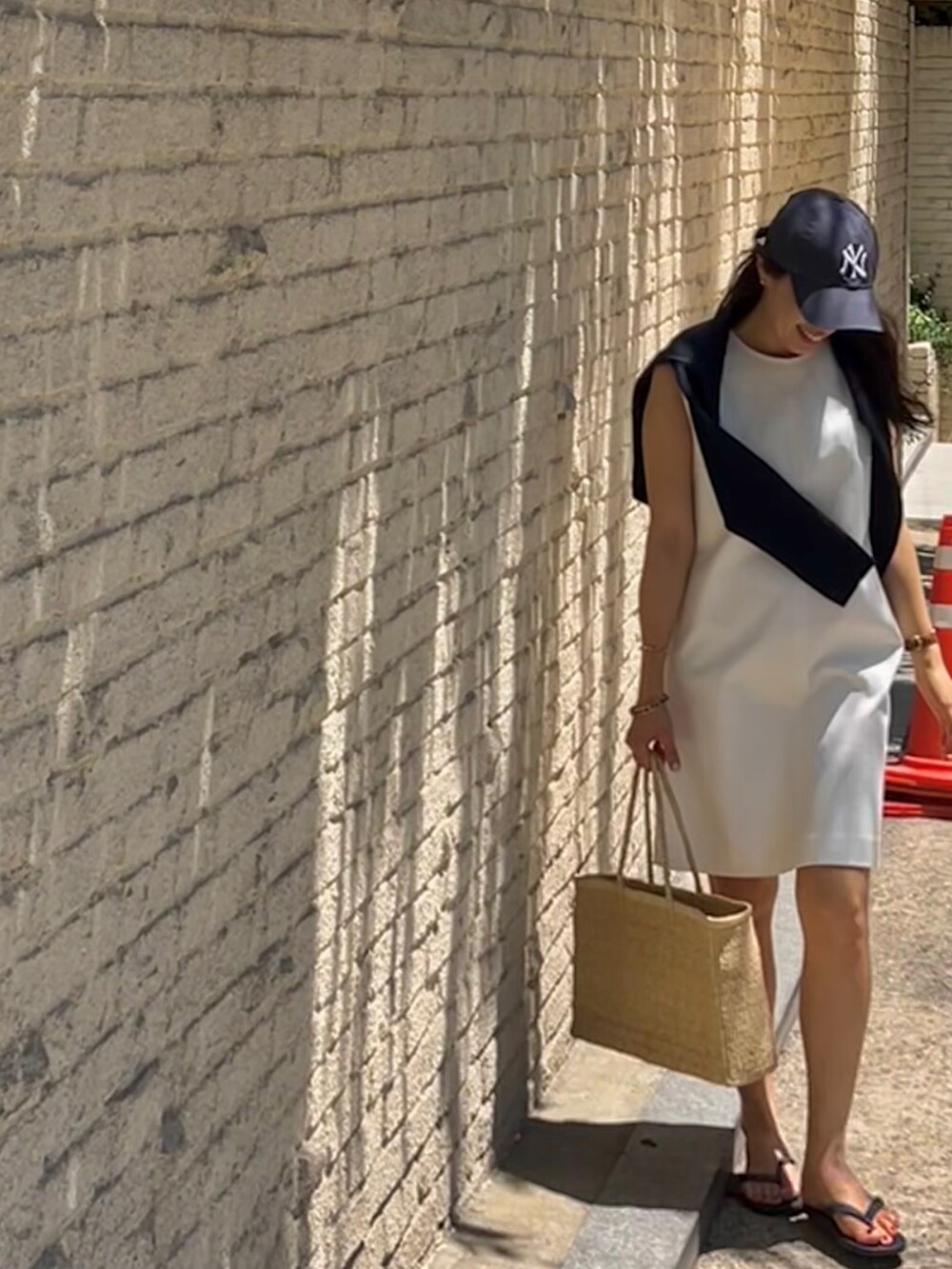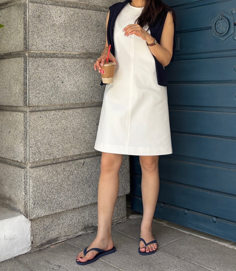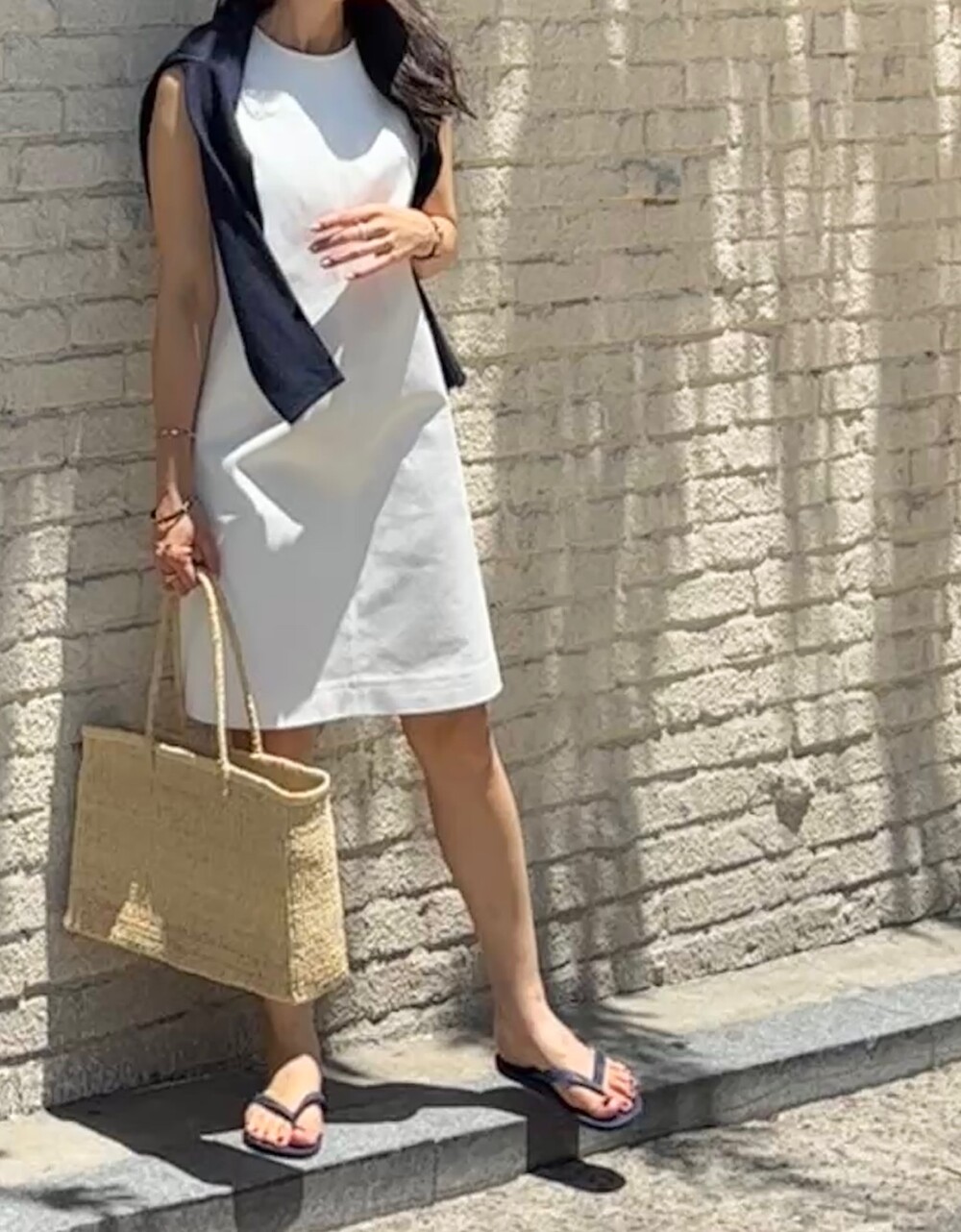 민소매 디자인이지만 어깨 라인이 부담스럽지 않은 것이 특징입니다.
