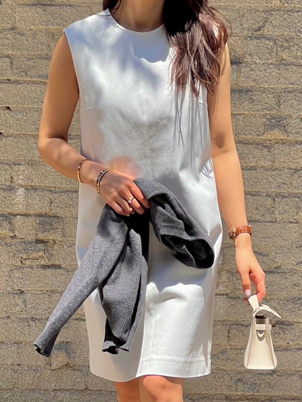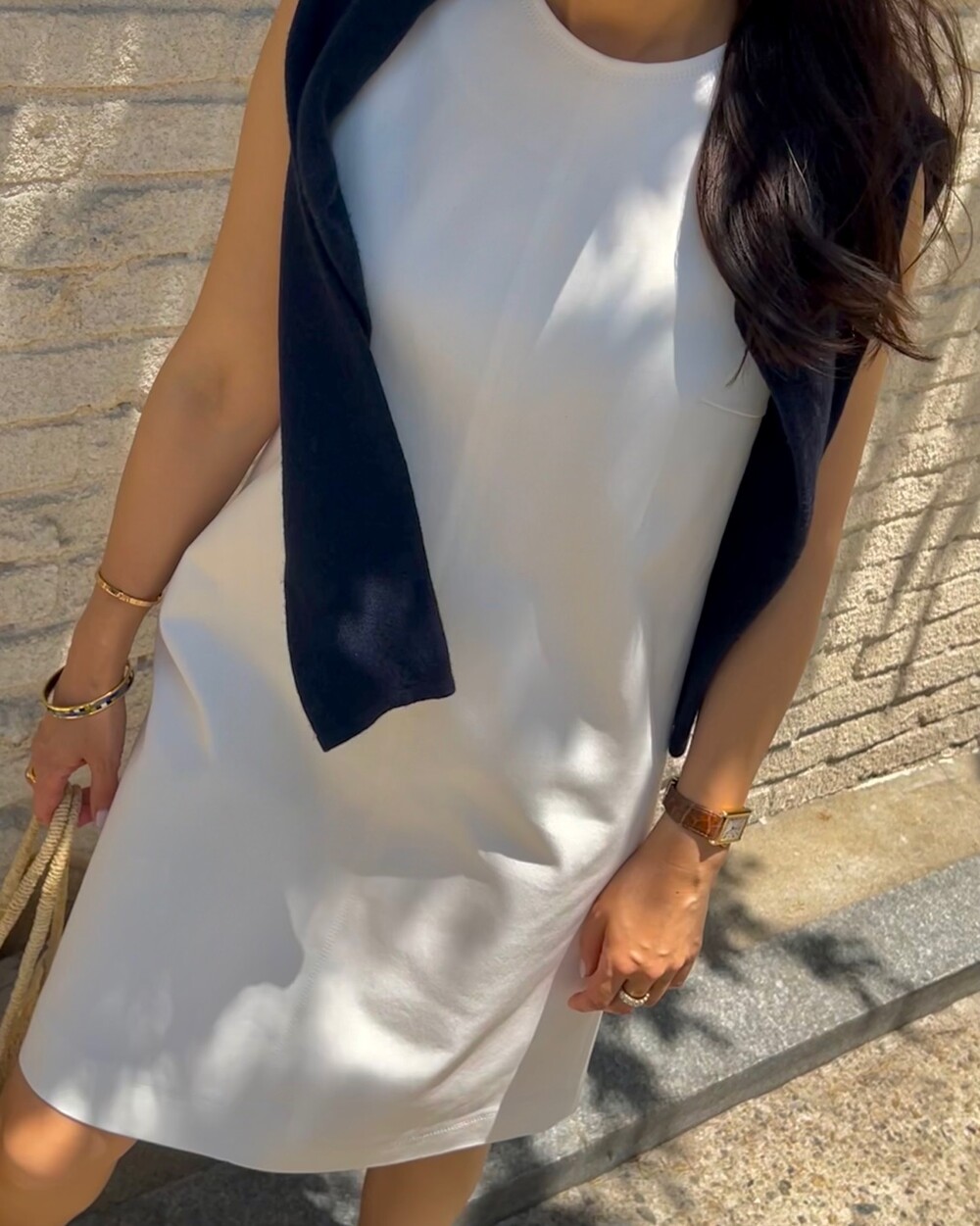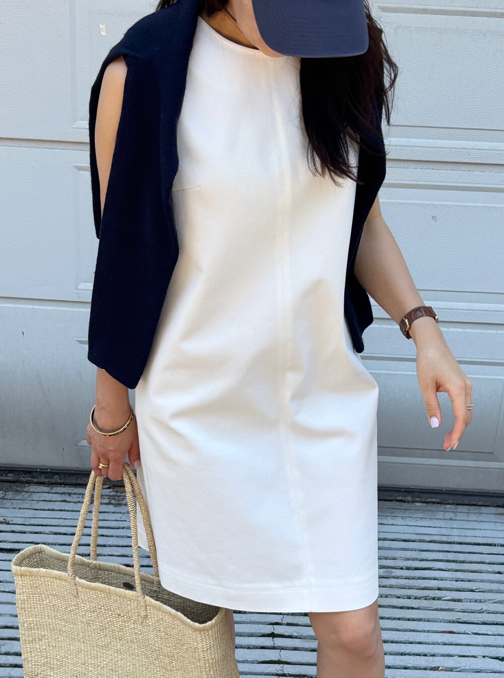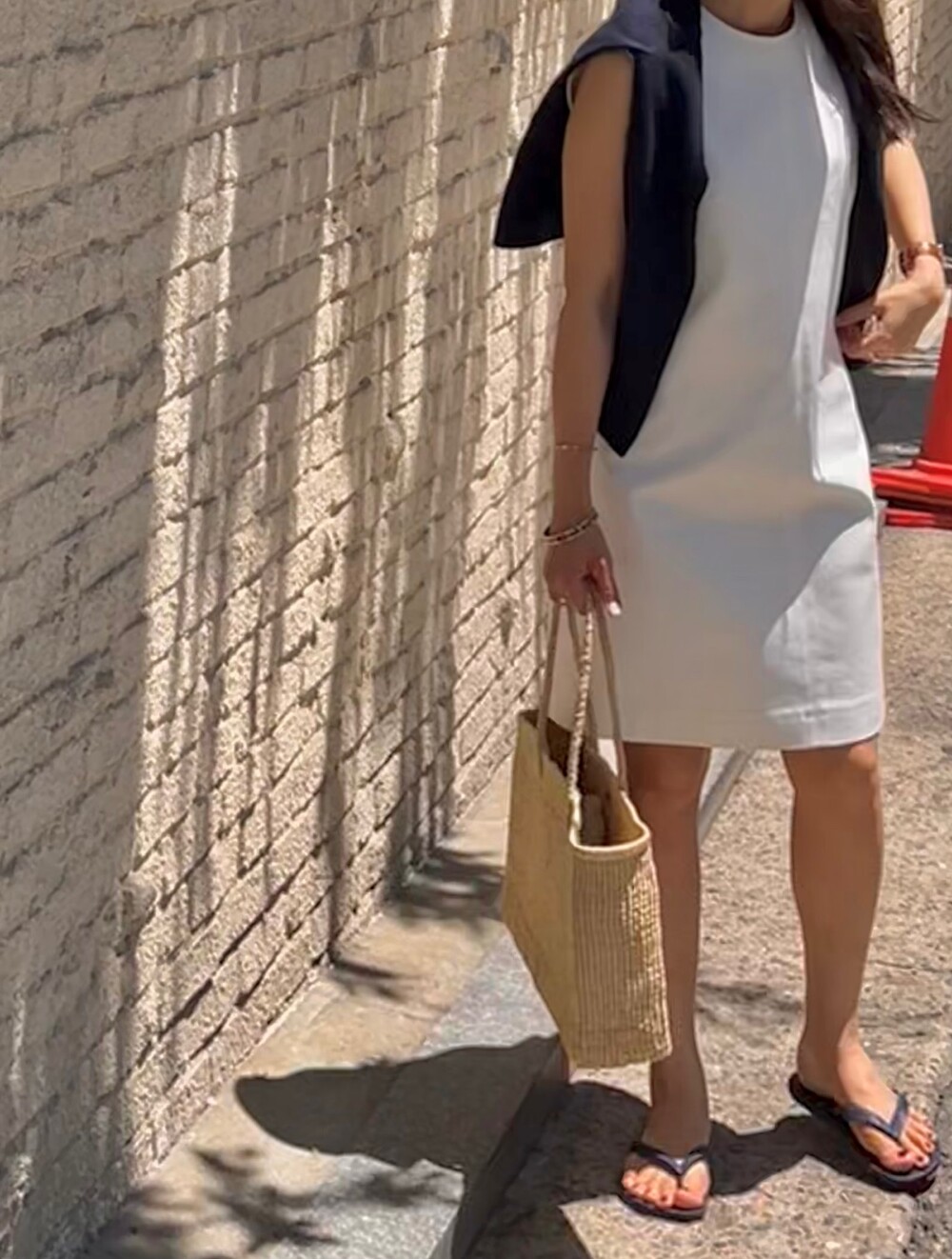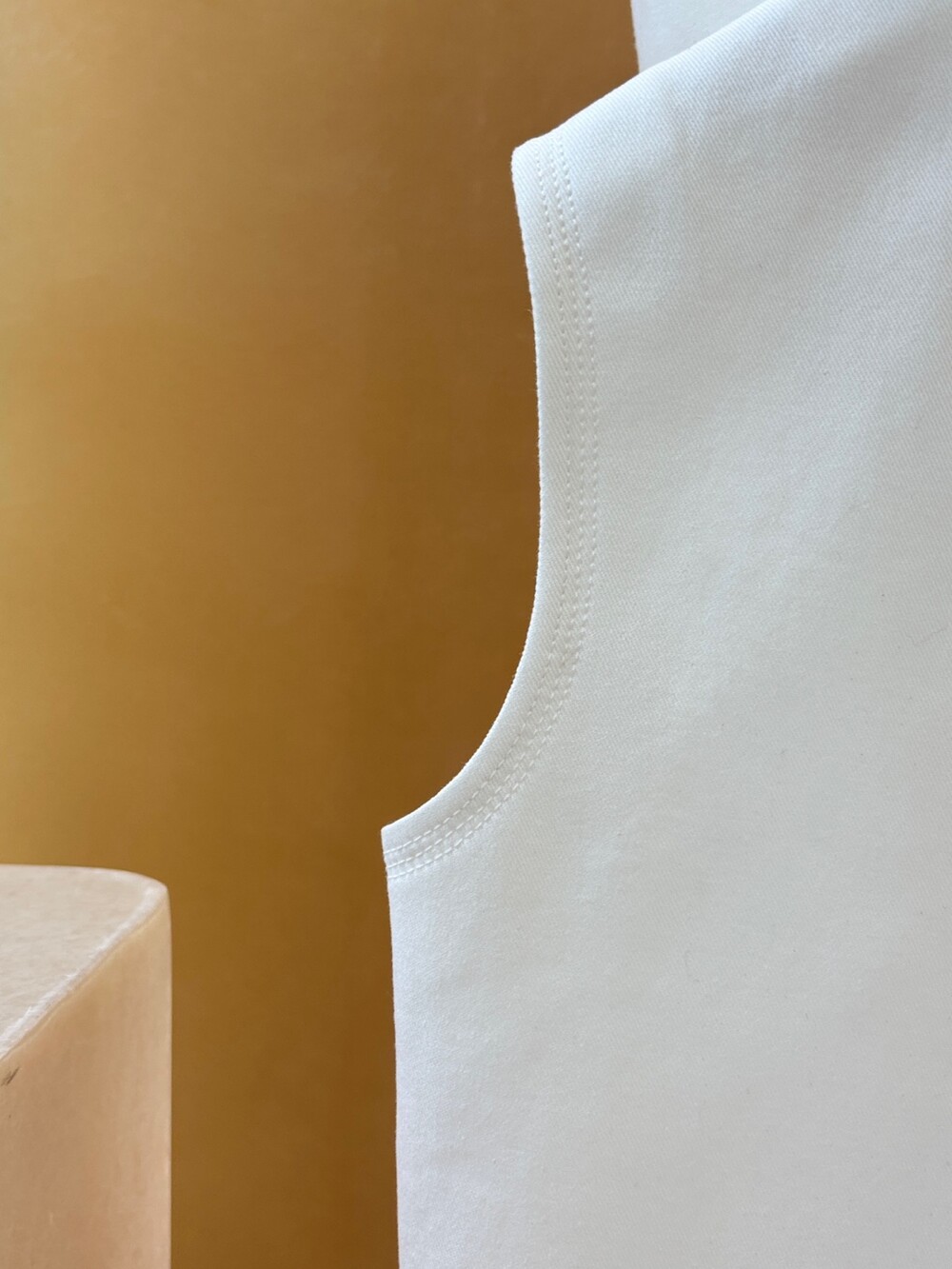 민소매 디자인이지만 어깨 라인이 부담스럽지 않은 것이 특징입니다.