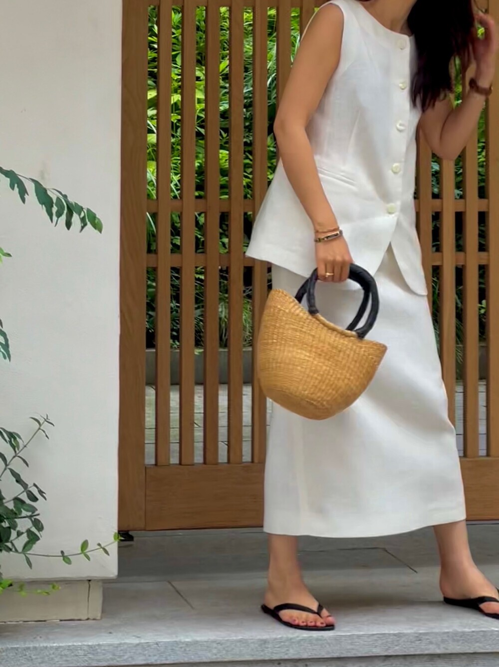 자연스러운 결이 느껴지는 내추럴한 일본산 린넨 소재로 제작되어 뛰어난 통기성과 시원한 착용감을 선사합니다.