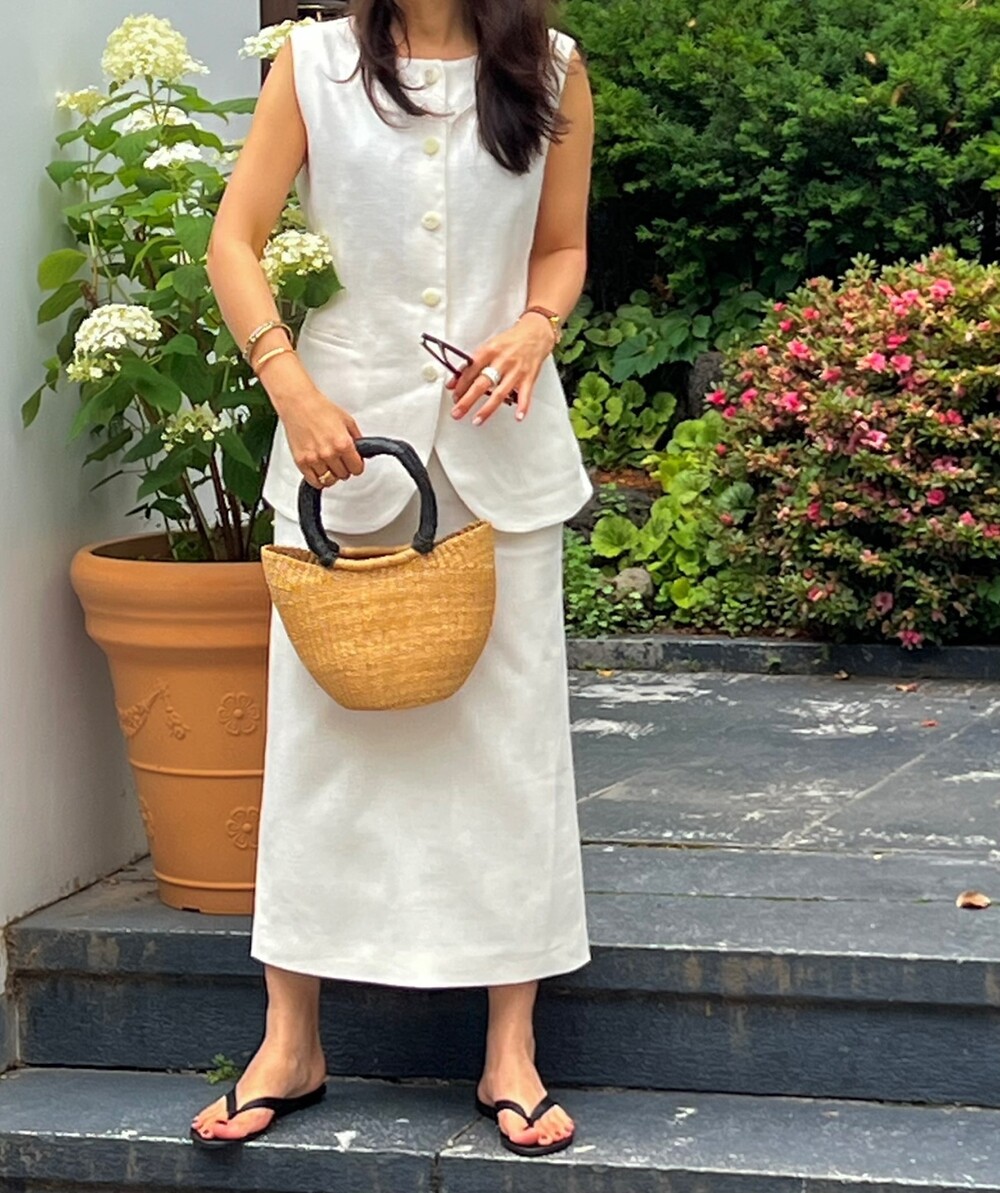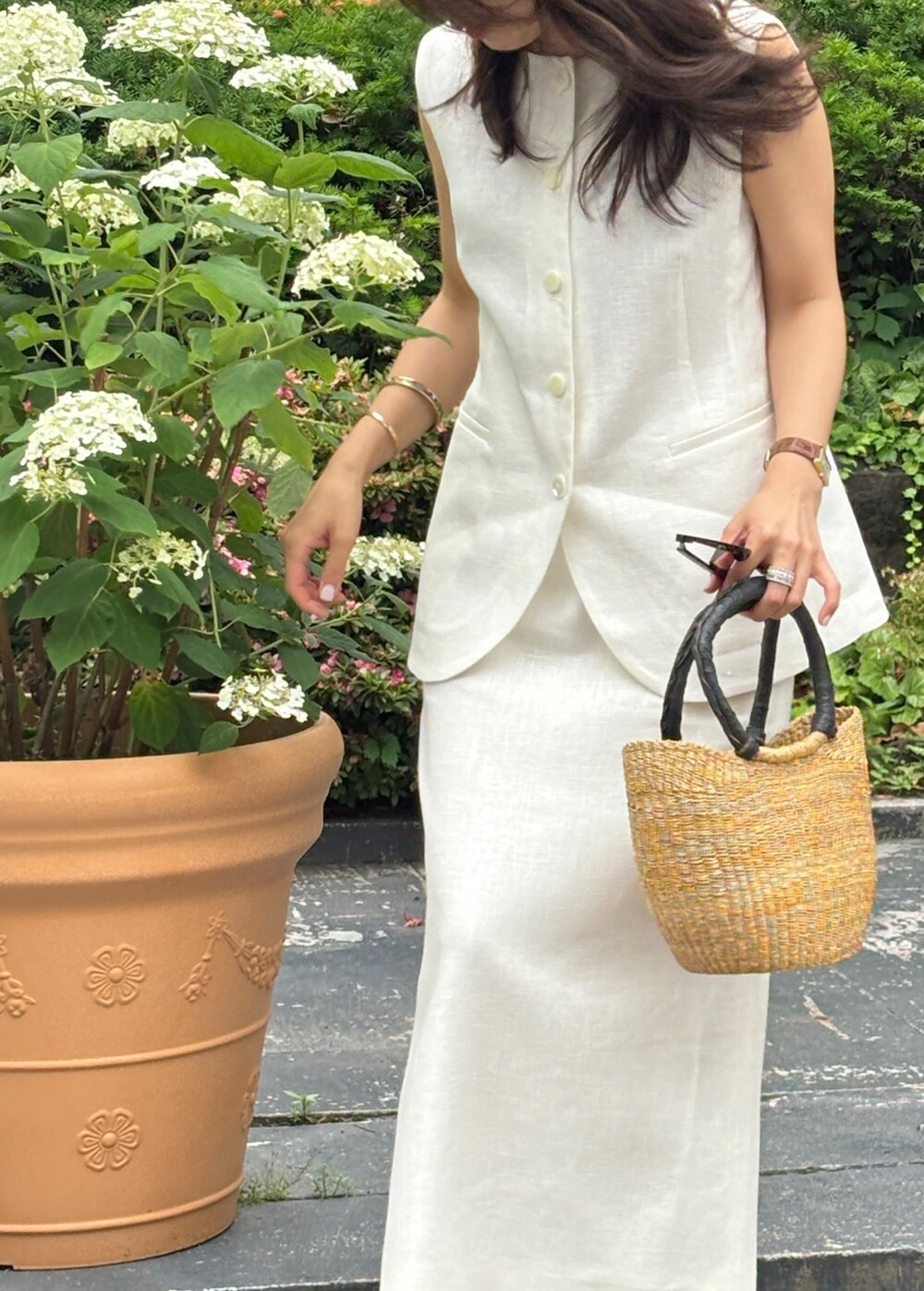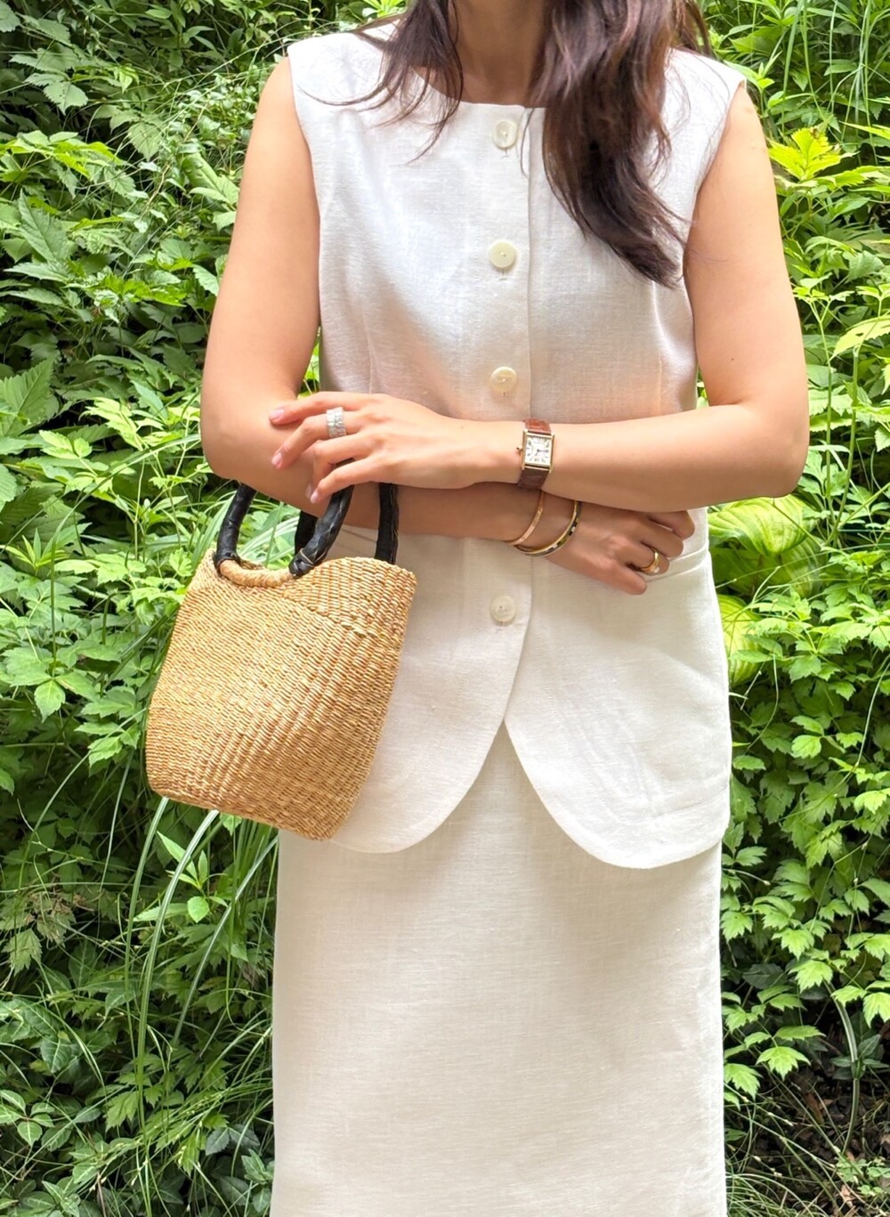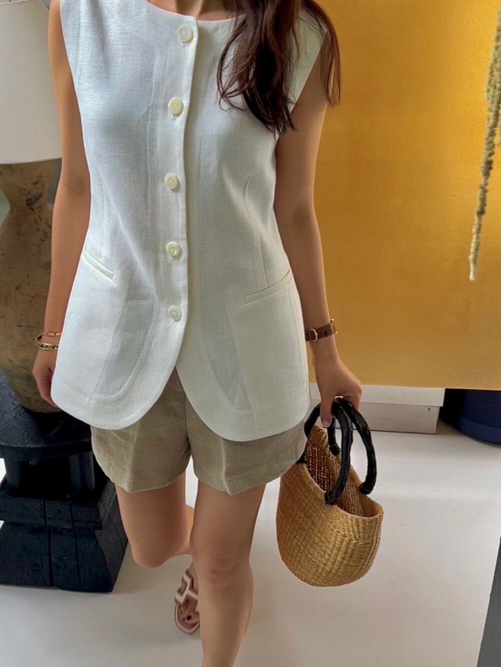 아뜰리에 드 쎄모먼의 Josef Vest은 한여름에 착용하기 좋은, 청량한 에센셜한 아이템입니다.