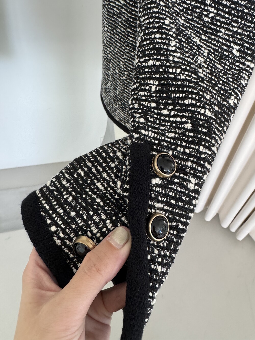 아뜰리에 드 쎄모먼에서 직접 개발한 장식 단추로 섬세한 디테일을 더했습니다.