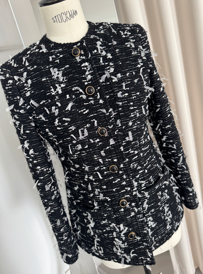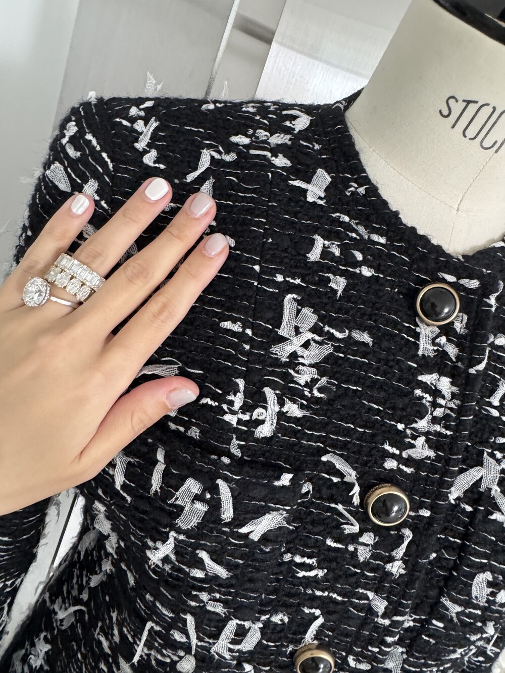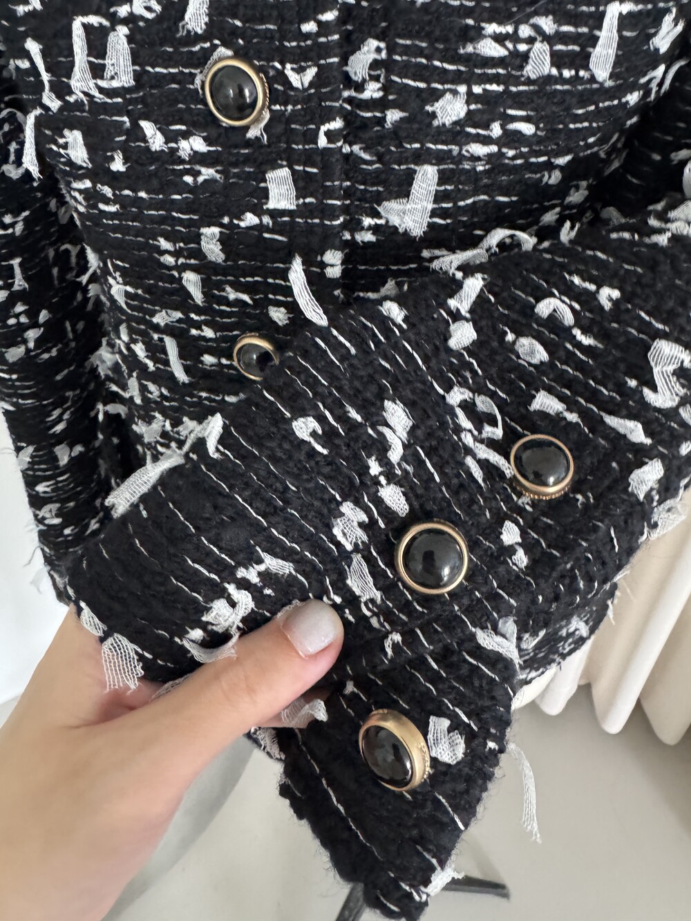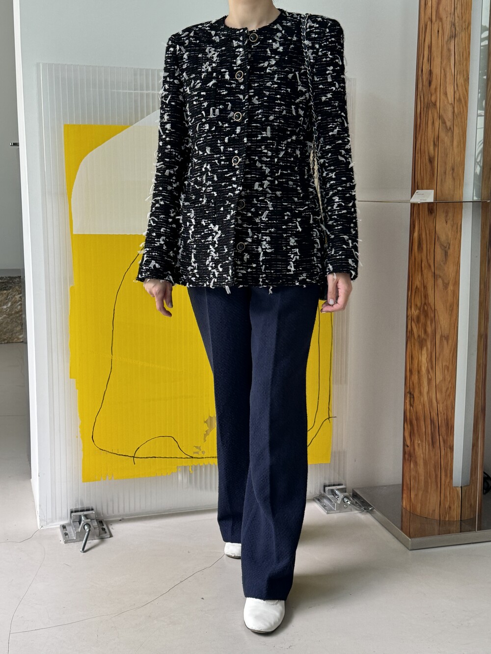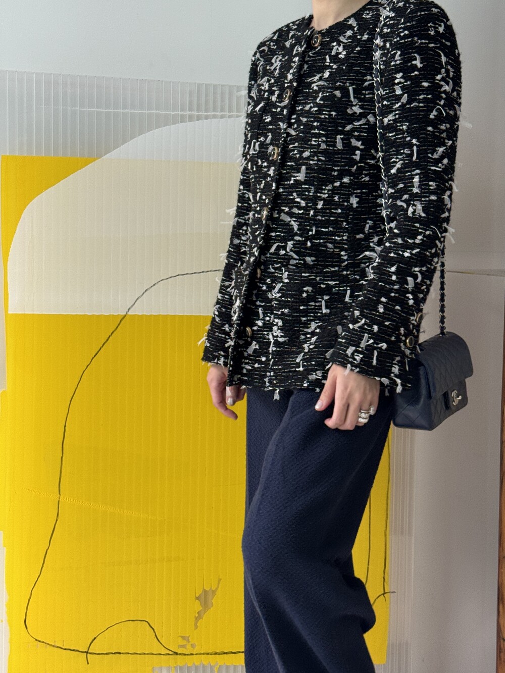 스커트는 동일한 고급 트위드 패브릭으로 제작되어 자켓과 셋업으로 착용할 수 있으며,